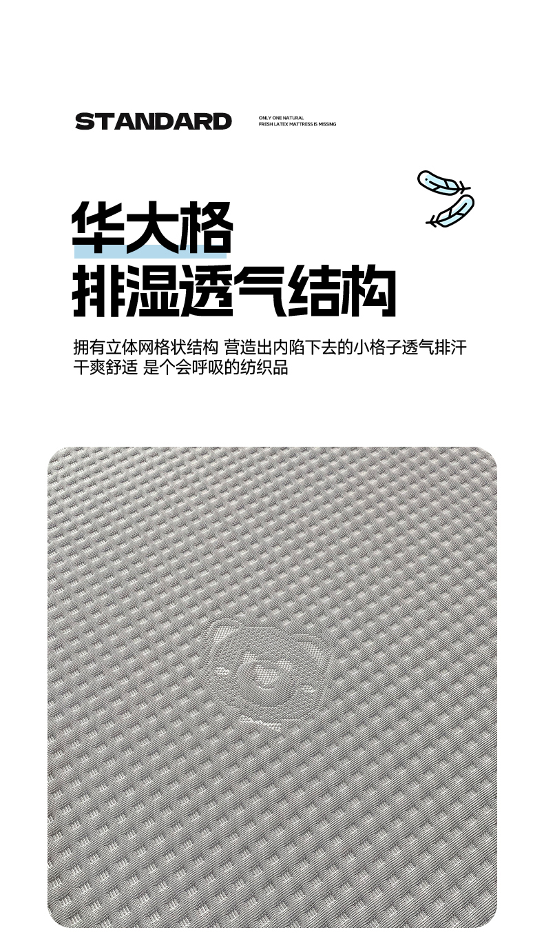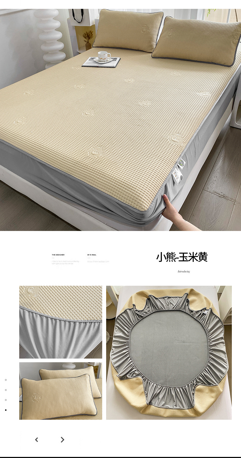 商品名称:欧邦 2025春夏新款5A抗菌华夫格凉感冰豆床笠款凉席席子-小熊系列 小熊-极致灰