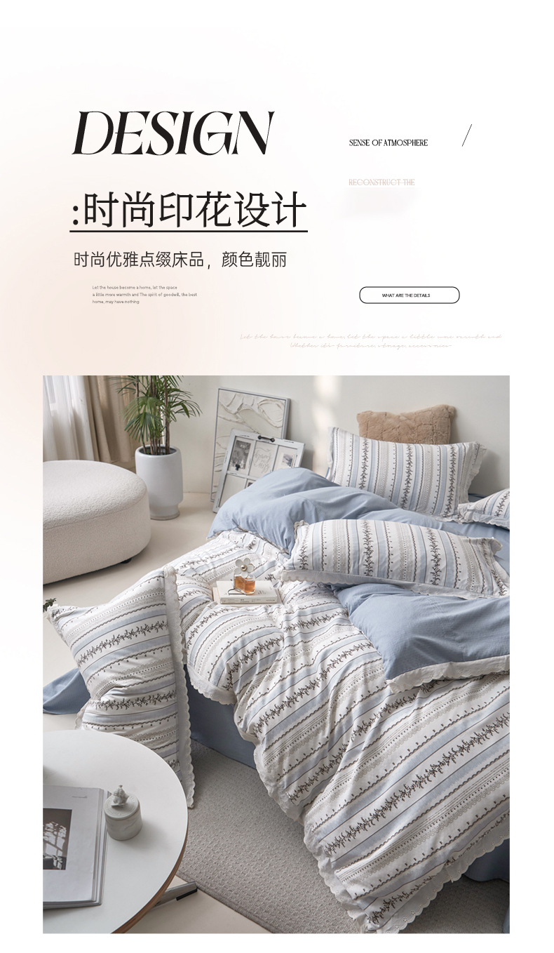商品名称:漫仙阁家纺 2025新款双层纱花边款韩版四件套 茶野
