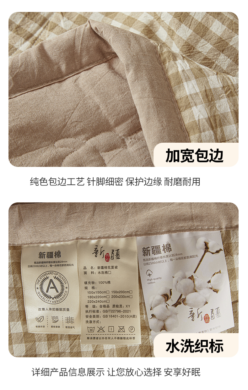 商品名称:(总)西域种棉人·千百笠 2025新款A类100%新疆棉花夏凉被纯棉全棉填充原棉空调被手工宽边水洗棉夏被
