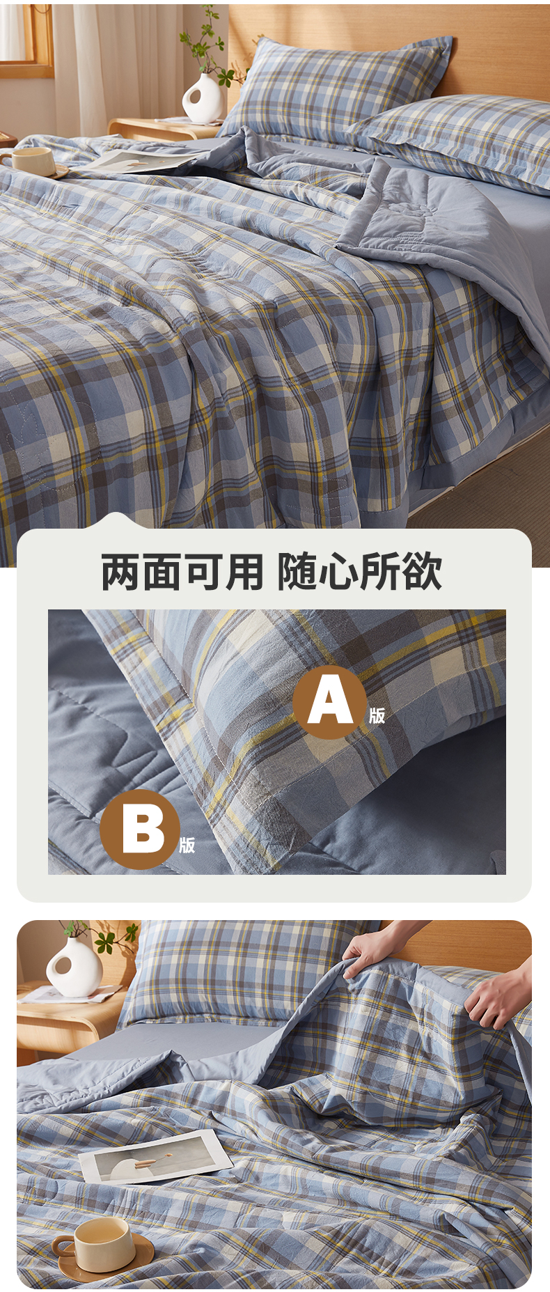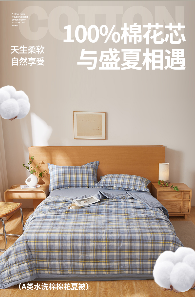 被子 > 夏被 > 西域种棉人·千百笠 2025新款A类100%新疆棉花夏凉被纯棉全棉填充原棉空调被手工宽边水洗棉夏被 雅致-蓝格