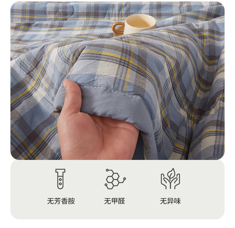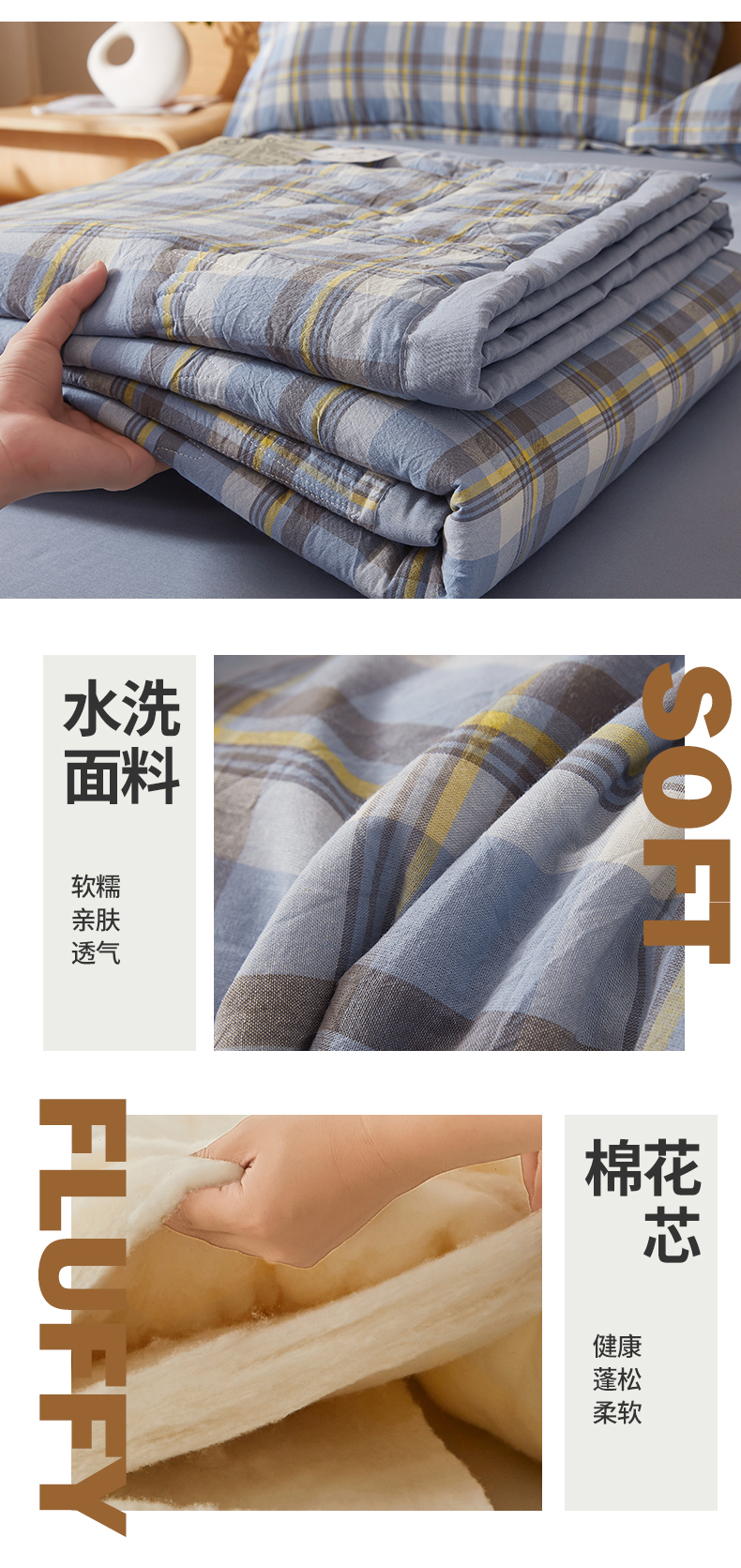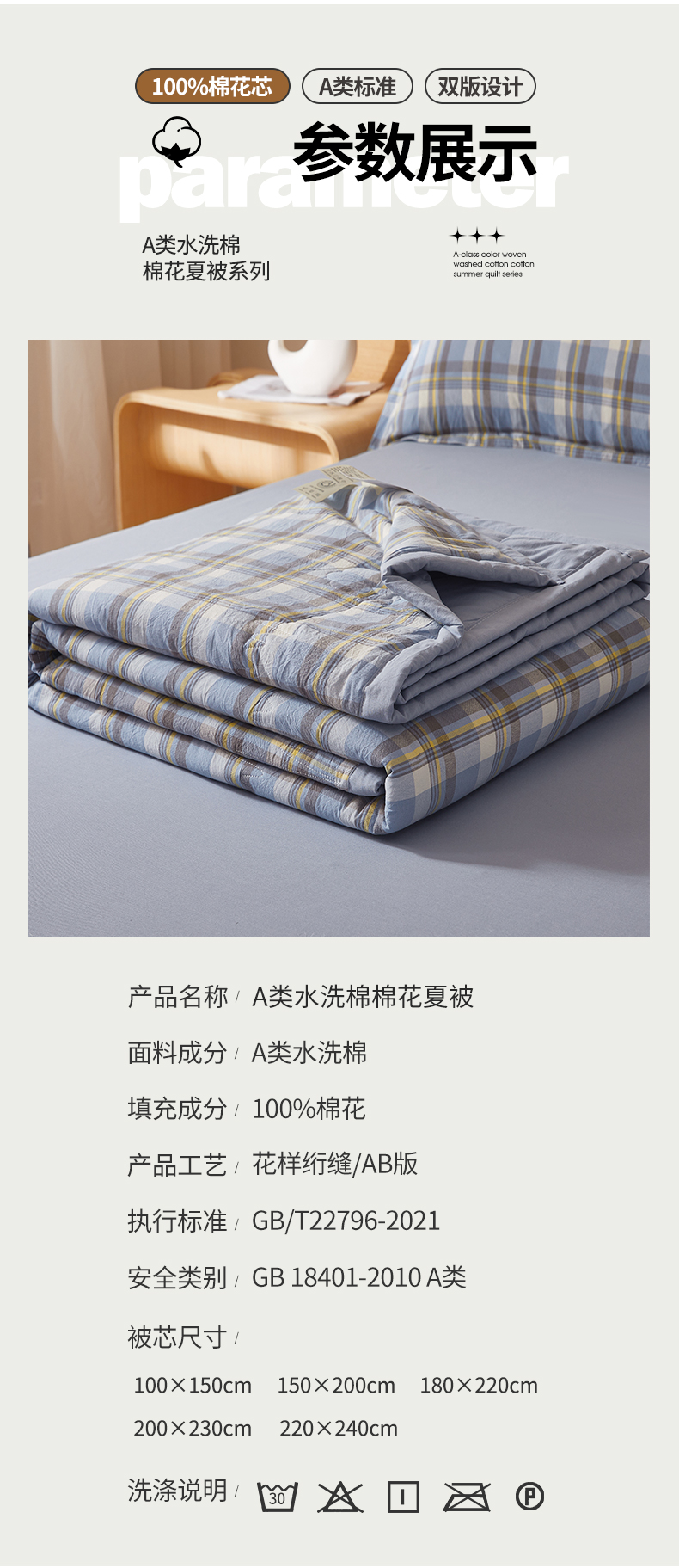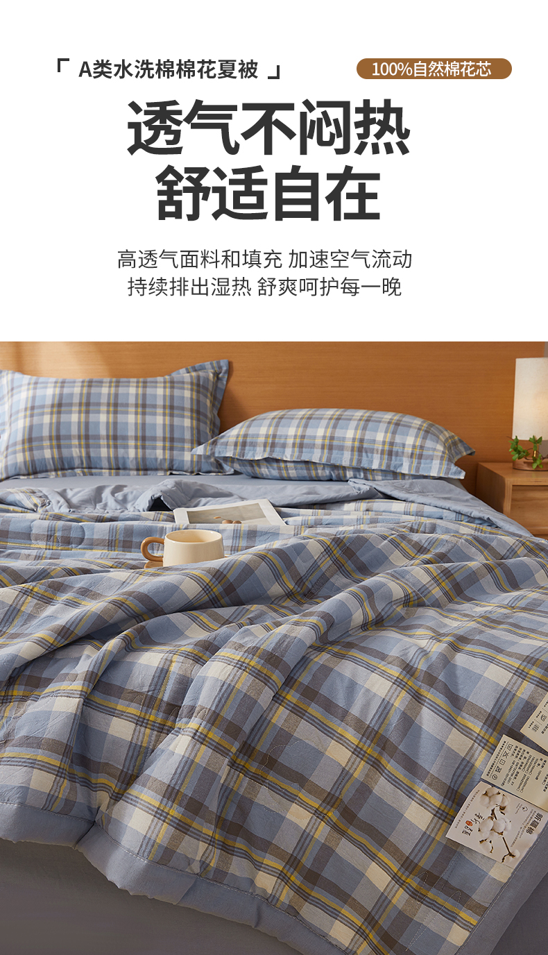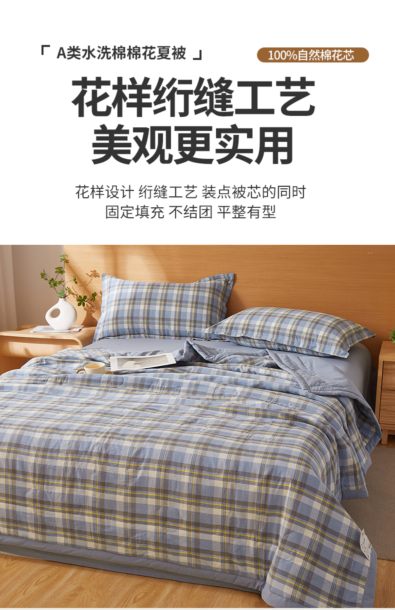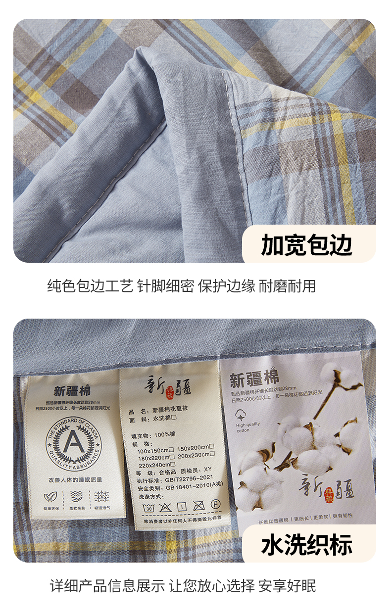 商品名称:西域种棉人·千百笠 2025新款A类100%新疆棉花夏凉被纯棉全棉填充原棉空调被手工宽边水洗棉夏被 雅致-蓝格