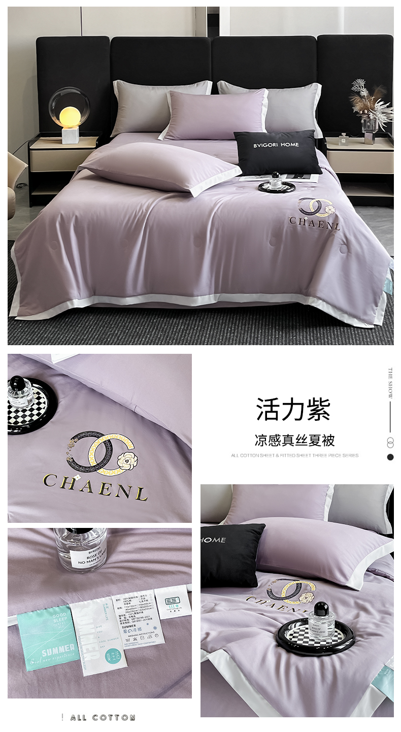 昊翔家纺 2025新款凉感真丝印花夏被系列 活力紫