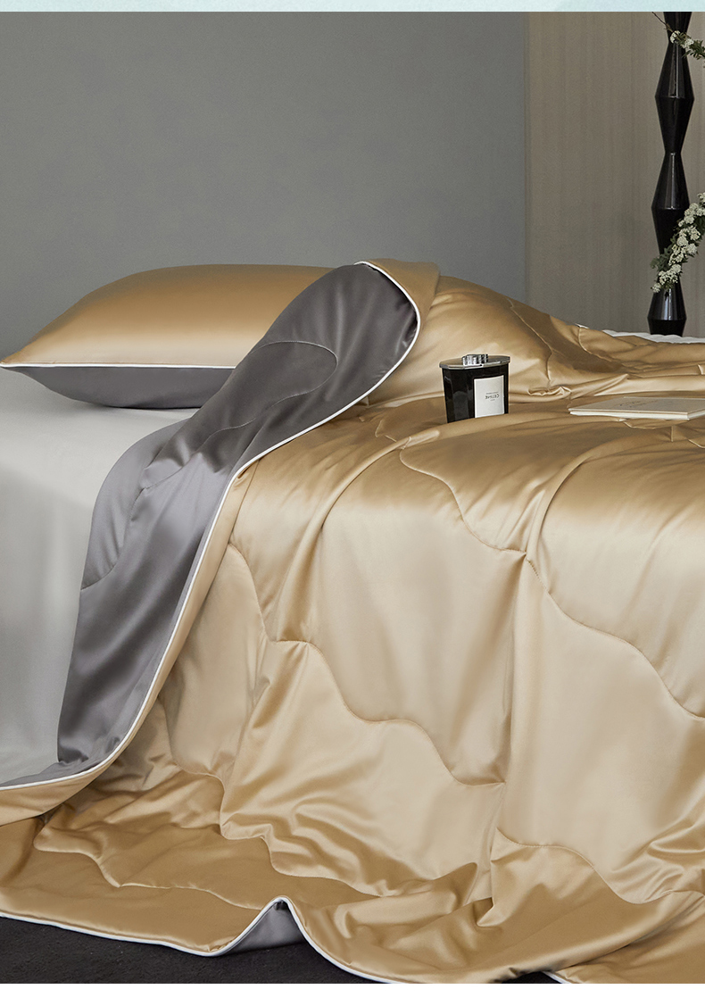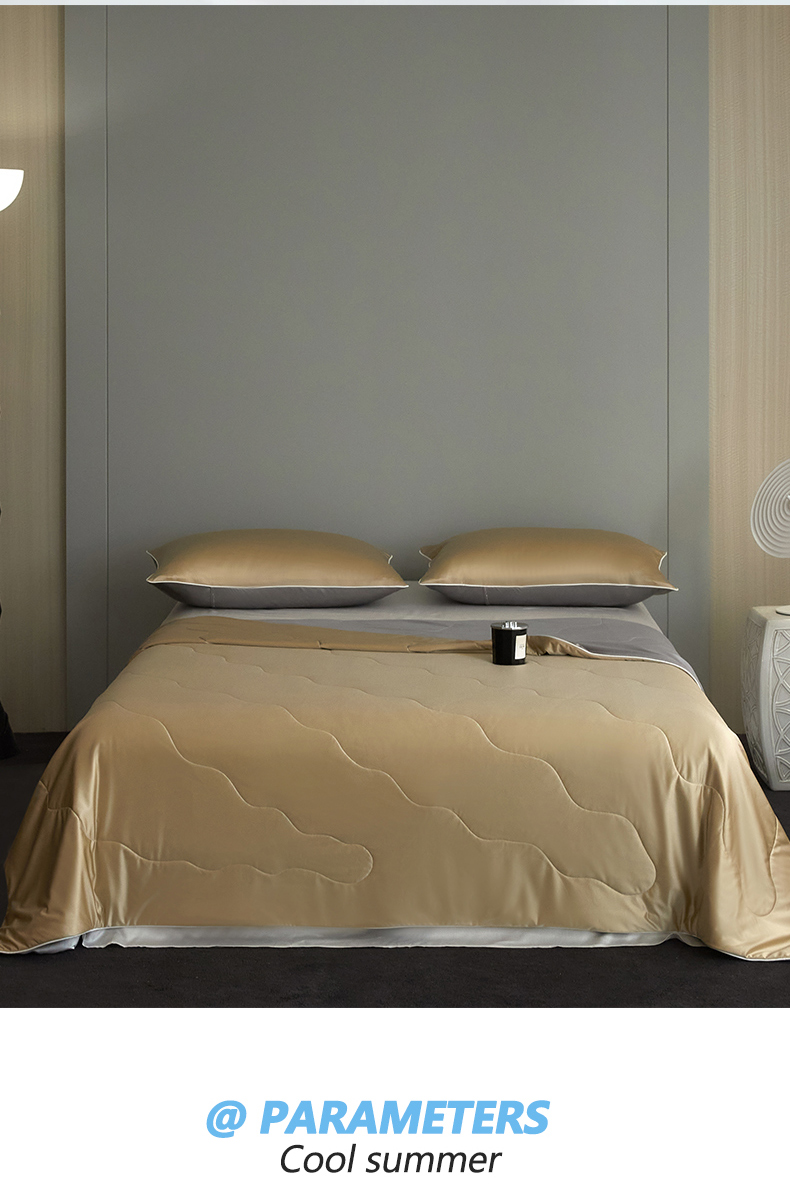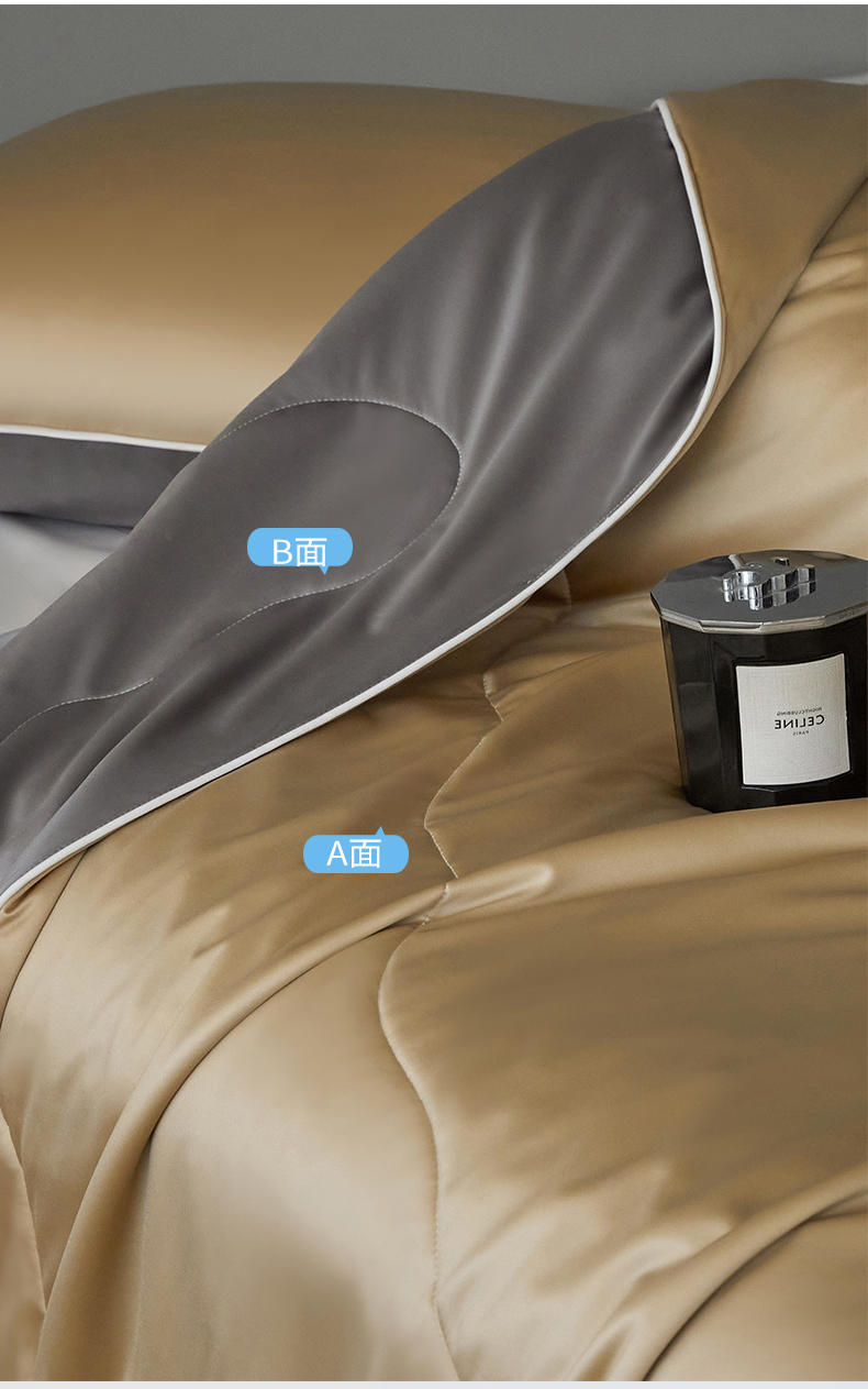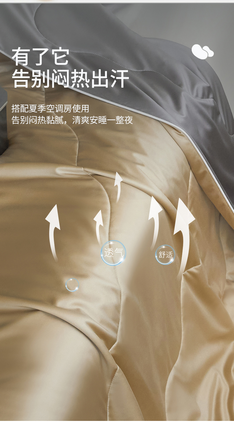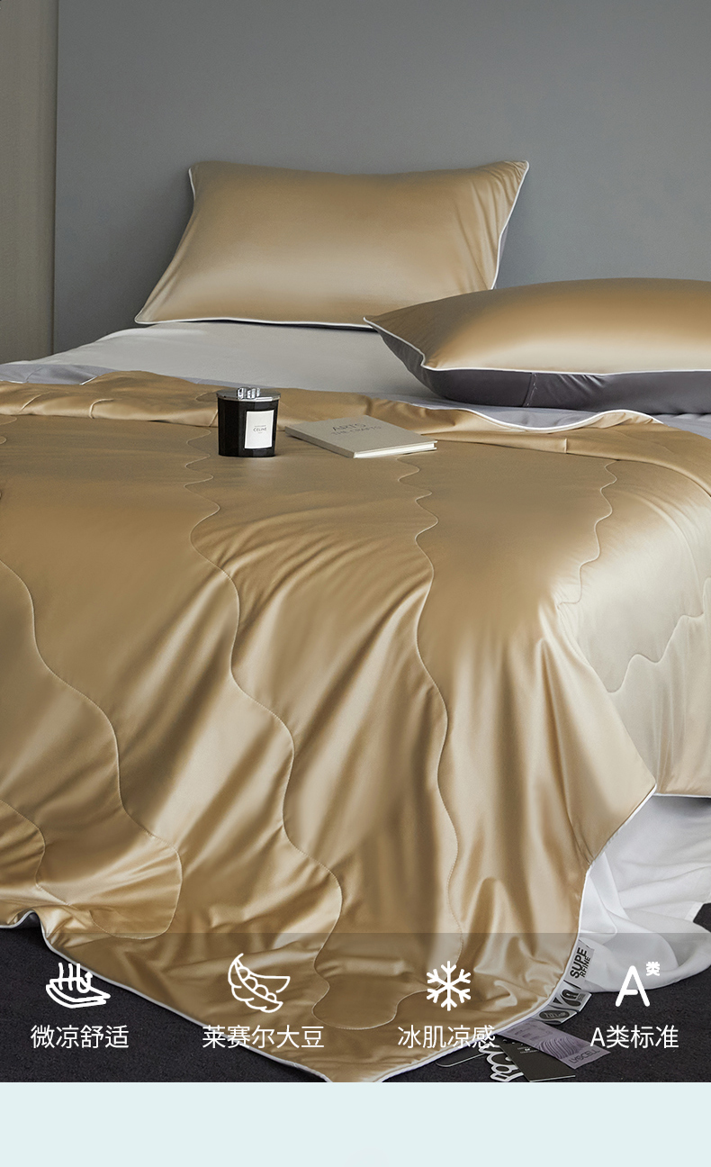 商品名称:头等舱 2025新款水光缎冰肌锦氨A类55植物大豆7A抗菌夏被配礼盒 香槟咖配水光灰