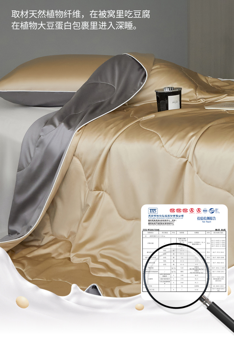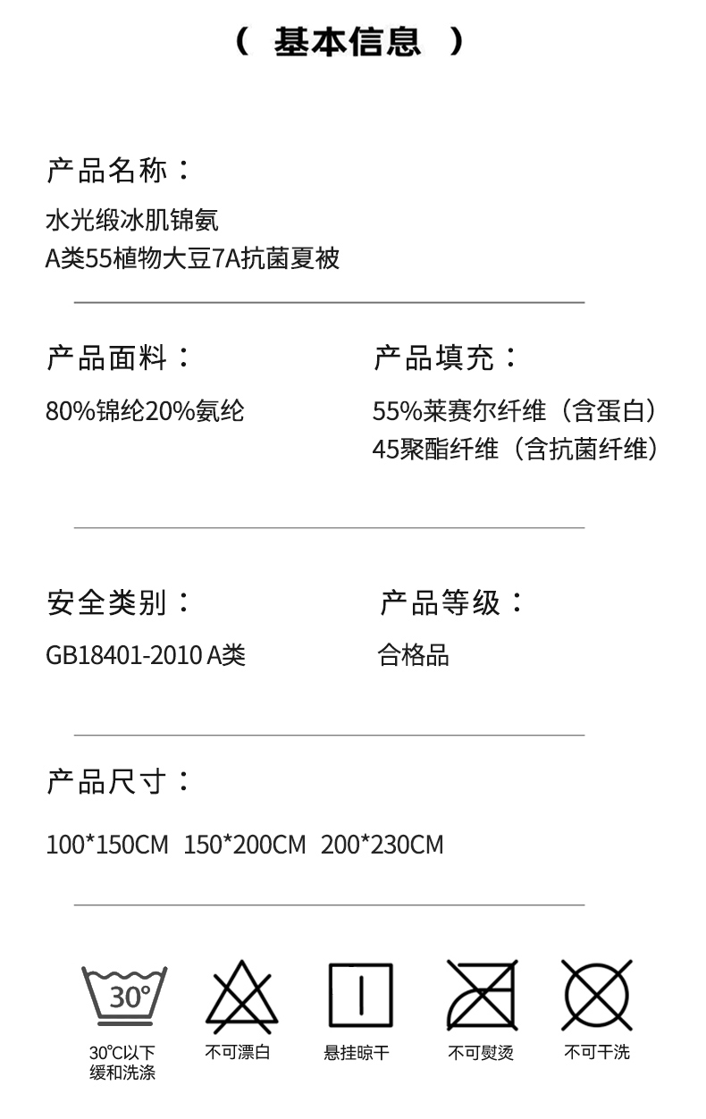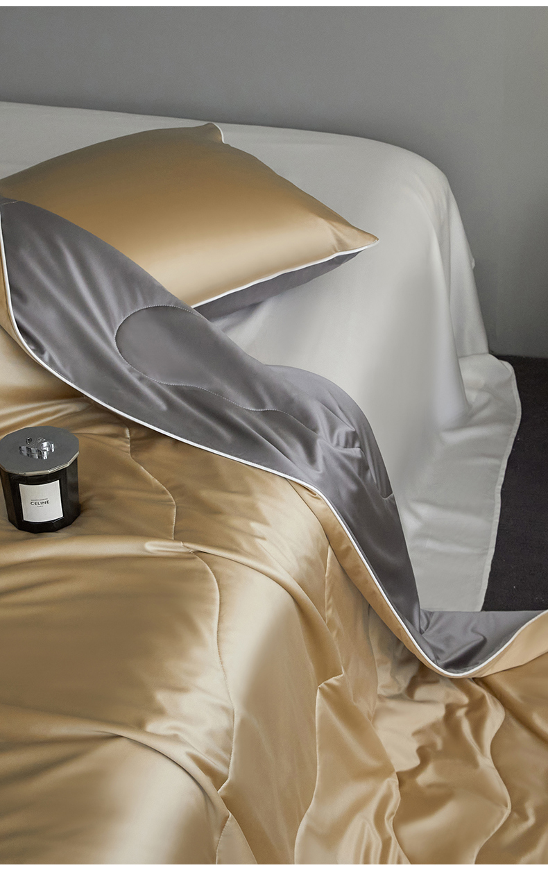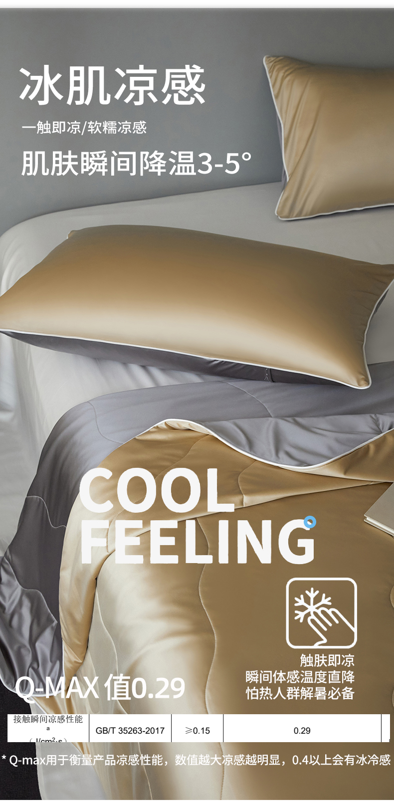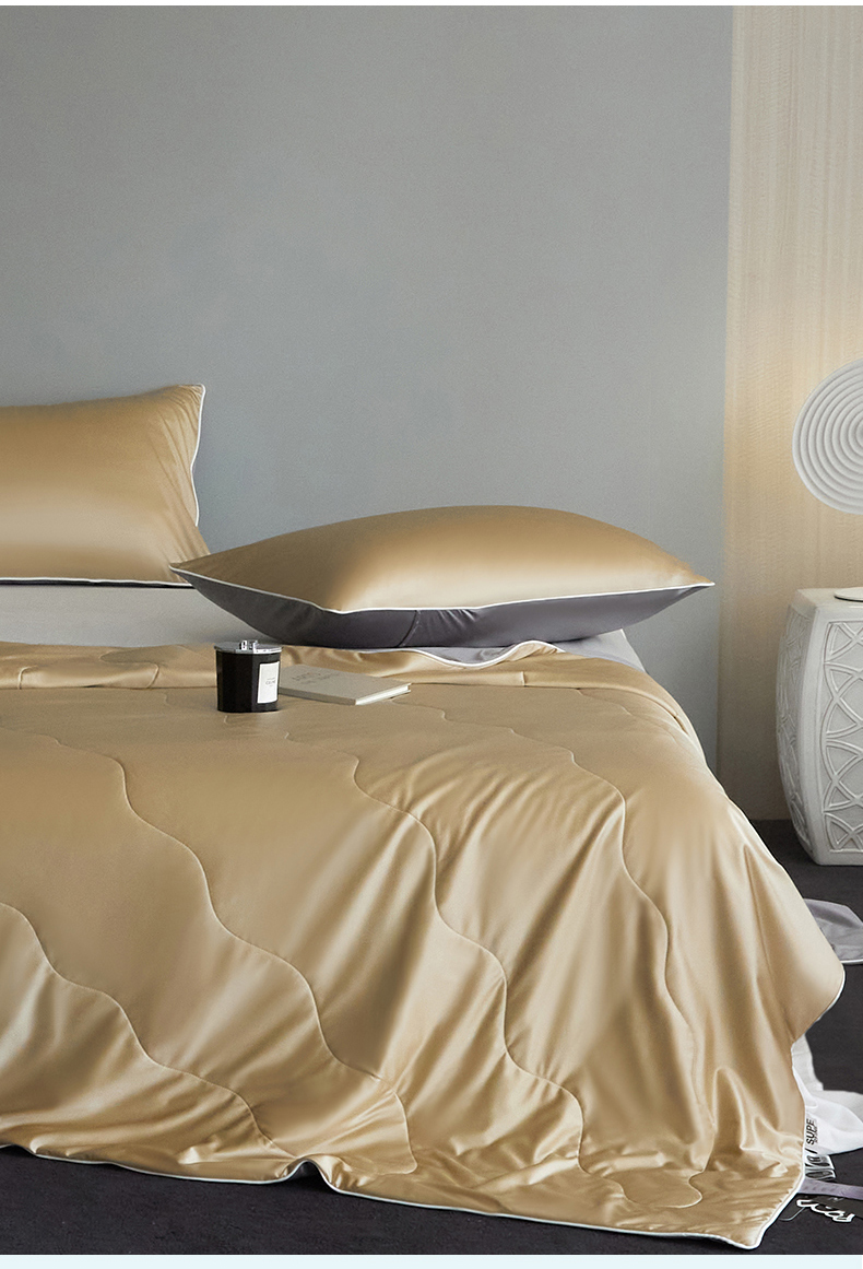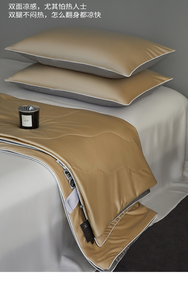 商品名称:头等舱 2025新款水光缎冰肌锦氨A类55植物大豆7A抗菌夏被配礼盒 香槟咖配水光灰