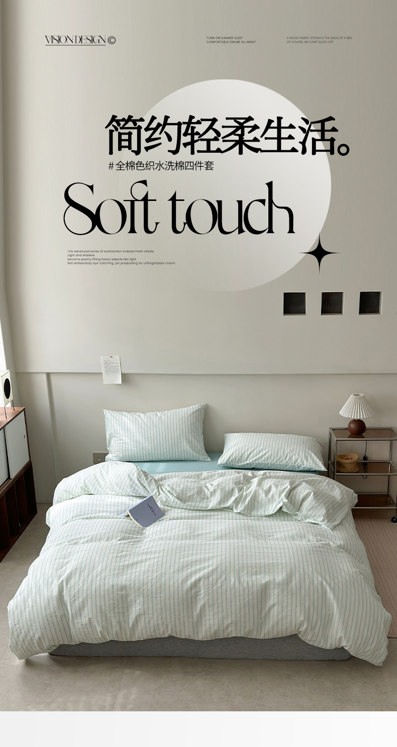 (总)水洗的故事 2025新款全棉色织水洗棉四件套,简序-粉,简序-灰,简序-蓝,简序-米黄,绿韵,樱织,云汐,紫韵粉格