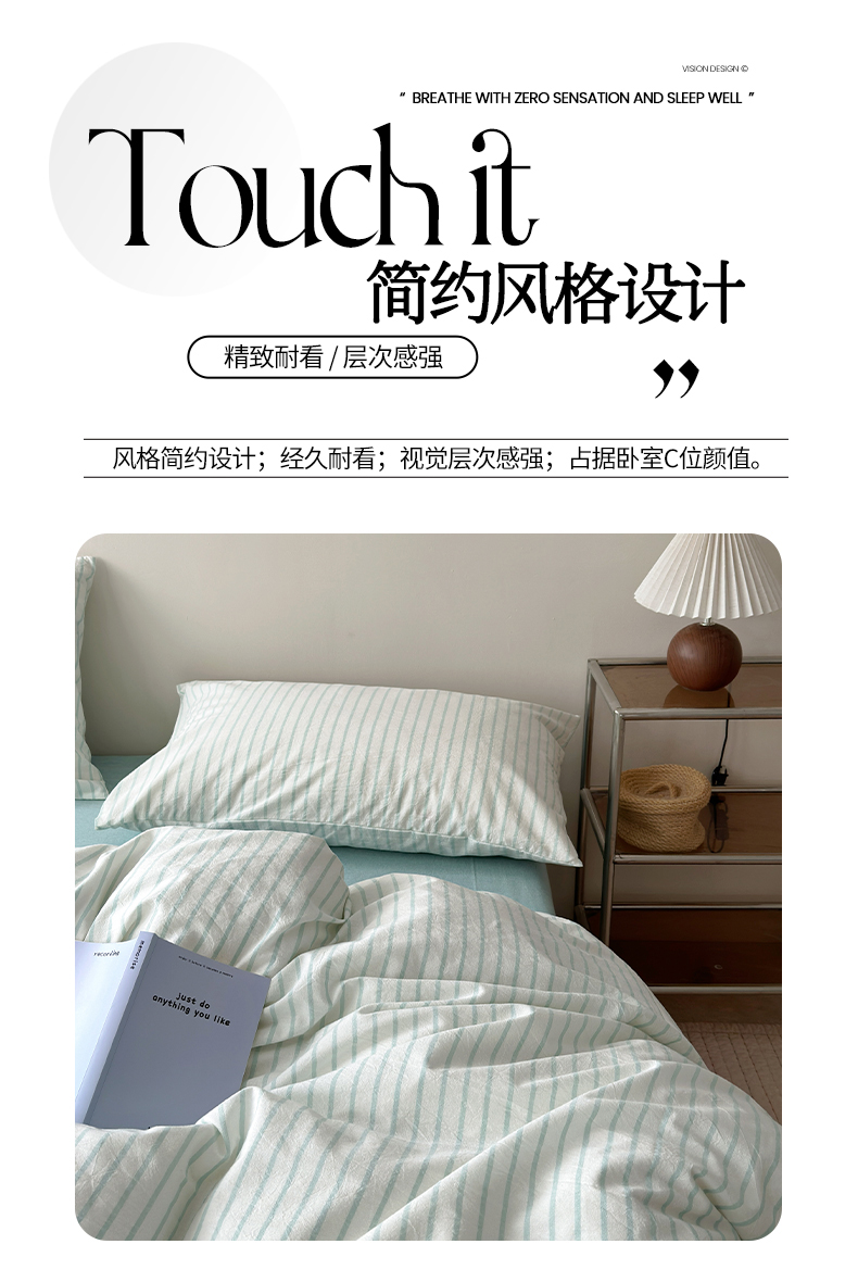 (总)水洗的故事(原有乐家) 2025新款秋冬全棉贡缎色织提花条纹款四件套,从简-灰,从简-咖,从简-奶橘,森沐,织麦