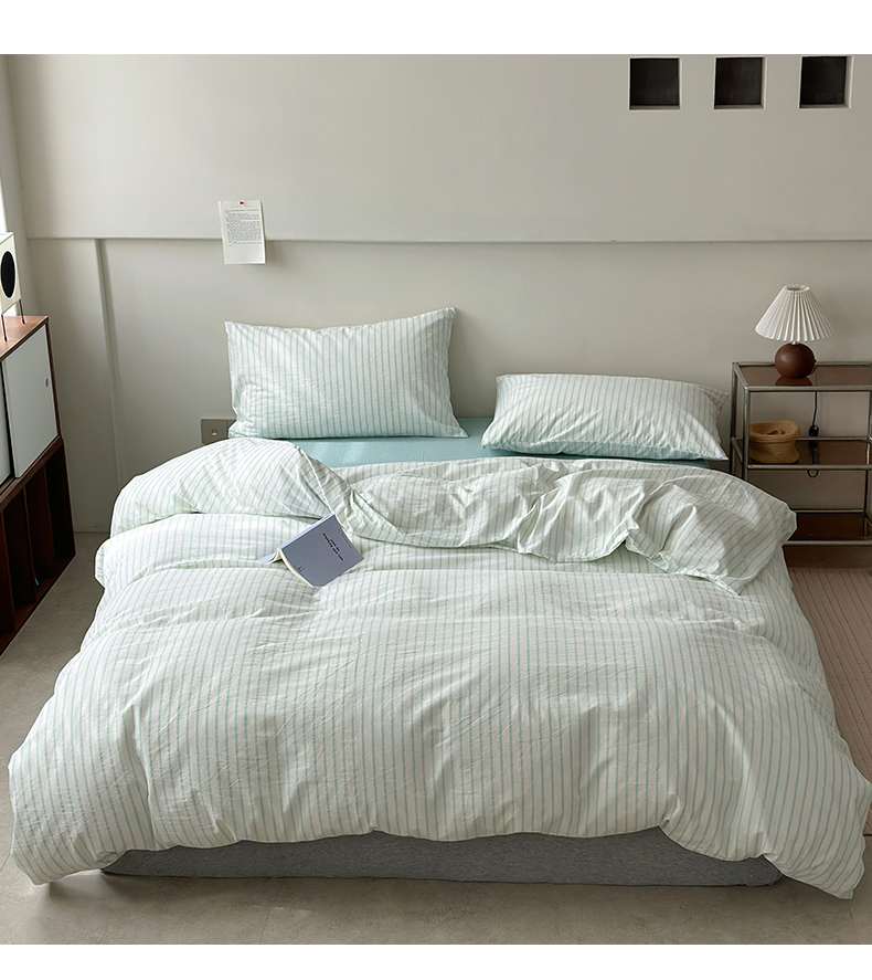 水洗的故事 2025新款全棉色织水洗棉四件套 简序-蓝