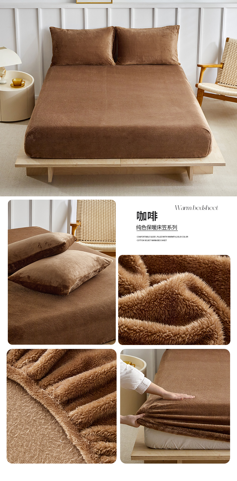 商品名称:2025新款热款北极绒床笠三件套跨境电商外贸欧美尺寸舒棉绒绒牛奶绒保暖三件套 咖啡