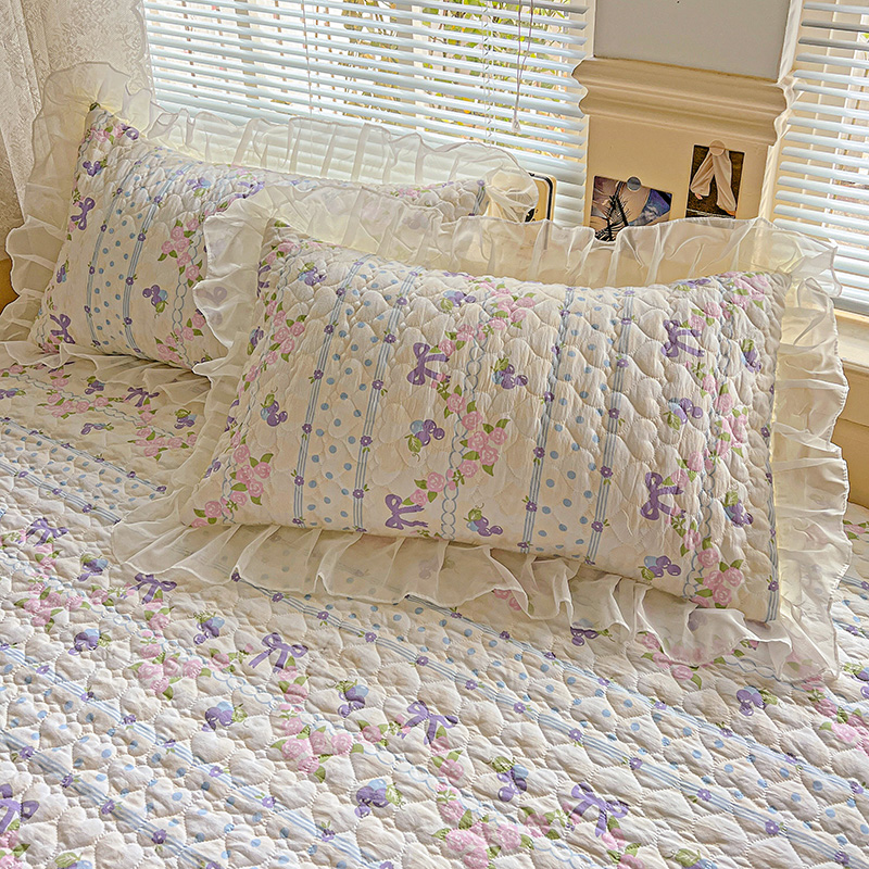 艾橙家纺 2025新款雪纺花边加棉床笠款单品四件套-单枕套 彩色波点
