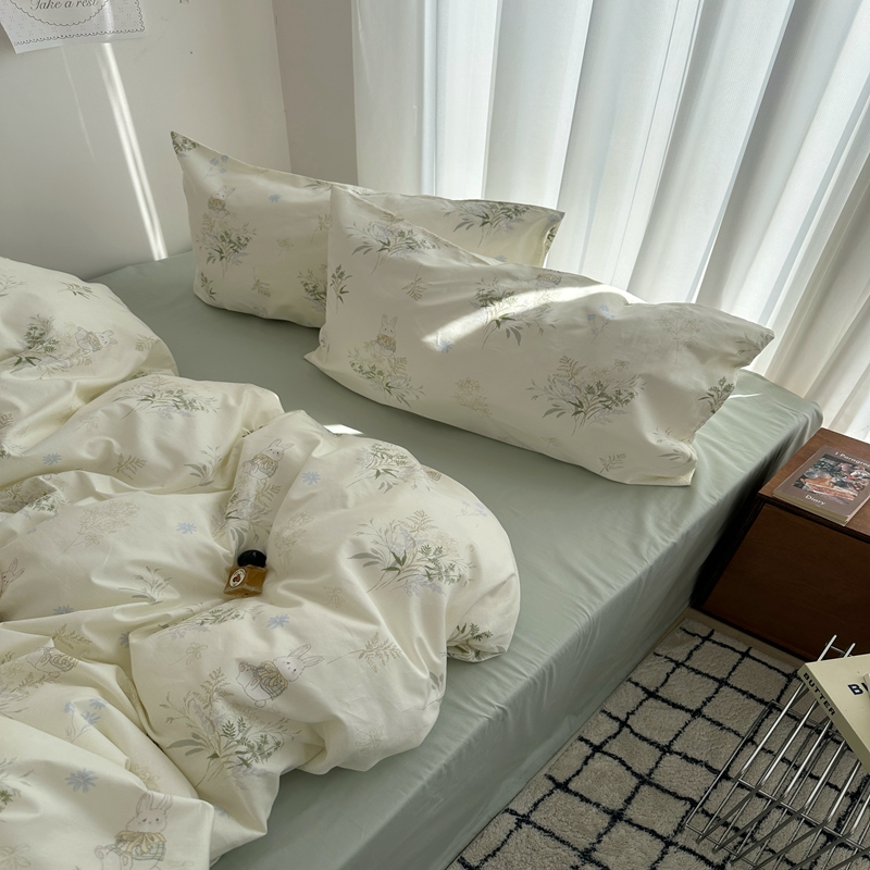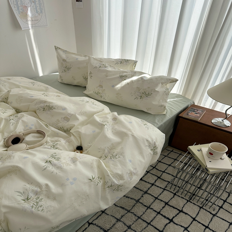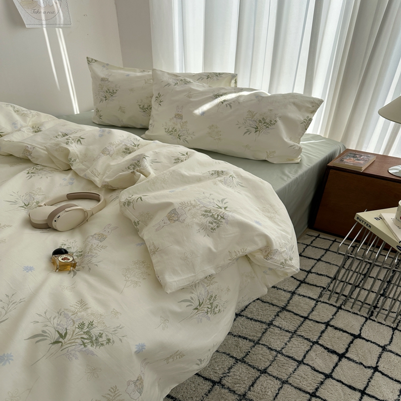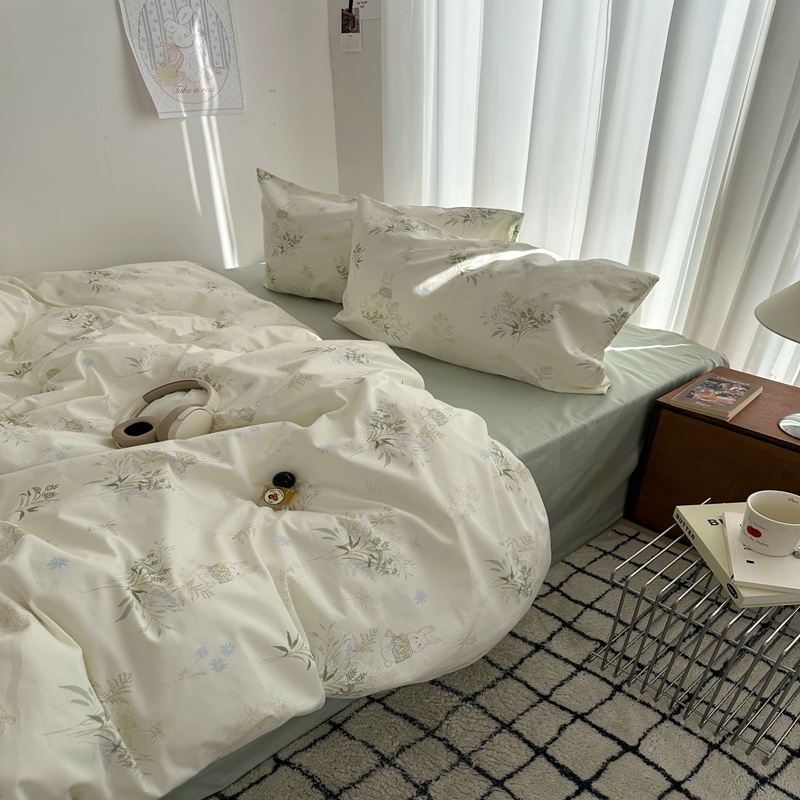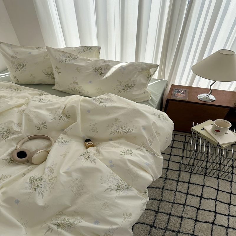 (总)尺素 全棉40支喷气13372韩国ins设计师四件套,花舞,篱落粉,篱落黄,落英,派对,童趣,涂鸦,小粉兔,雪地熊