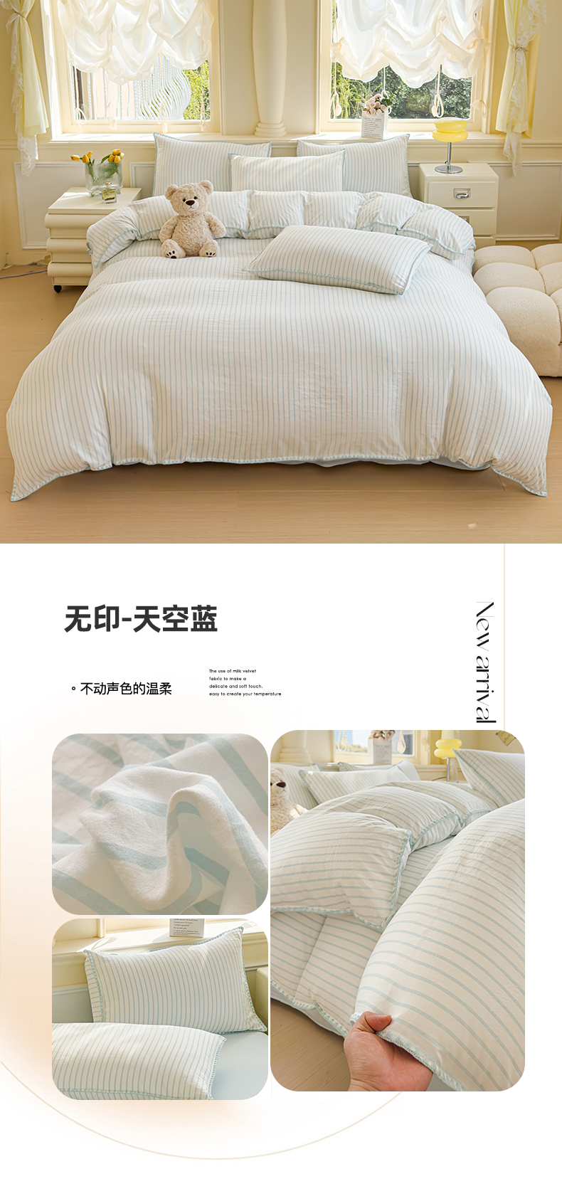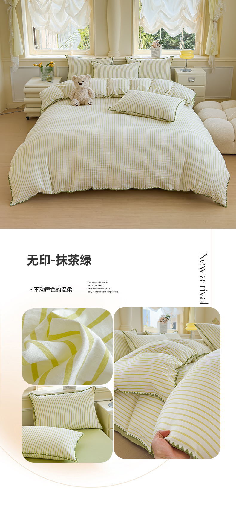 (总)千希家纺 2025新款色织提花条纹泡泡纱四件套-莫奈庄园,莫奈庄园