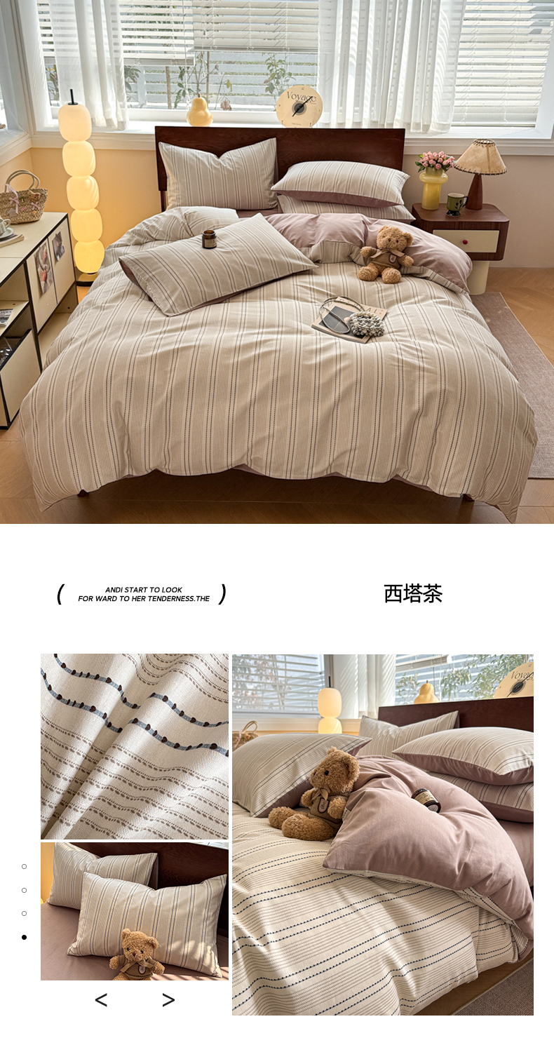 呗旺鹿 2025新款学生季全棉纯棉40支跑量款巴恩风四件套 西塔茶