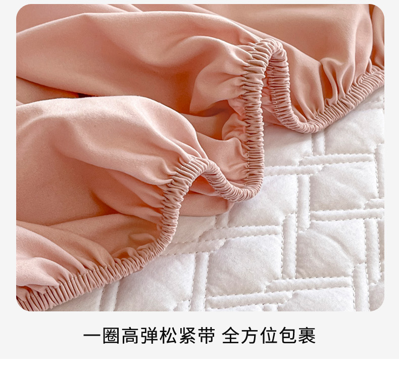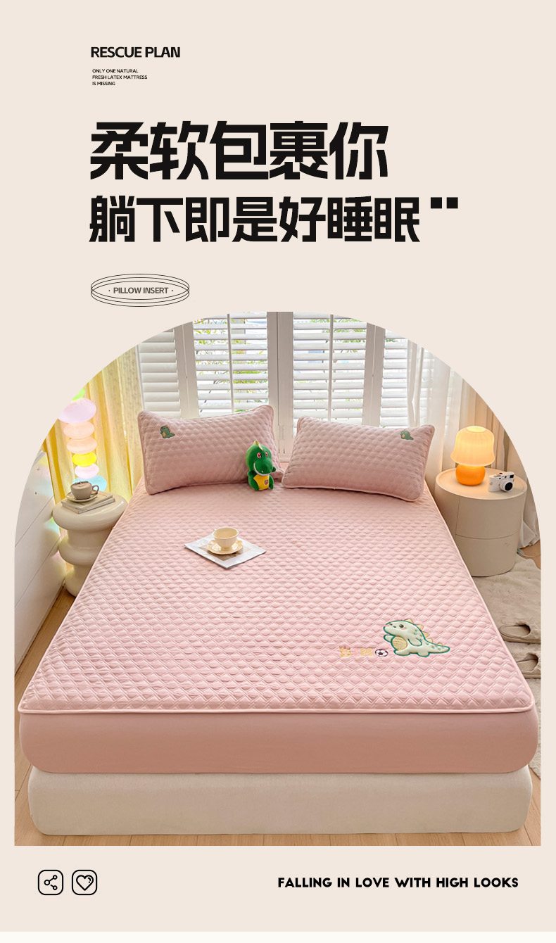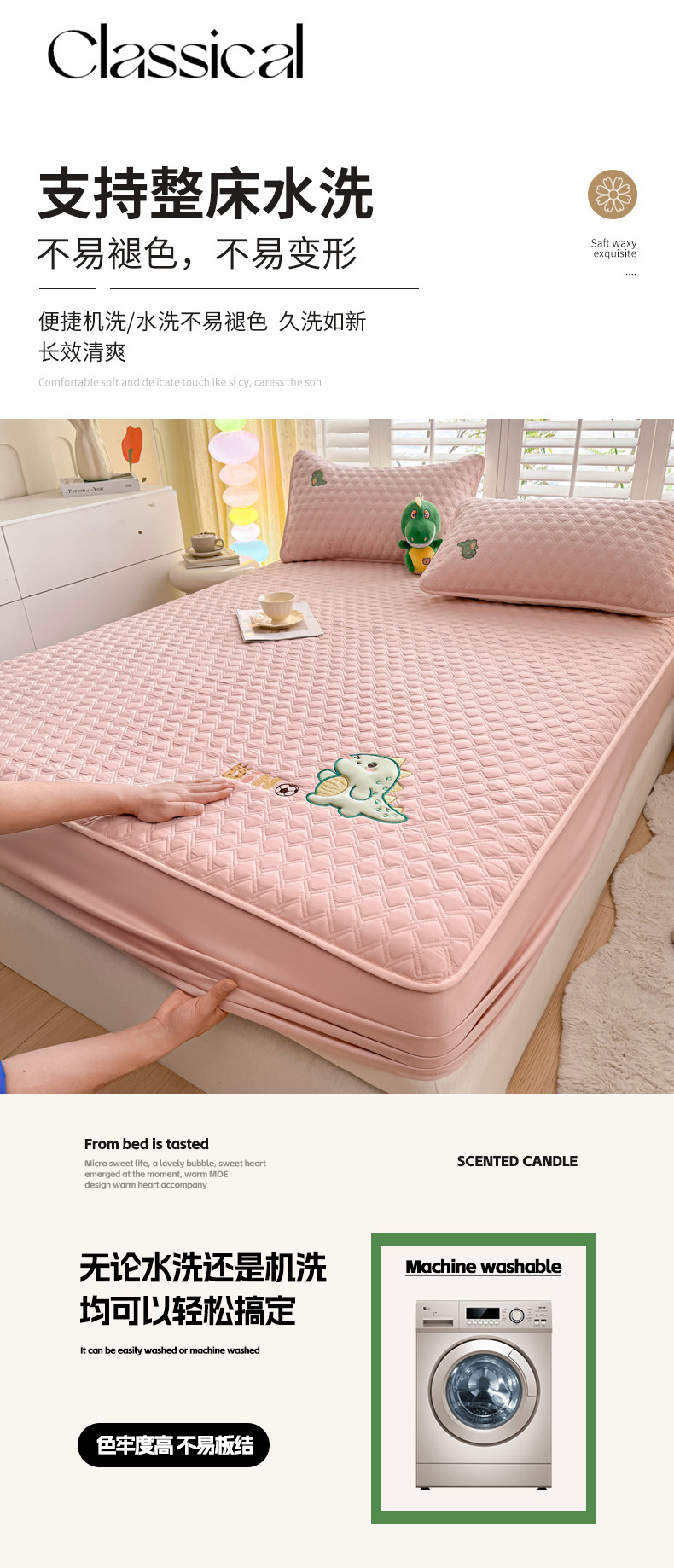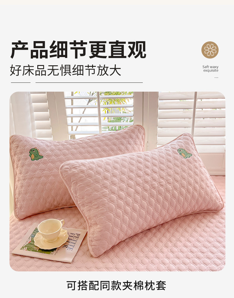 商品名称:万盛家纺 2025新款夹棉恐龙刺绣床笠 恐龙-菱形格 粉