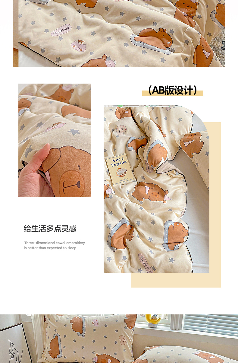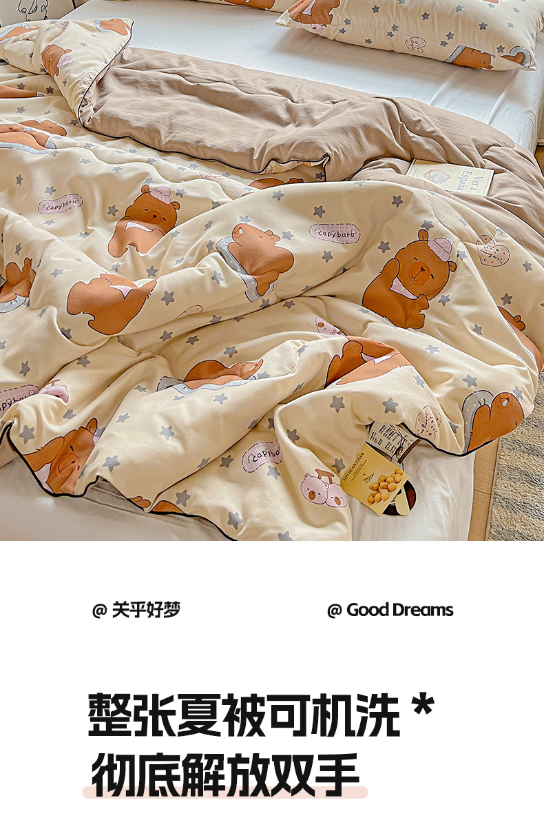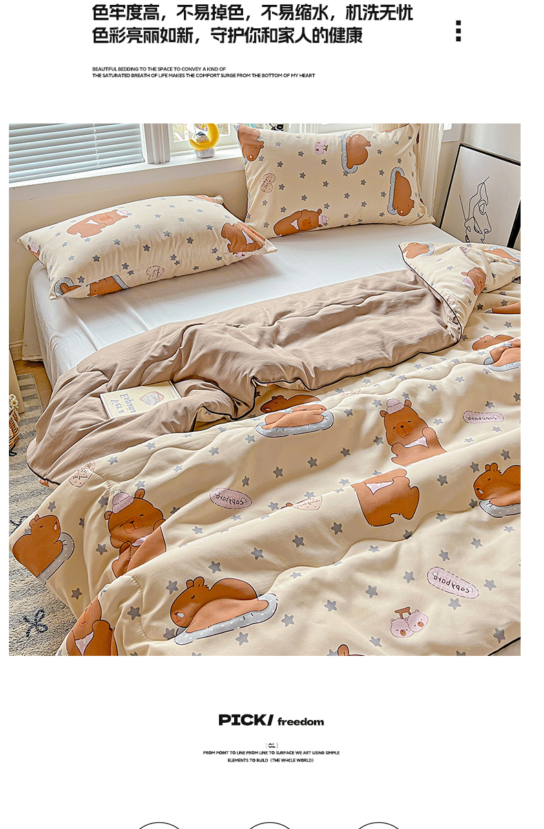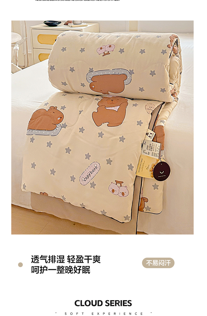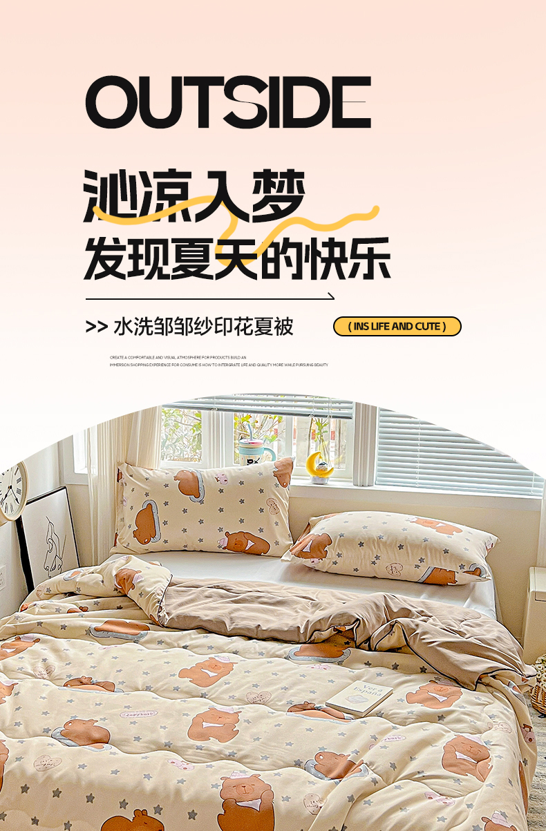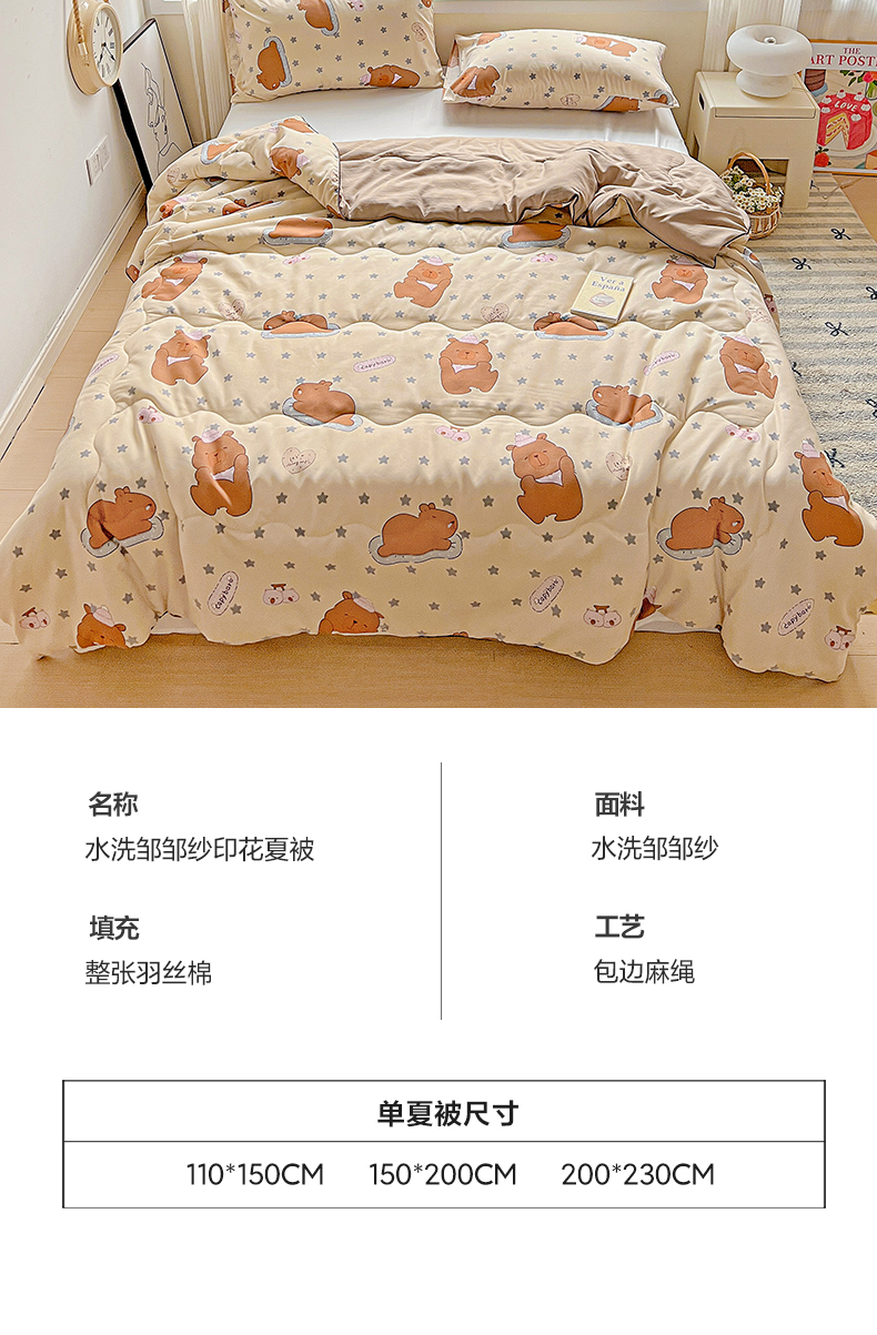 玉海棠家纺 2025新款水洗皱皱纱印花夏被 被子被芯 冷库卡皮-米