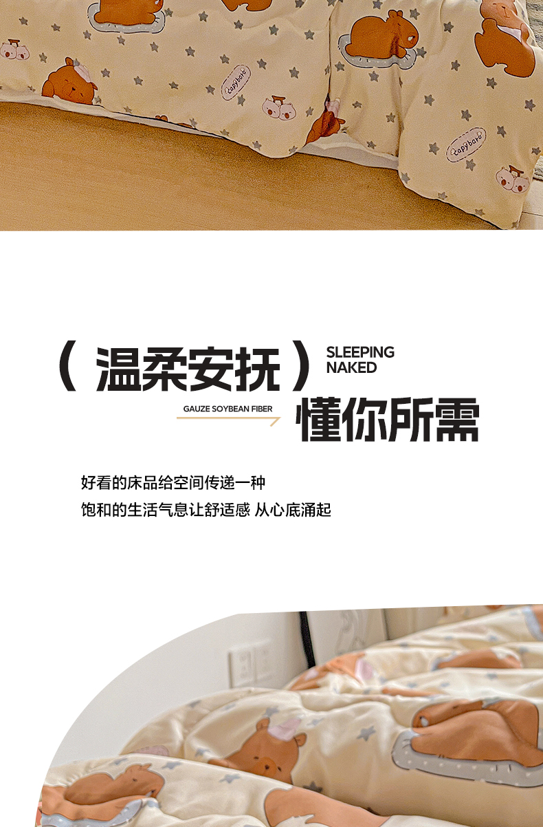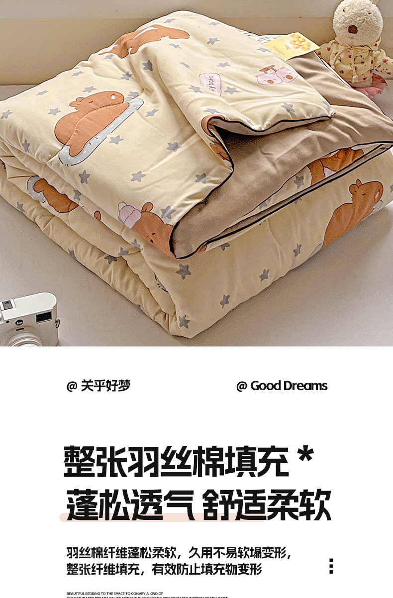 商品名称:玉海棠家纺 2025新款水洗皱皱纱印花夏被 被子被芯 冷库卡皮-米