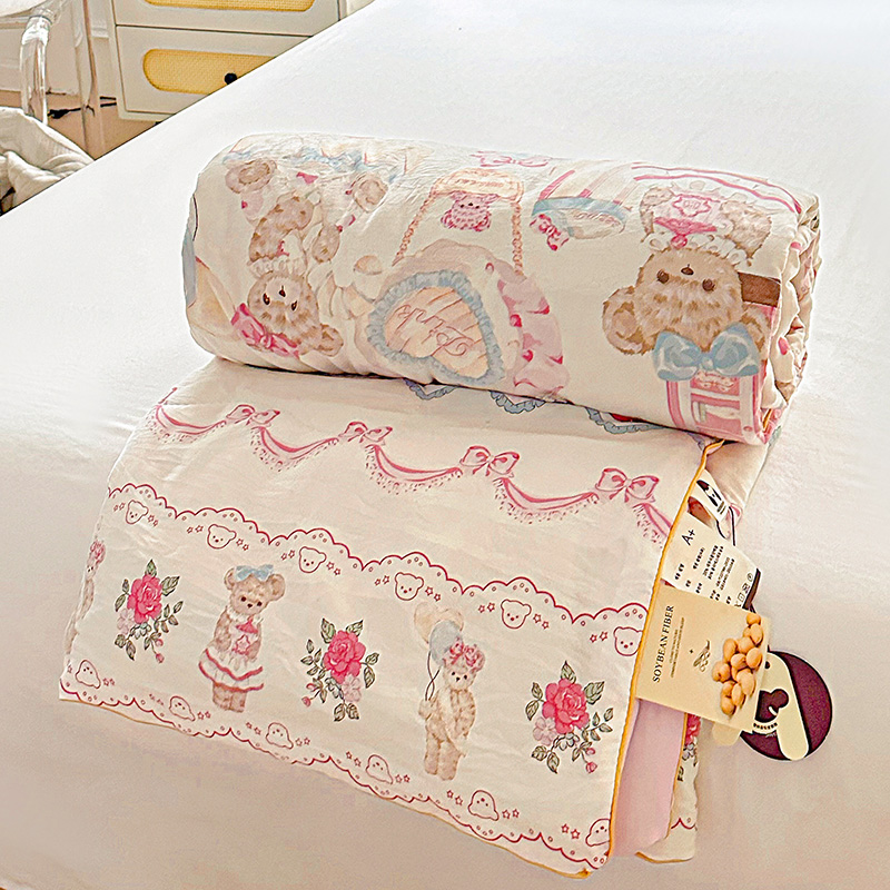商品名称:玉海棠家纺 2025新款水洗皱皱纱印花夏被 被子被芯 小熊玩偶屋