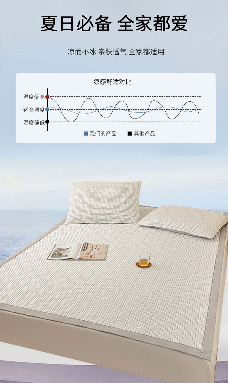 (总)野马寝具跨境电商专供 2025新款高分子冰感垫软凉席,斜方格,正方格