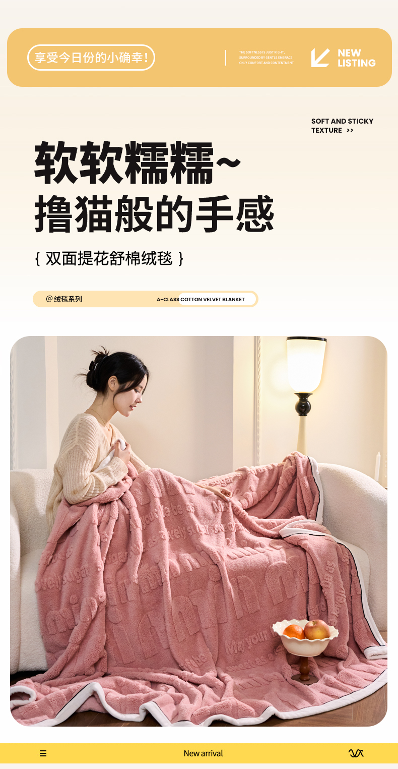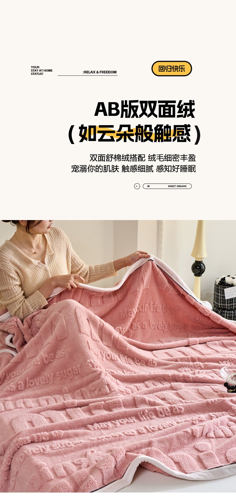 (总)兰紫橙家纺 2025新款双面提花舒棉绒毯跨境