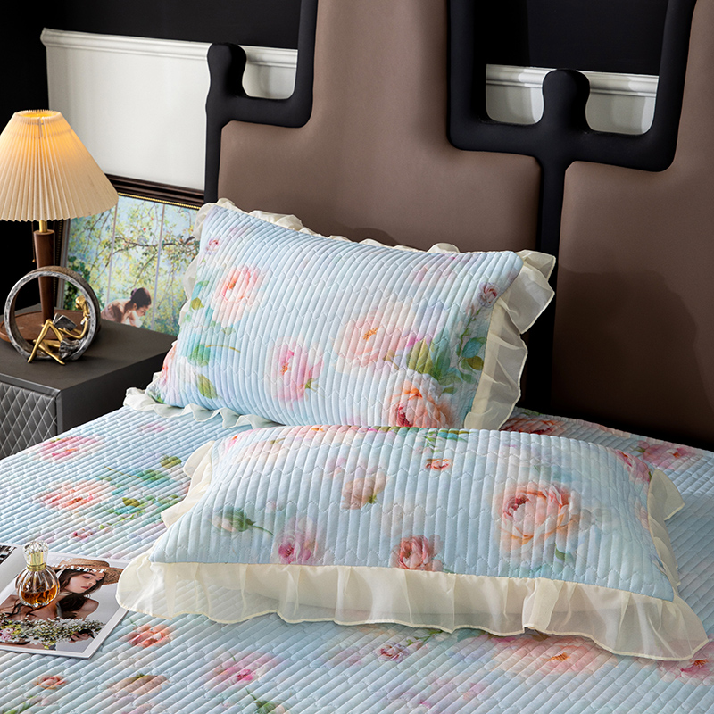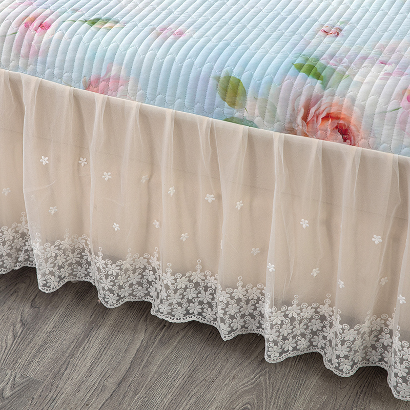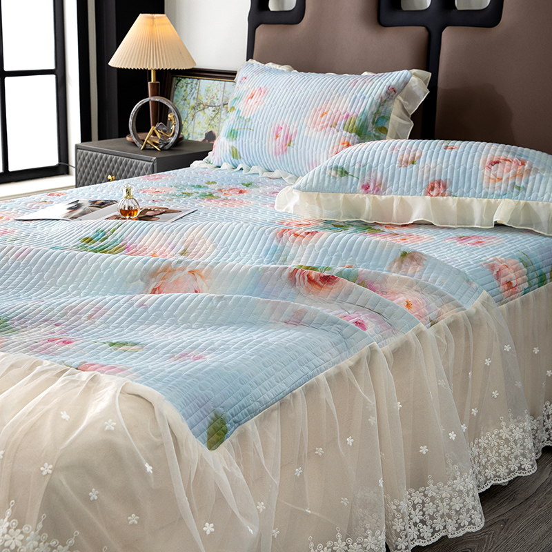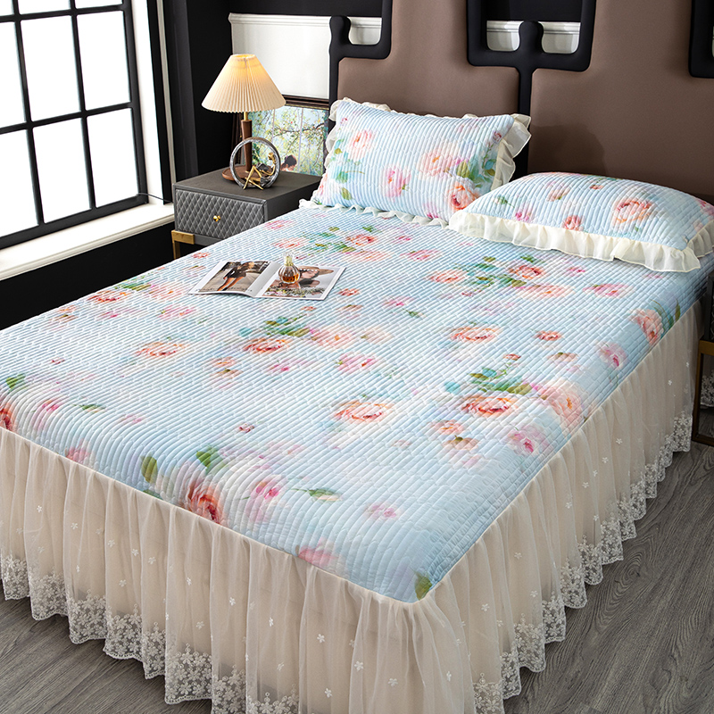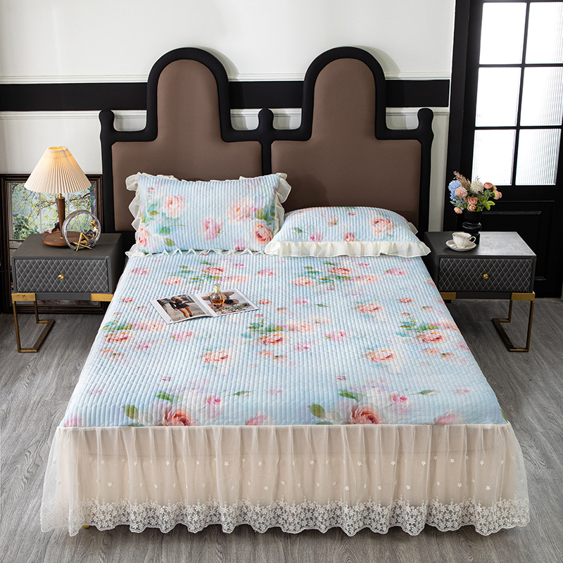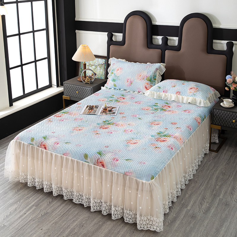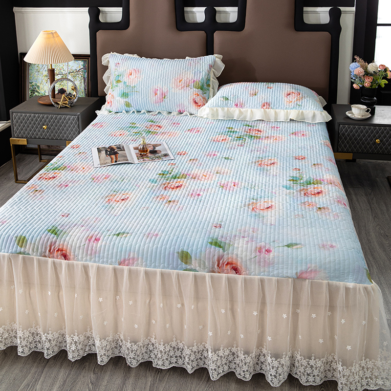 商品名称:木兰花2025新款高密凉感丝印花夹棉床裙款凉席三件套 幕云