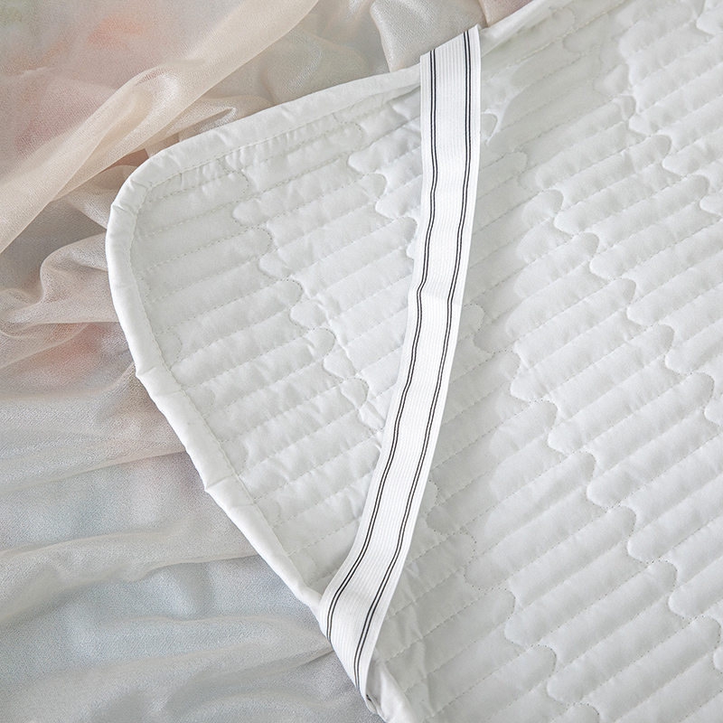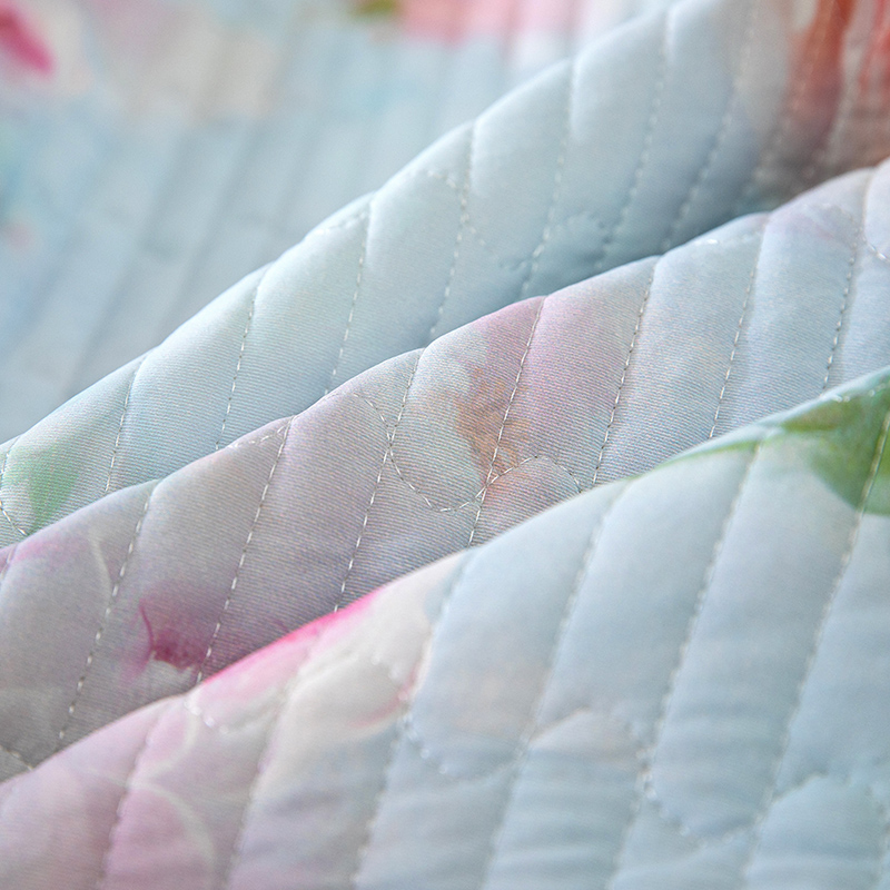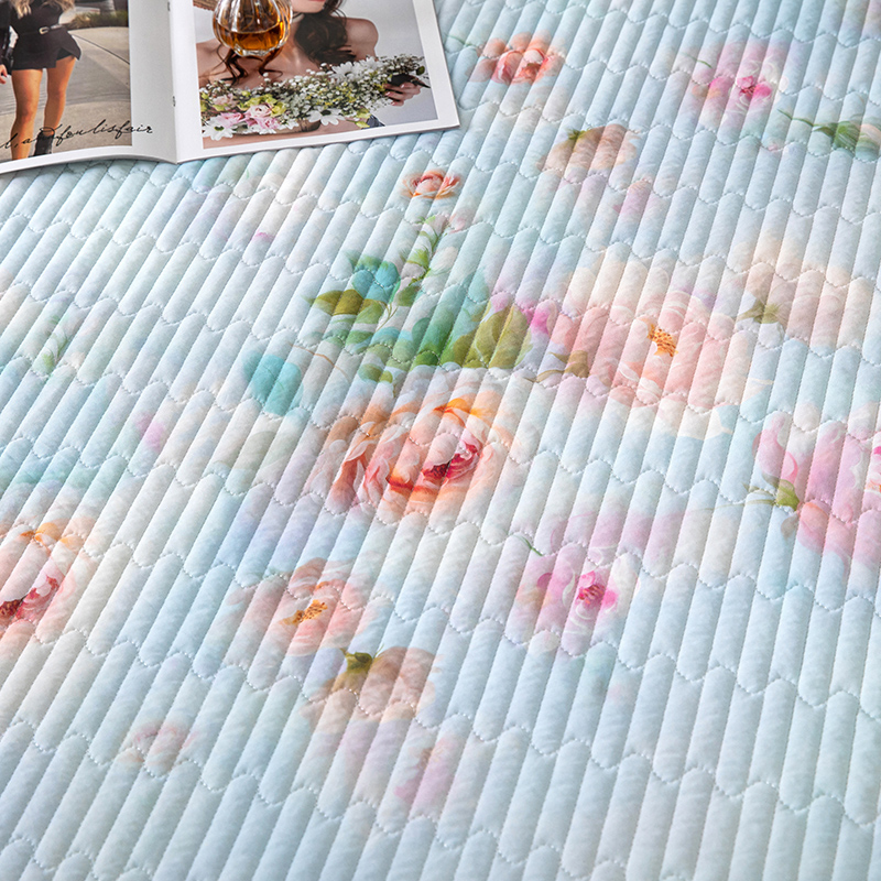 木兰花2025新款高密凉感丝印花夹棉床裙款凉席三件套 幕云