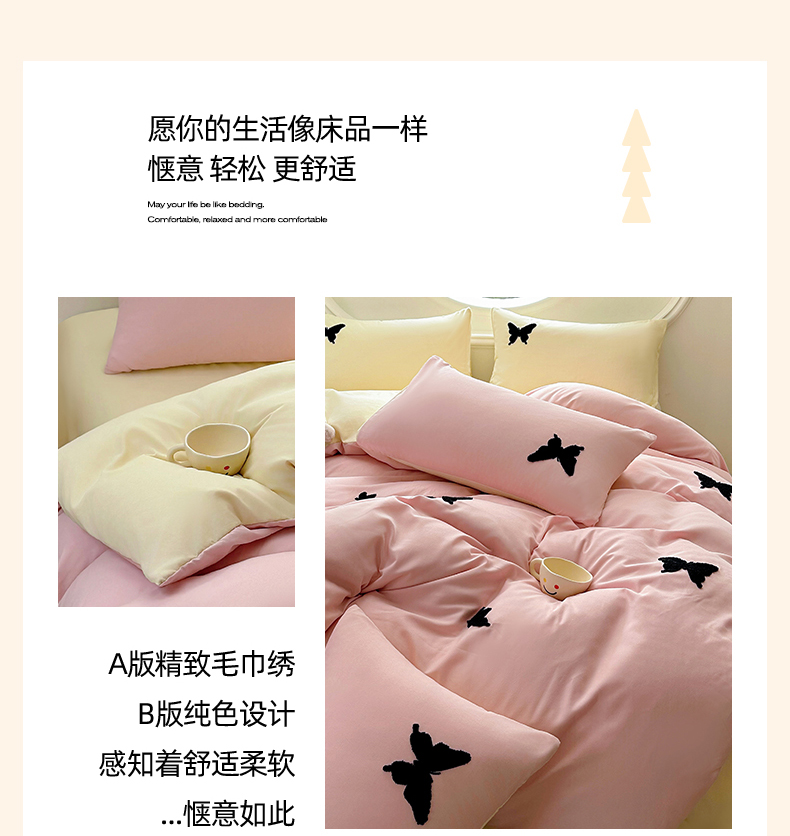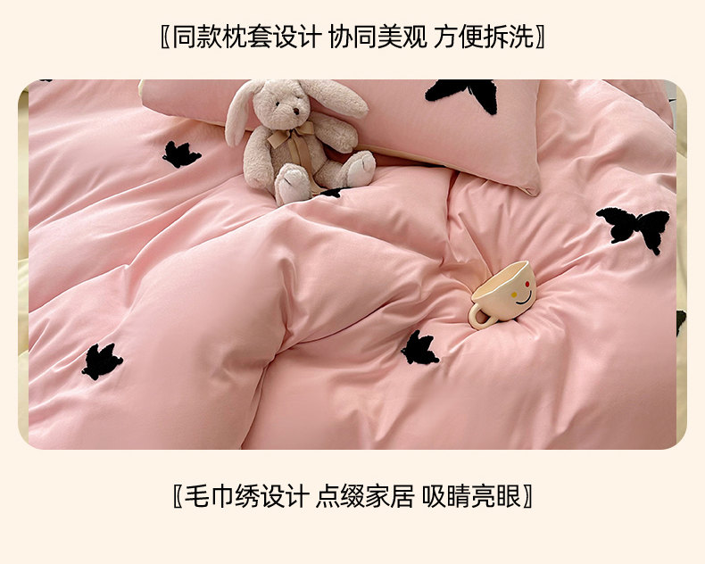 商品名称:(总)迪拜家纺 2025新款加厚水洗棉毛巾绣四件套-蝴蝶