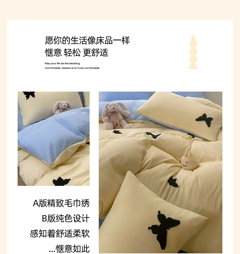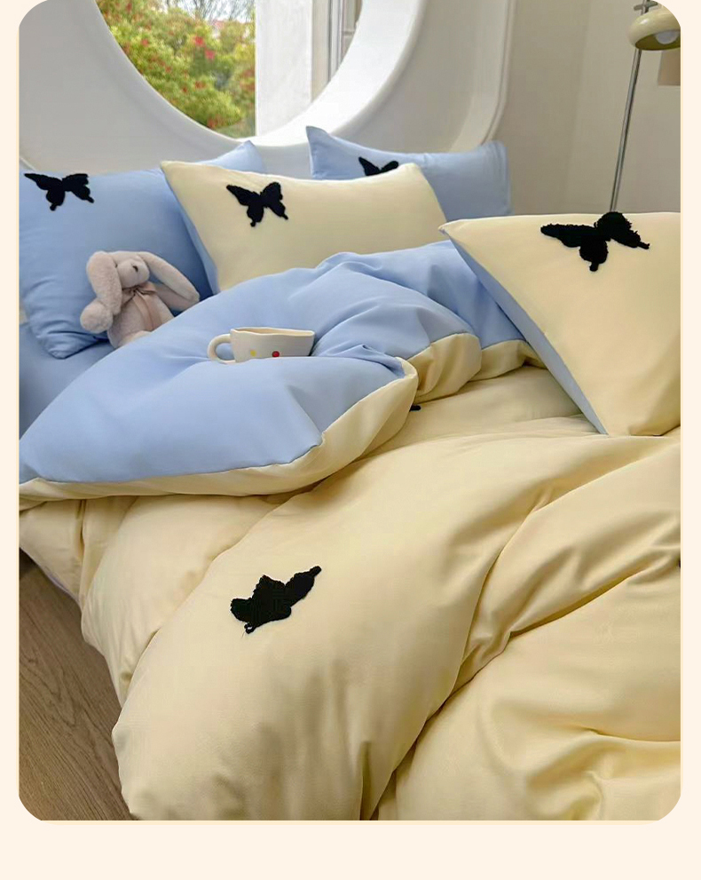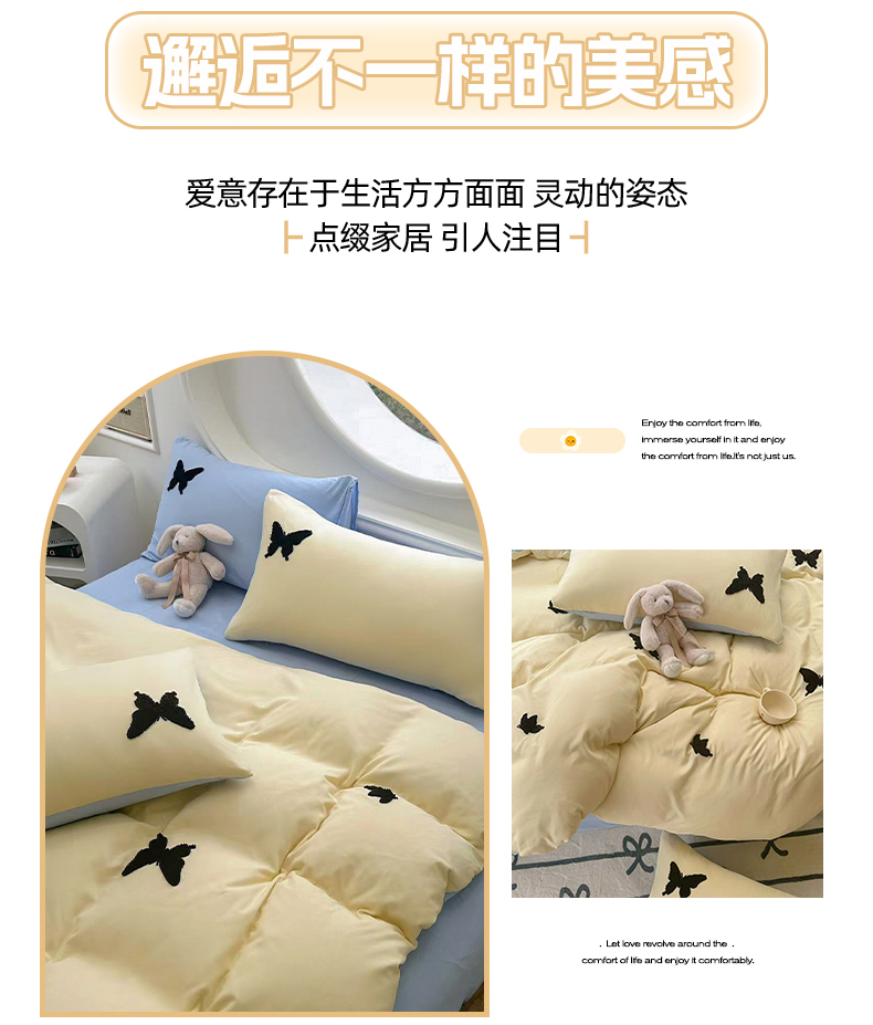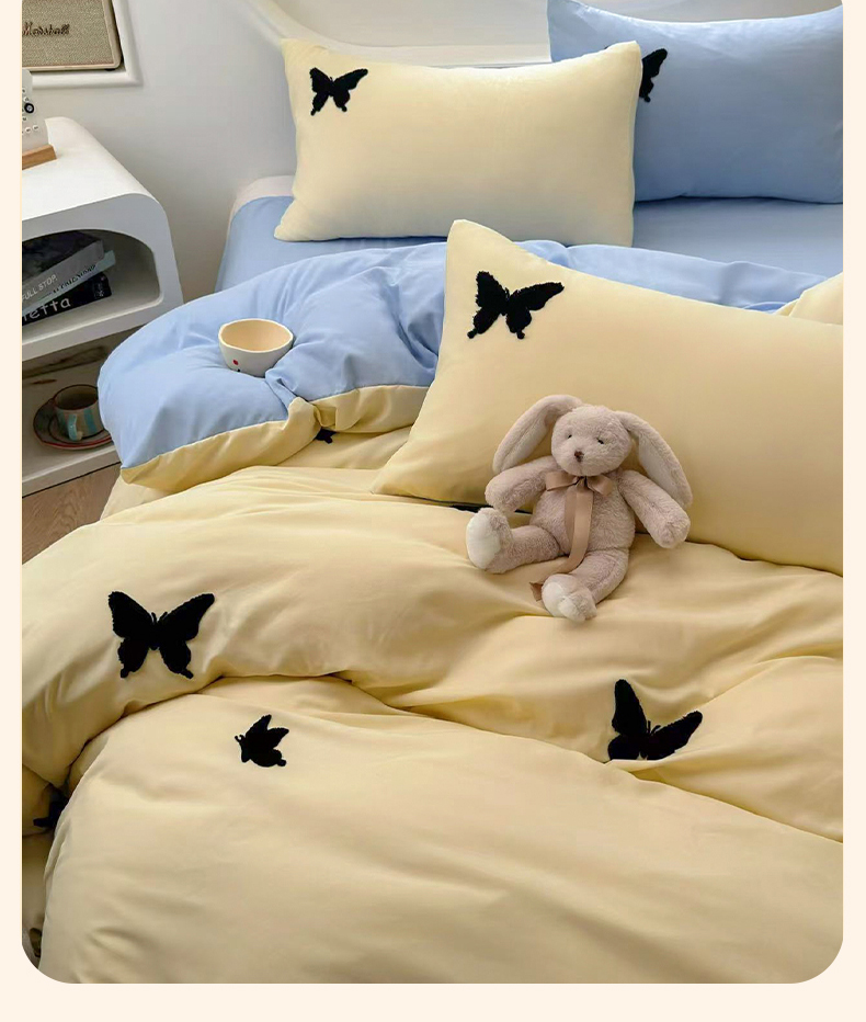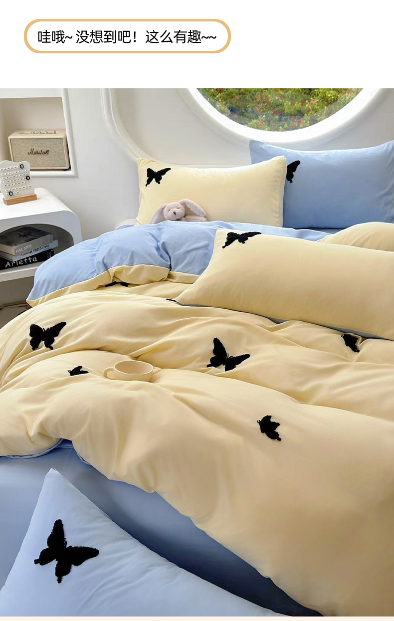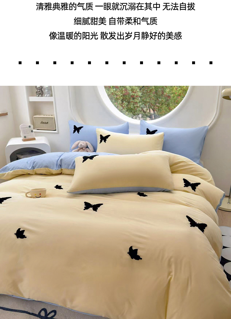 当前位置: 91家纺网 > 商品网购 > 床品套件 > 四件套 > 水洗棉四件套 > 易展家居 2025新款加厚水洗棉四件套-蝴蝶 蝴蝶-黄+蓝