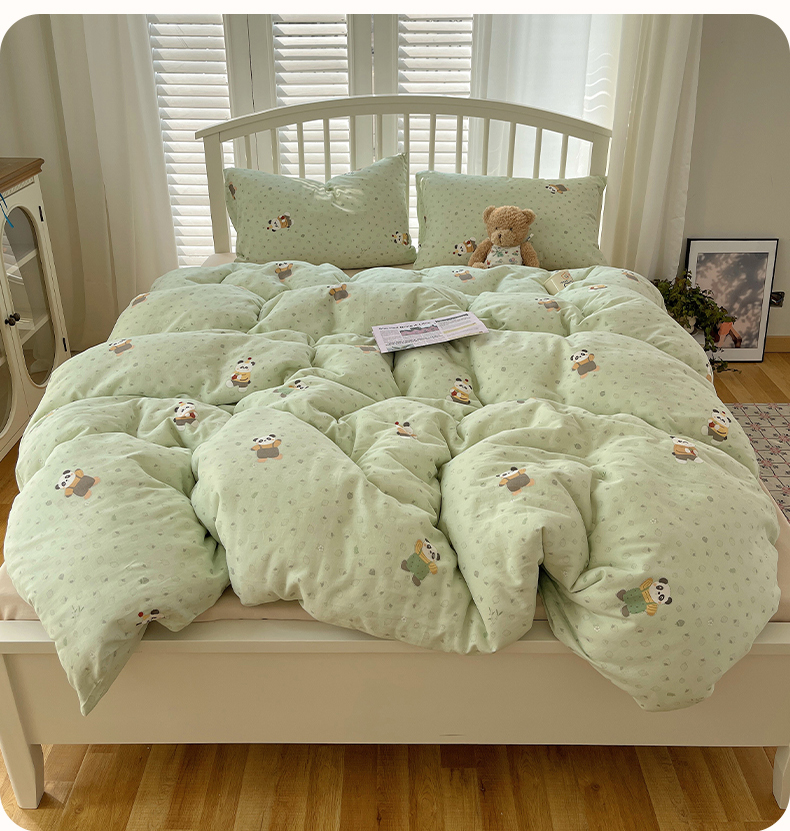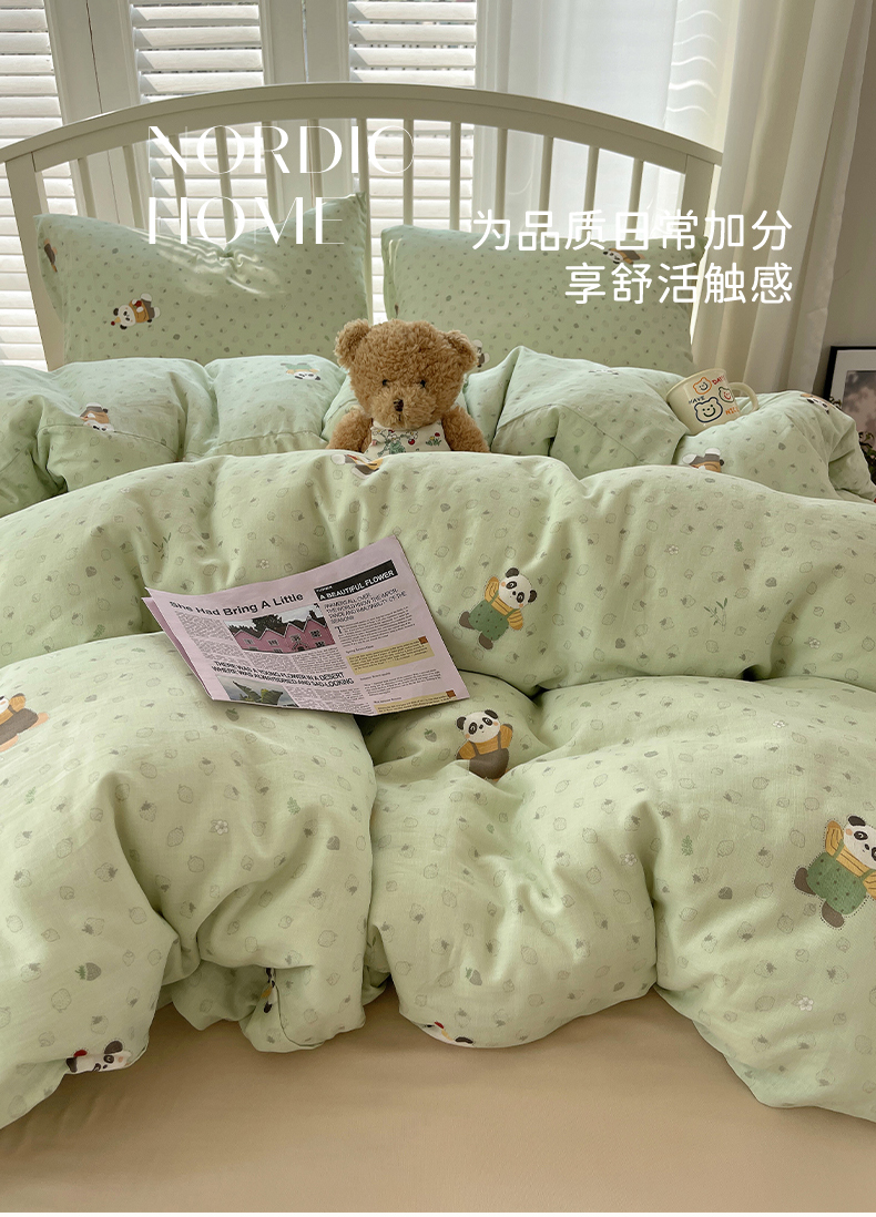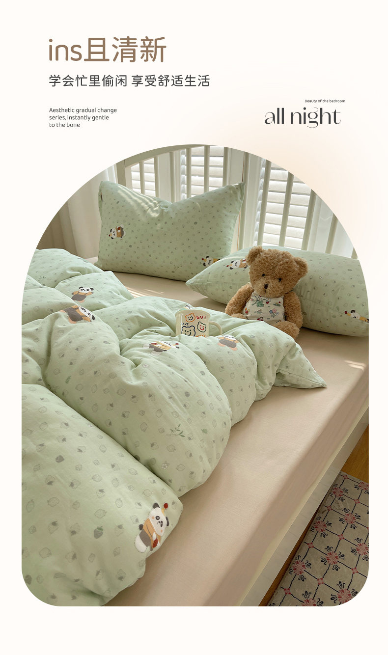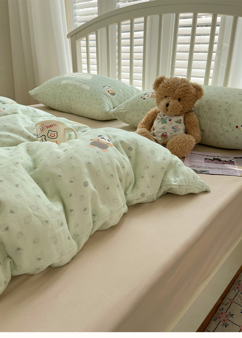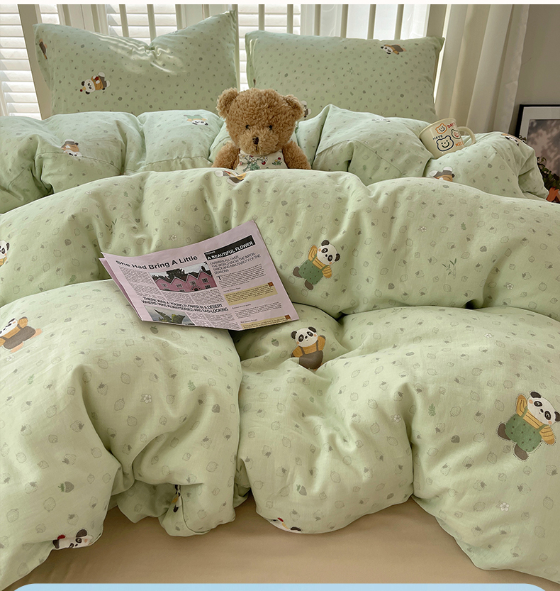 商品名称:瑞莱 2025夏季新款全棉纯棉有氧双层纱四件套 功夫熊猫