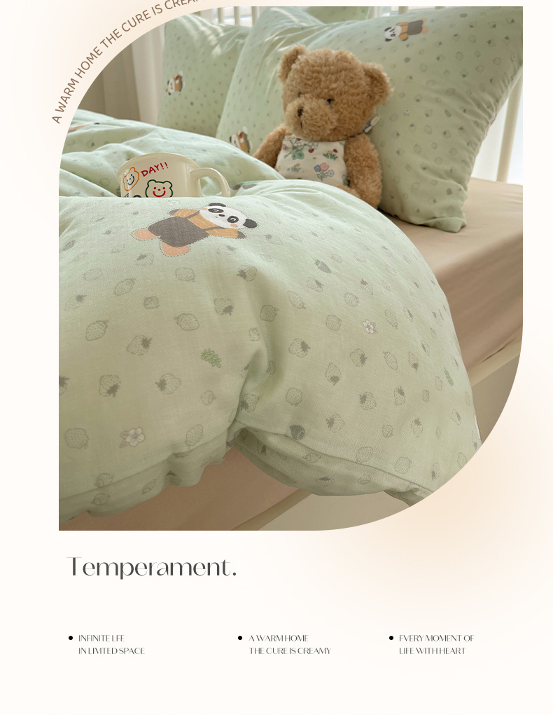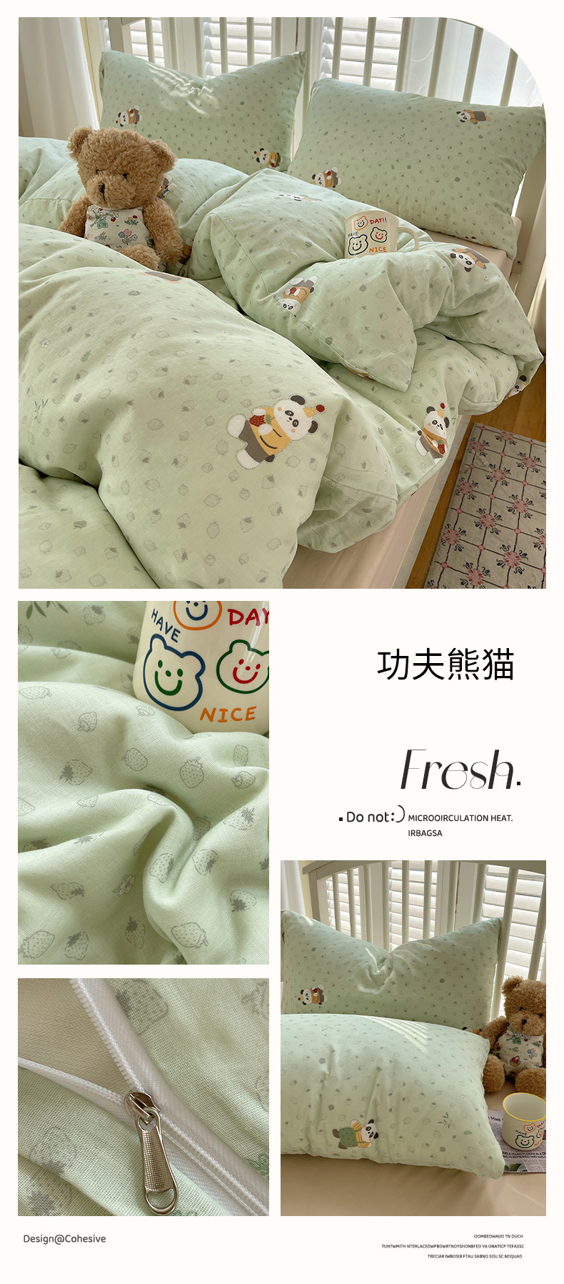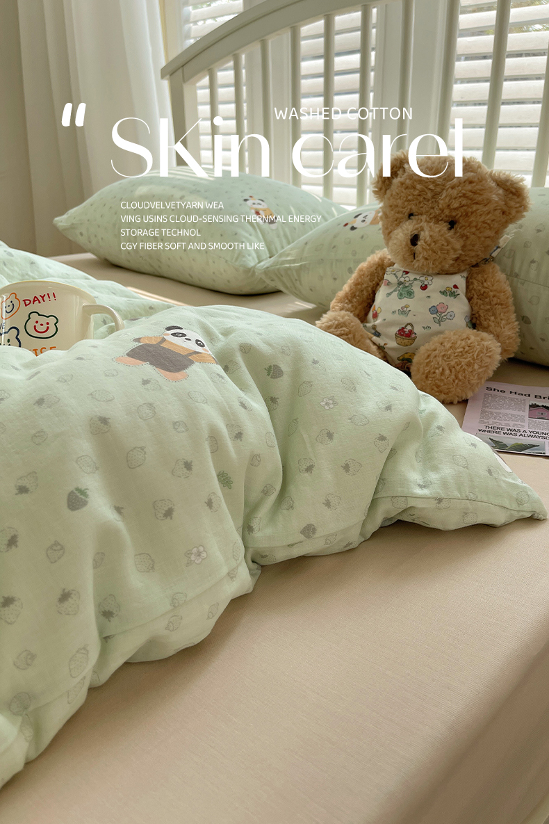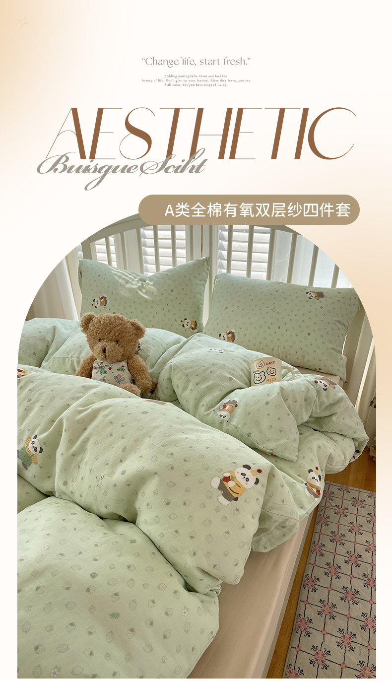 商品名称:瑞莱 2025夏季新款全棉纯棉有氧双层纱四件套 功夫熊猫