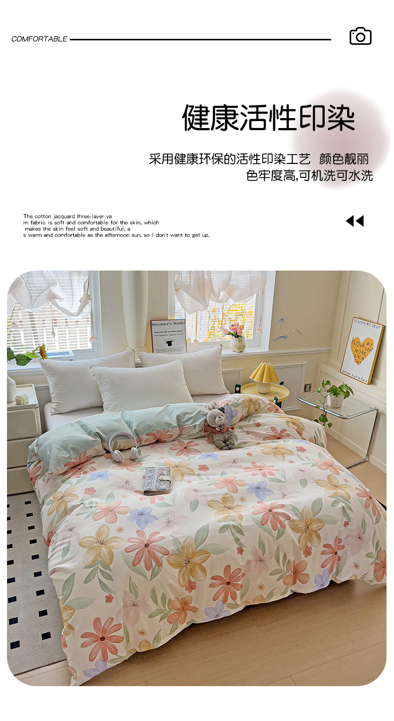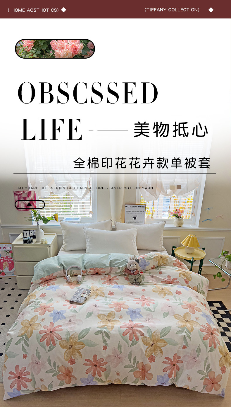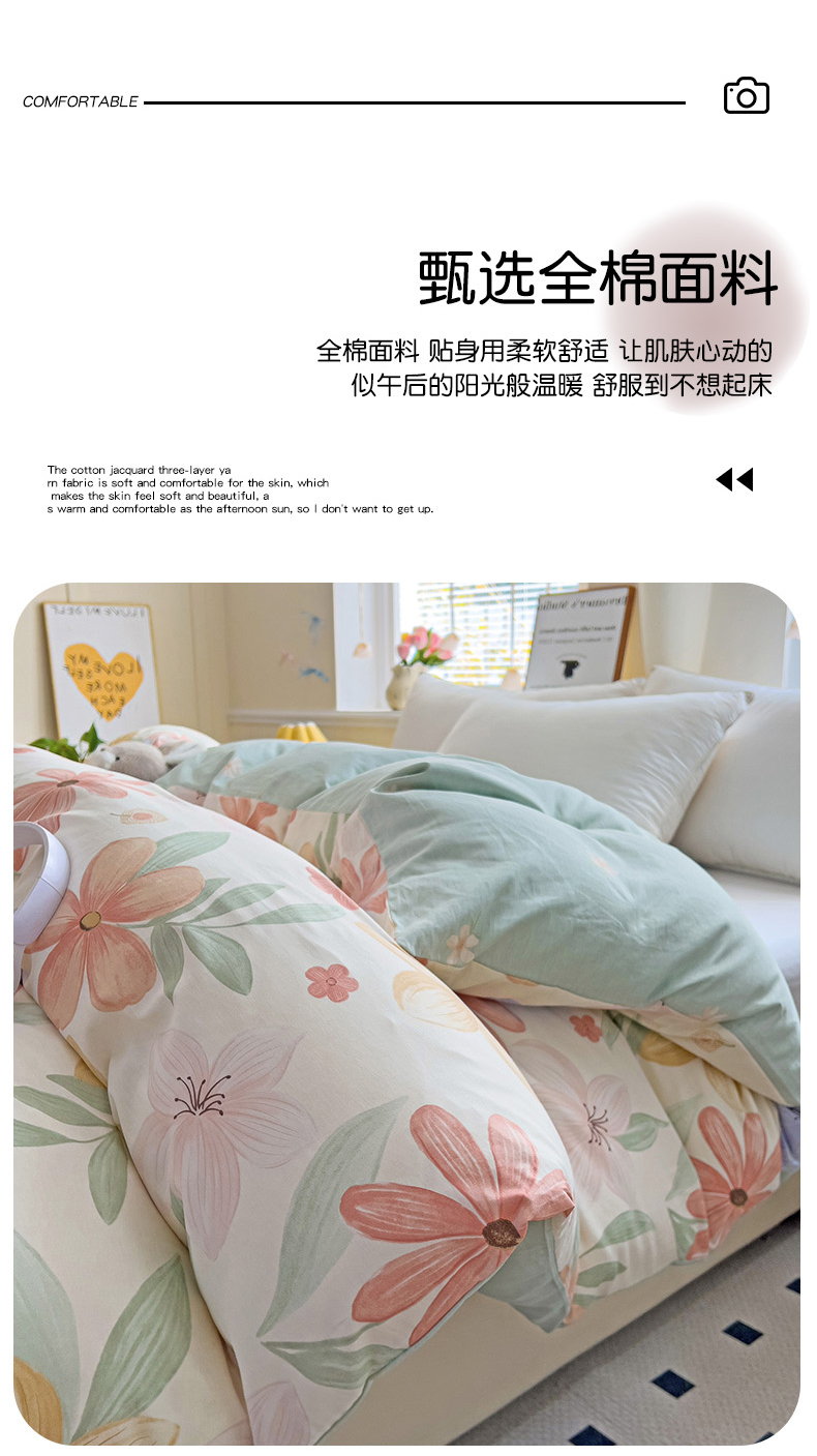 • 91家纺网 家纺一手货源 找家纺 依庭 2025新款全棉印花花卉款四件套单品系列-单被套 云裳花谷