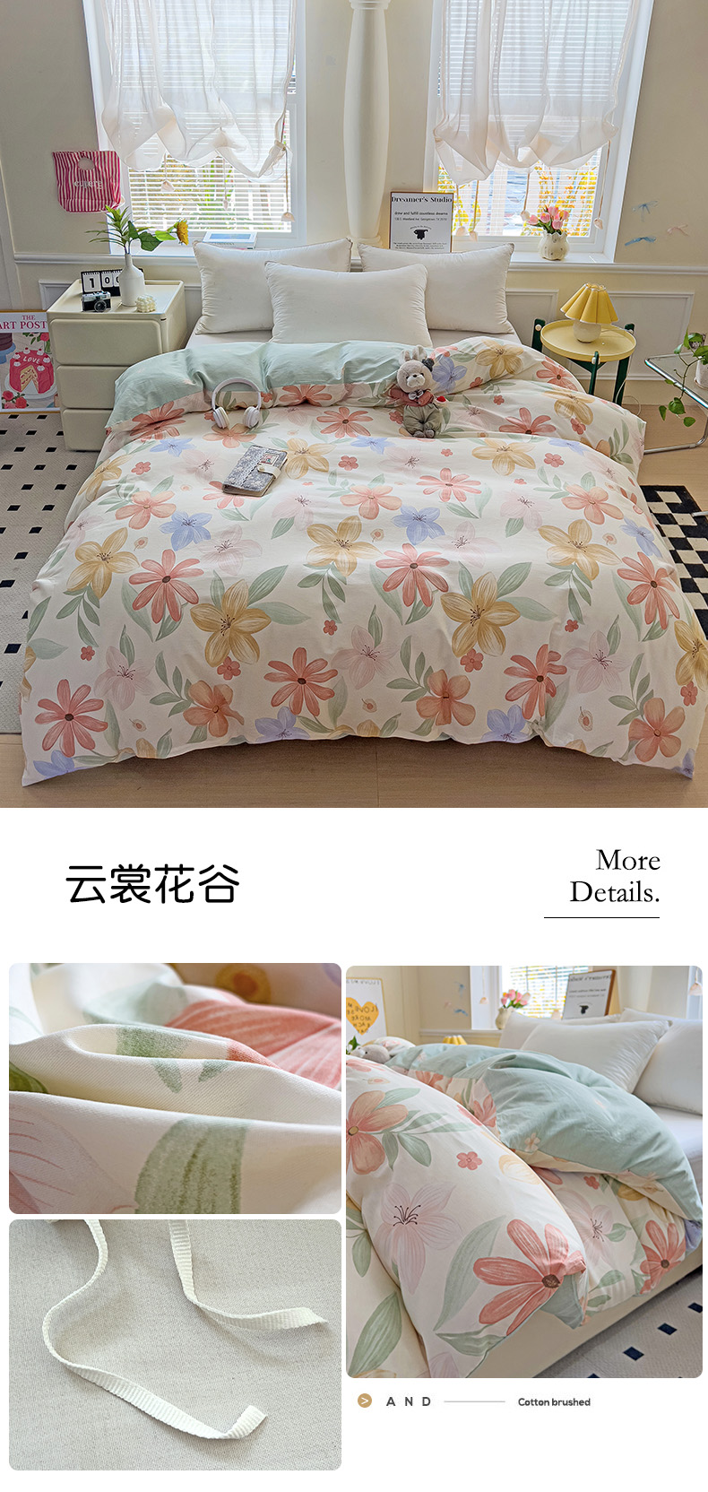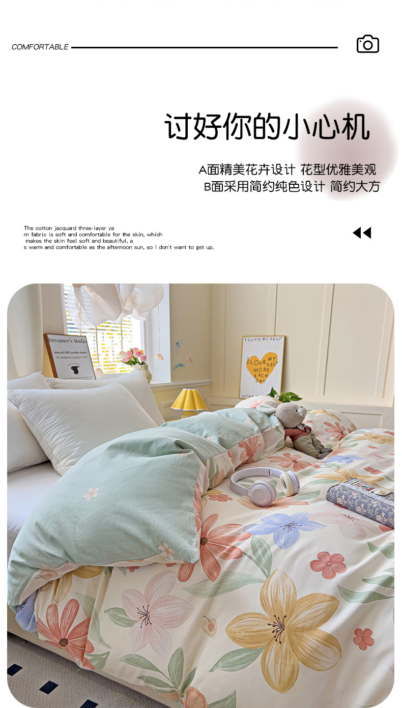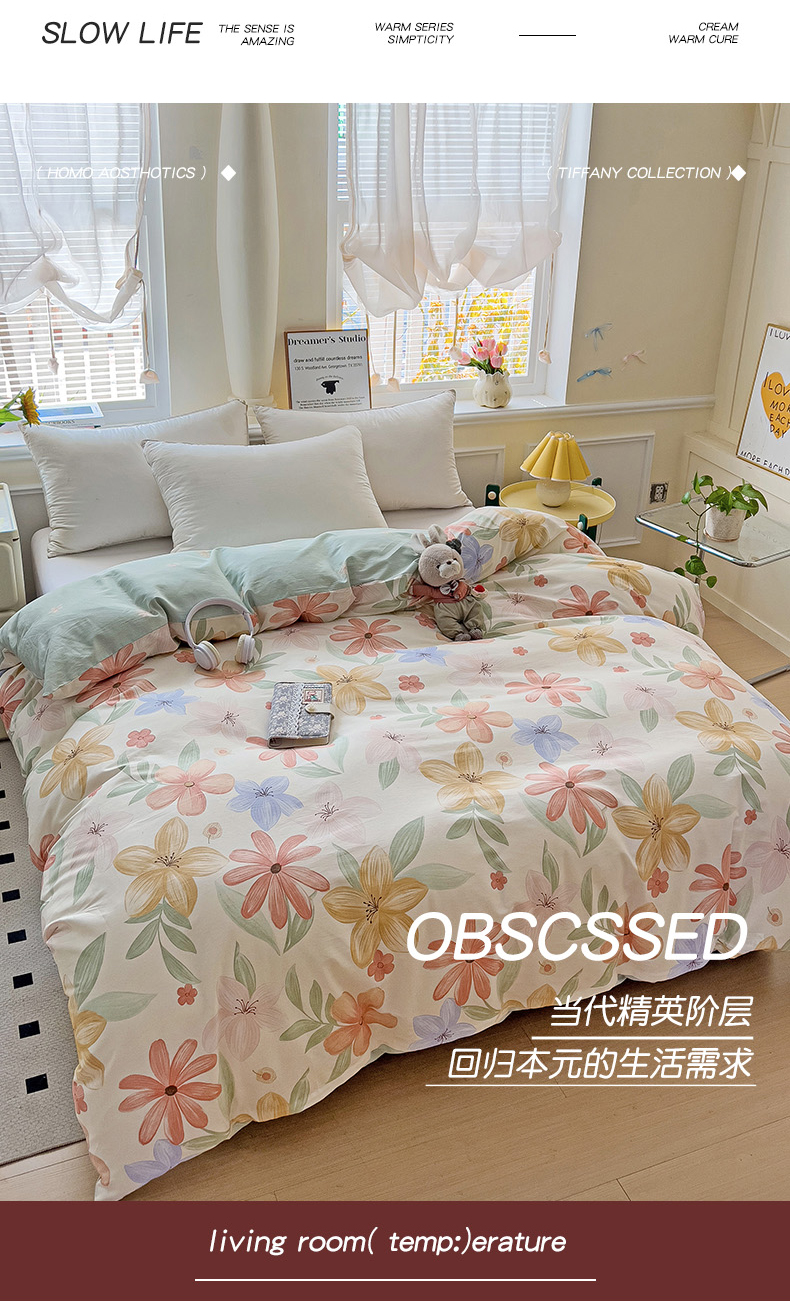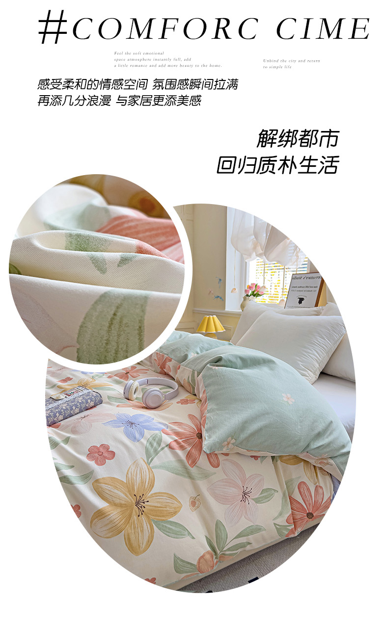 • 91家纺网 家纺一手货源 找家纺 依庭 2025新款全棉印花花卉款四件套单品系列-单被套 云裳花谷