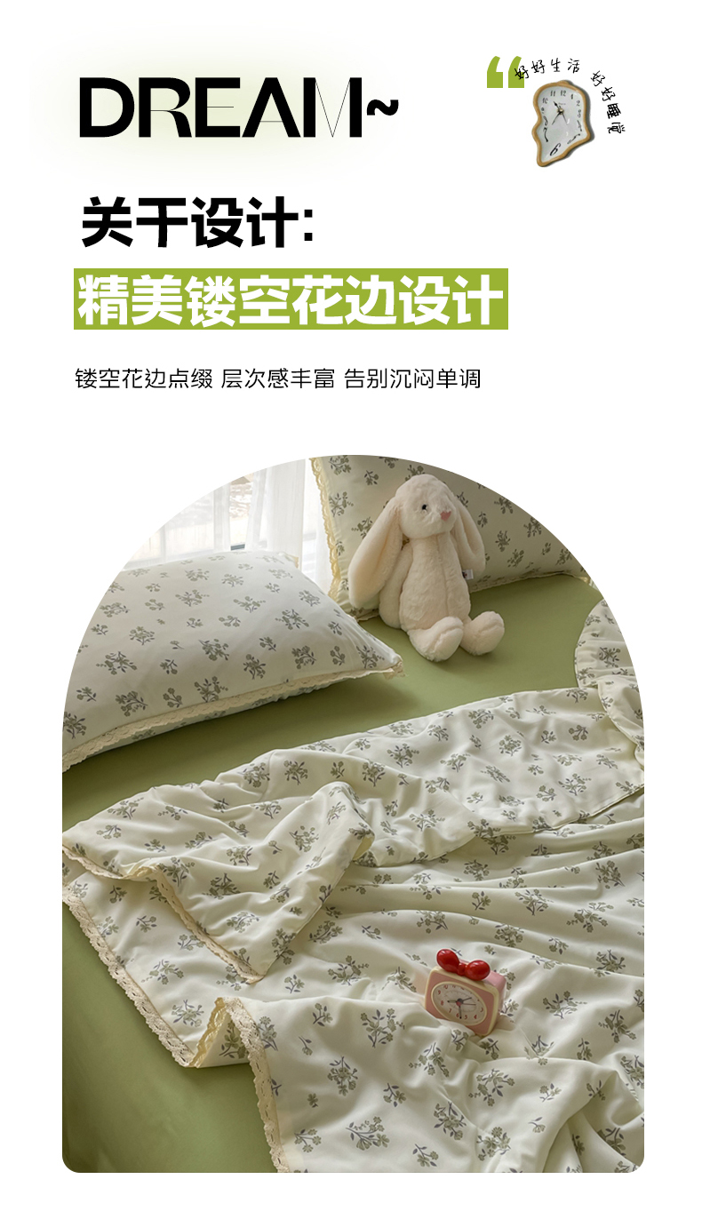 商品名称:仟网汇 2025新款针织双层纱镂空花边夏被夏凉被空调被四件套 浮生若梦