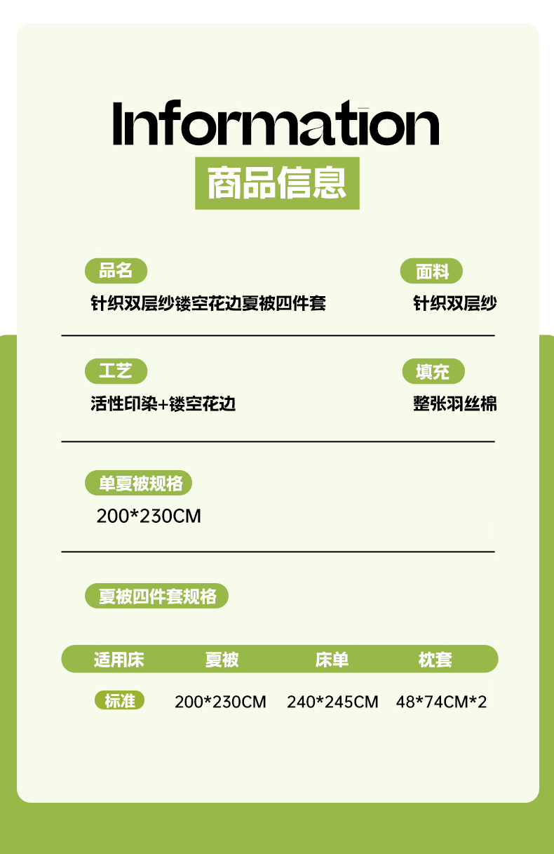 200x230cm夏被四件套