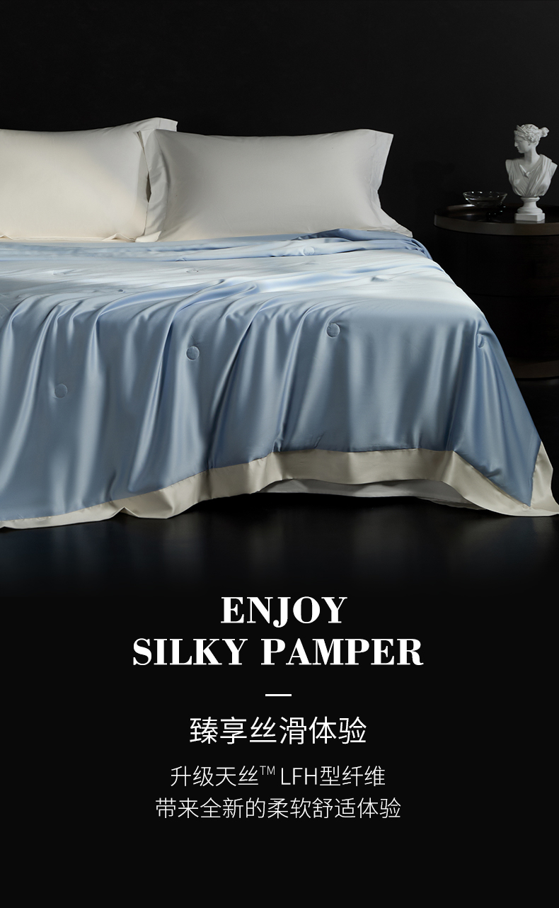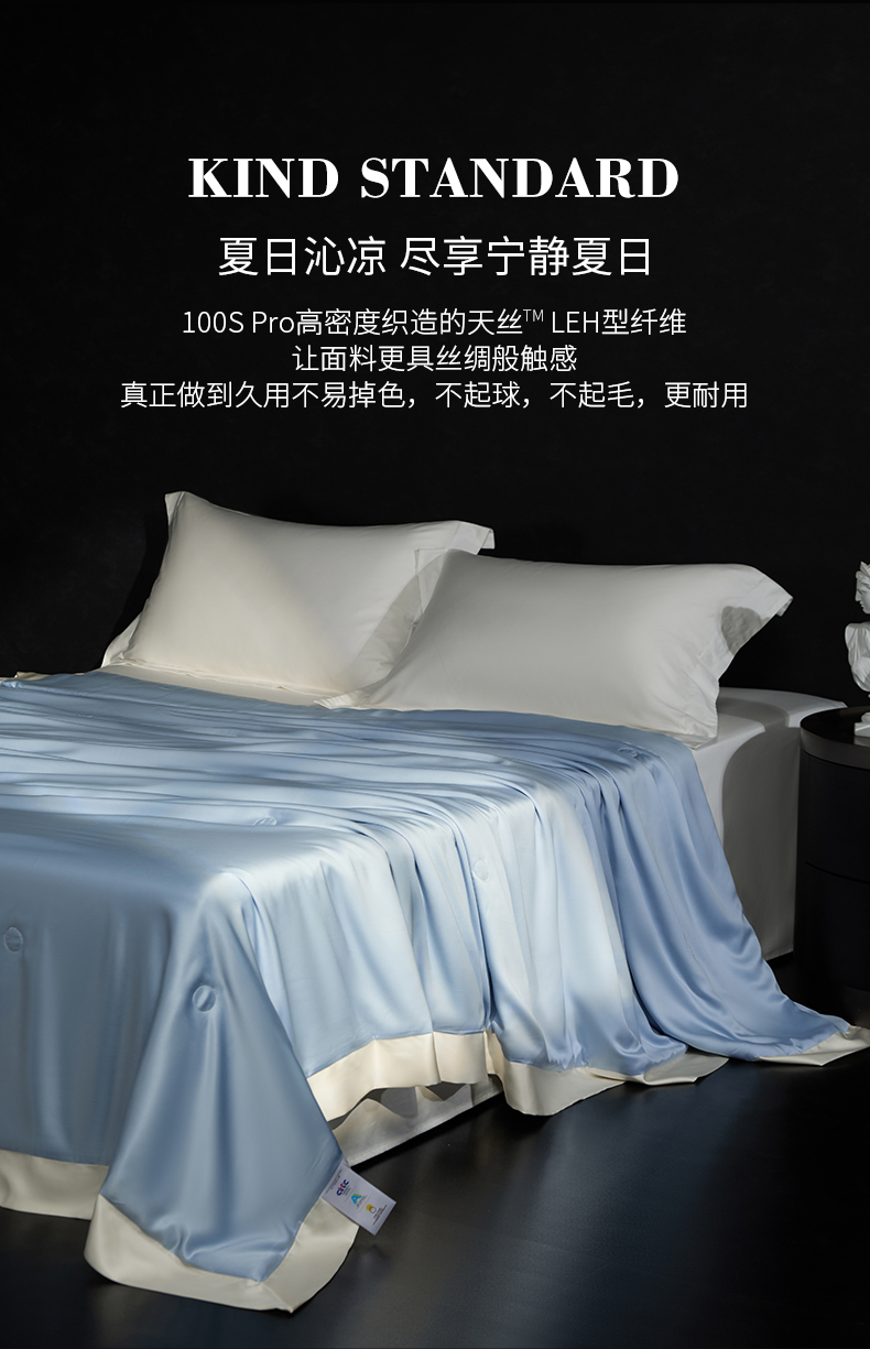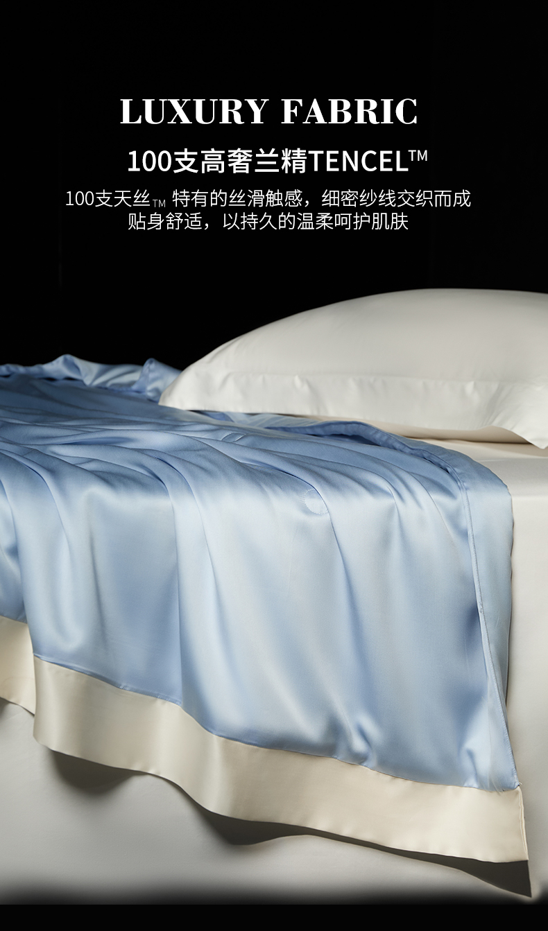 100支兰精天丝夏被纯色莱赛尔天丝空调被 天丝夏凉被 圣托蓝