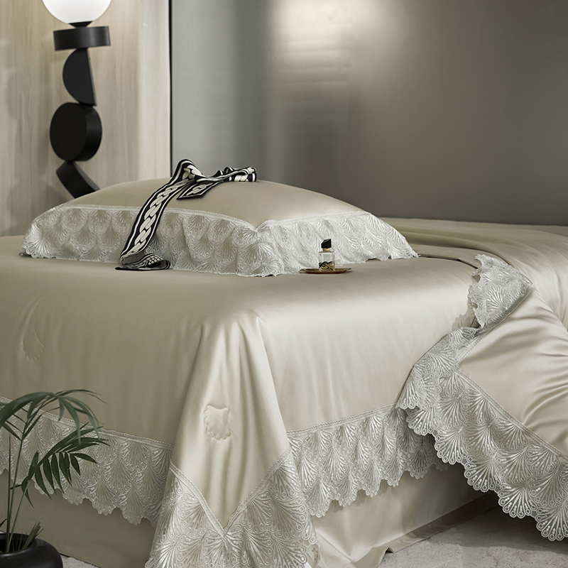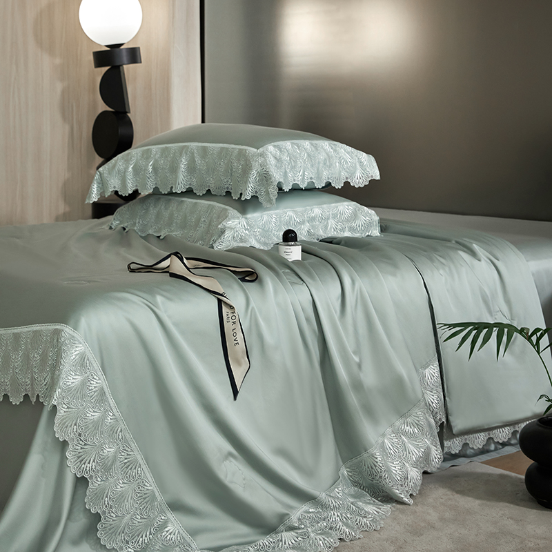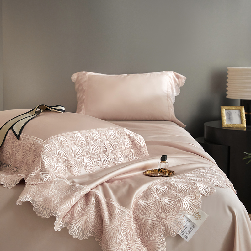 当前位置: 91家纺网 > 商品网购 > 床品套件 > 四件套 > 夏被四件套 > (总)洽想家 2025春夏新款100S天丝棉蕾丝夏被四件套--沐颜