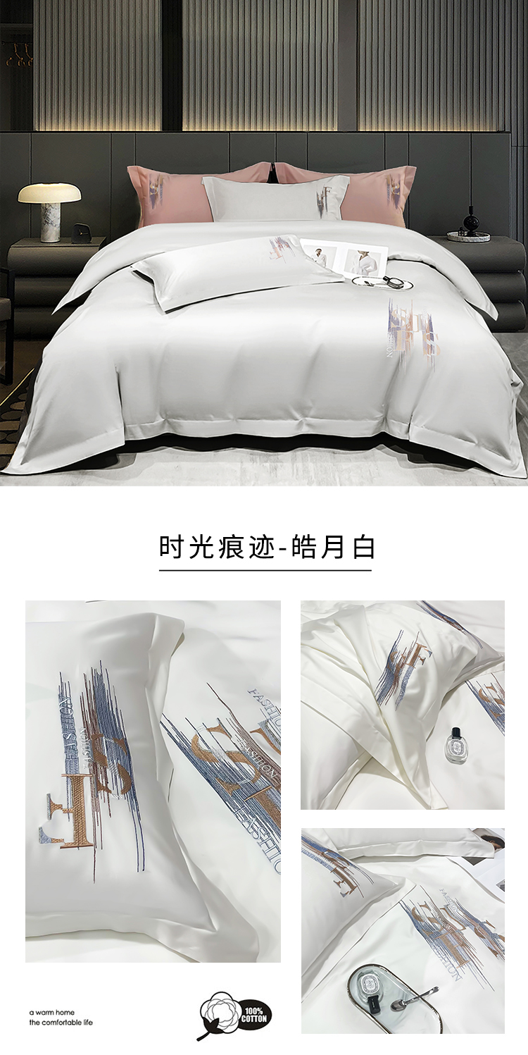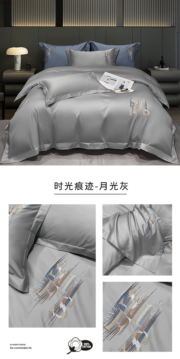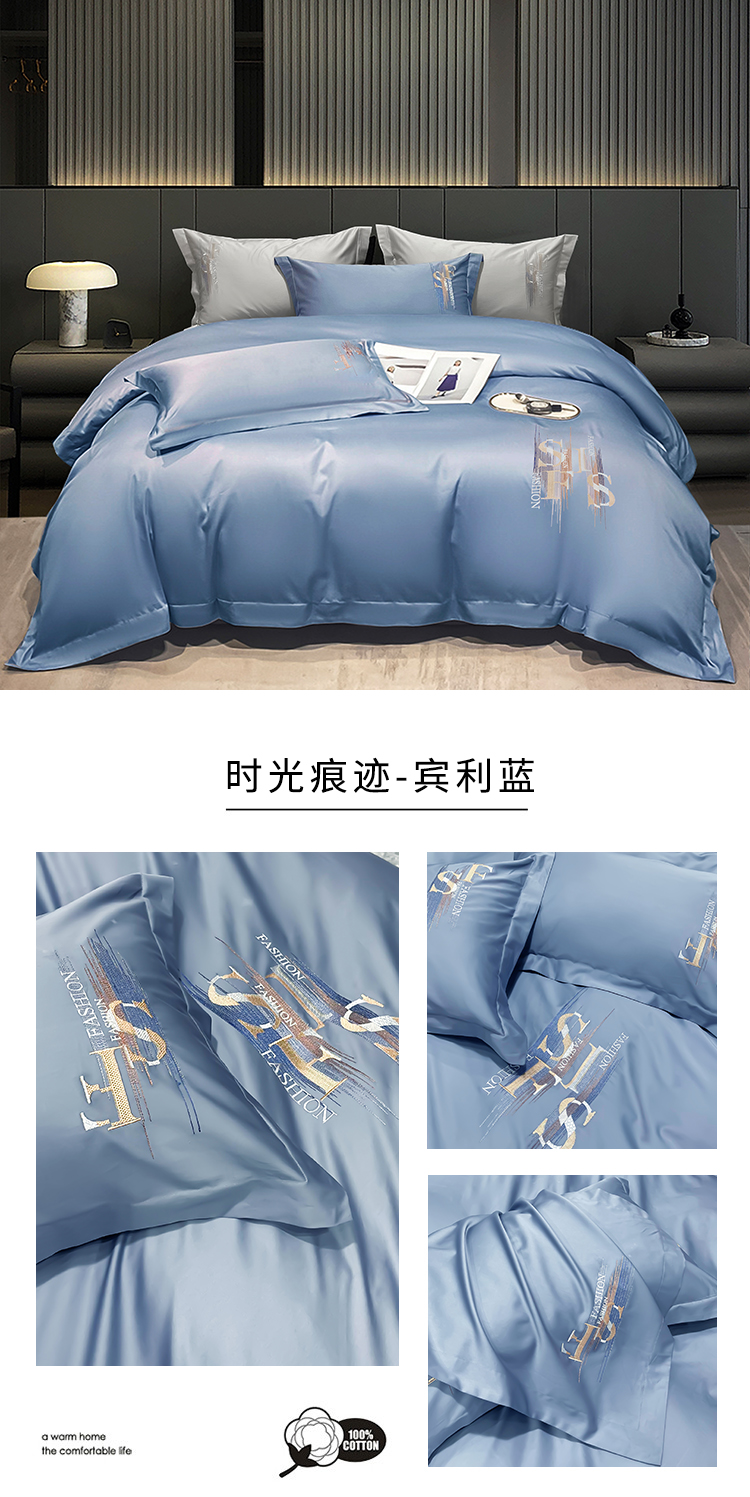 洽想家 2025新款100支长绒棉刺绣四件套--时光痕迹 时光痕迹-宾利蓝