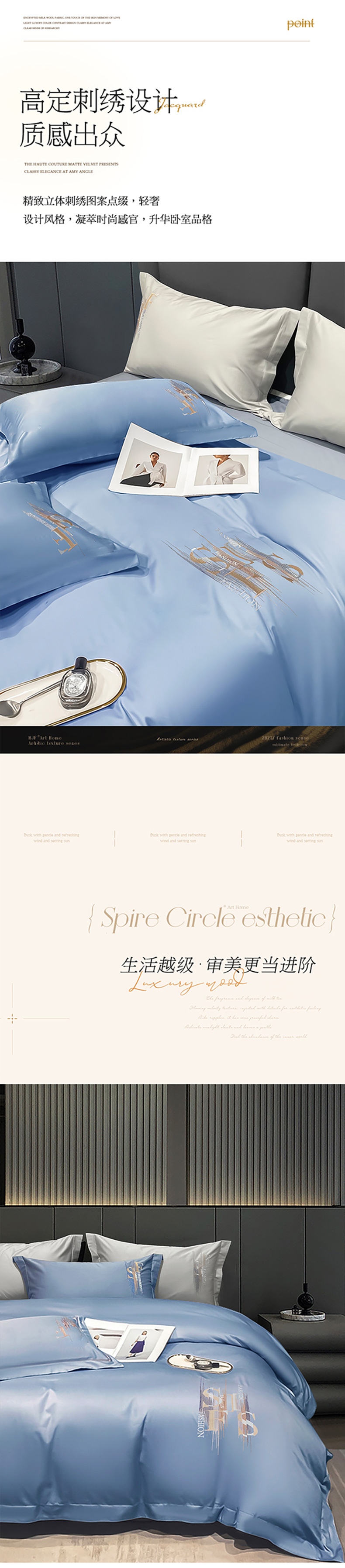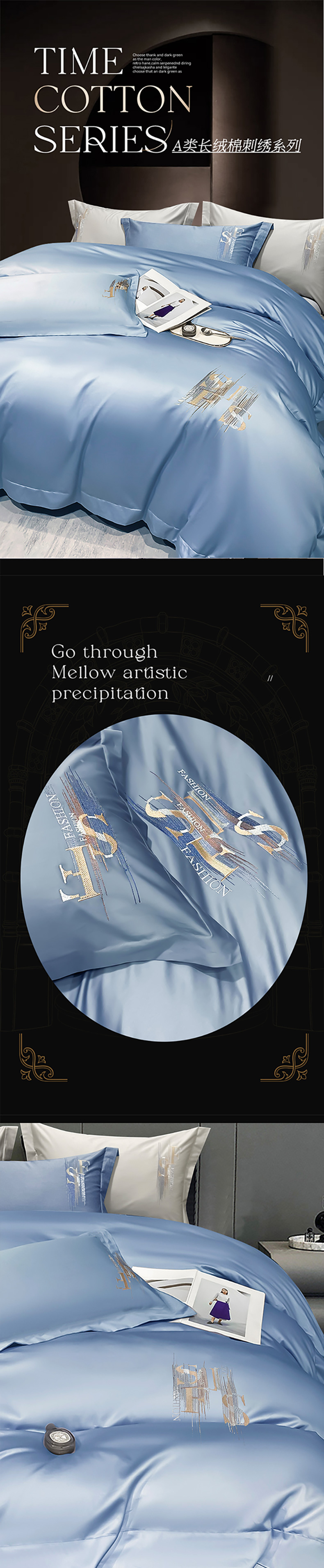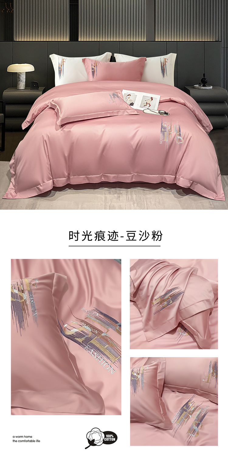 洽想家 2025新款100支长绒棉刺绣四件套--时光痕迹 时光痕迹-宾利蓝