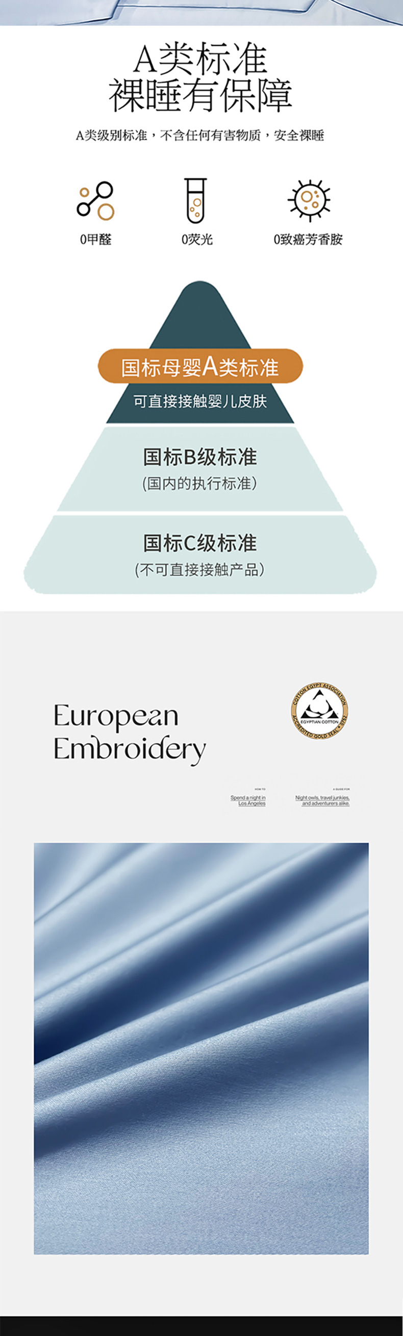 商品名称:洽想家 2025新款100支长绒棉刺绣四件套--时光痕迹 时光痕迹-宾利蓝