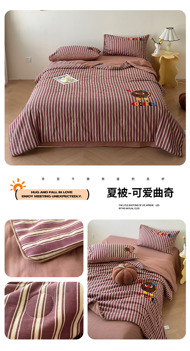 • 91家纺网 家纺一手货源 找家纺 怡家居 2025新款全棉双层纱毛巾绣夏被四件套 夏被-可爱曲奇