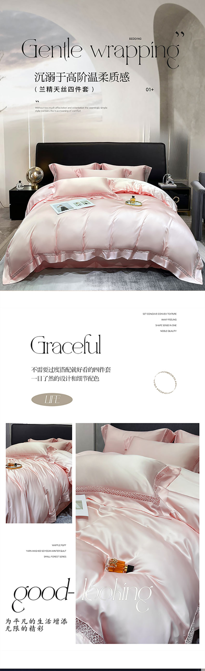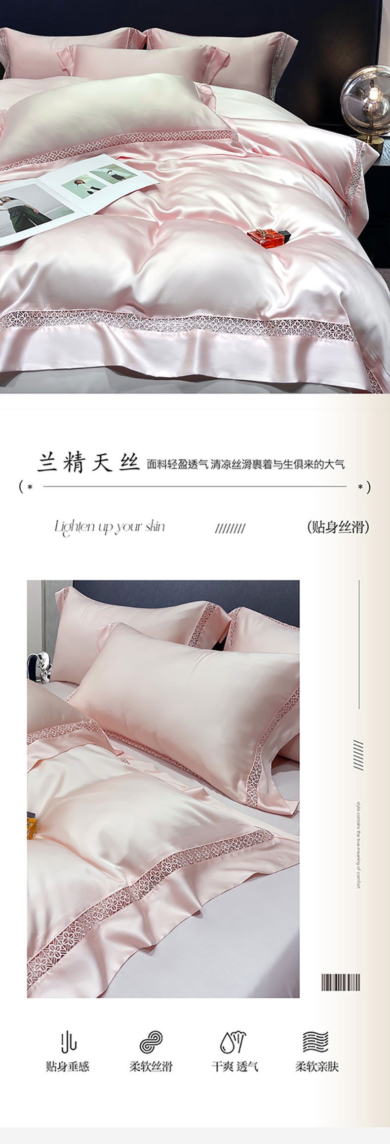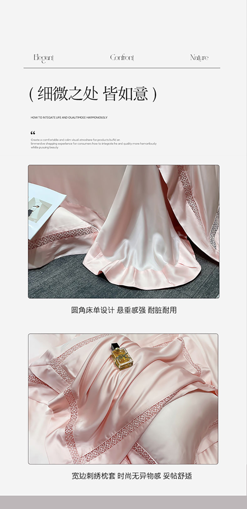 商品名称:洽想家 2025新款80支天丝镂空瑾系列四件套 瑾-梦粉