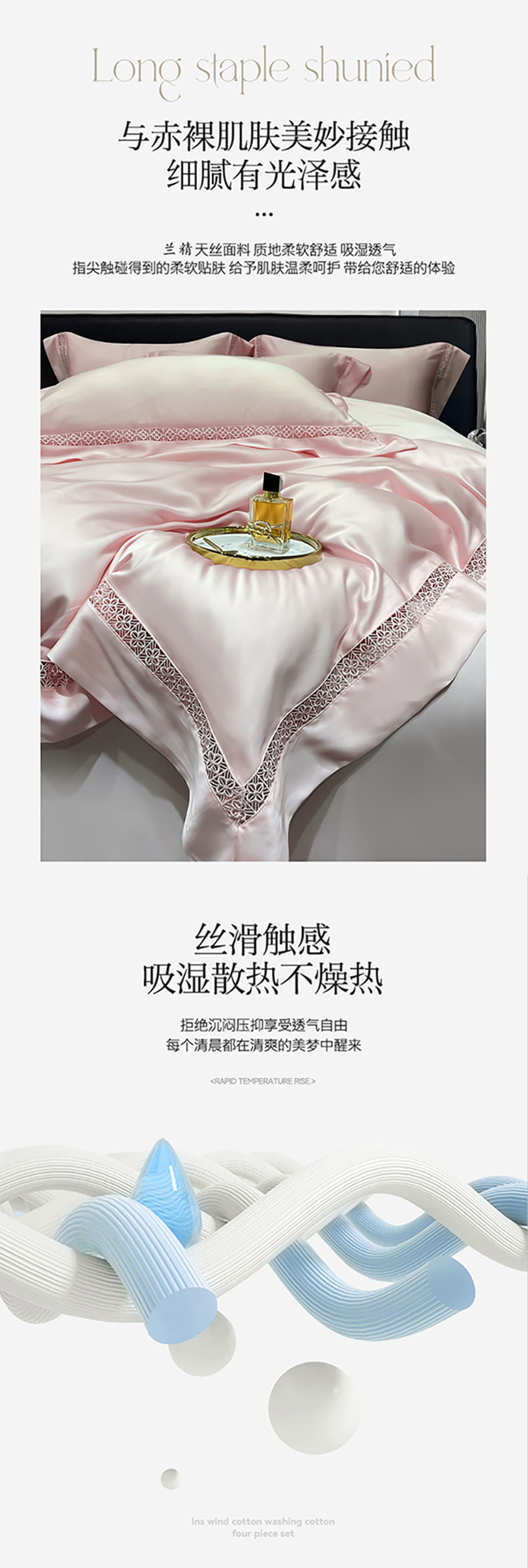 洽想家 2025新款80支天丝镂空瑾系列四件套 瑾-梦粉