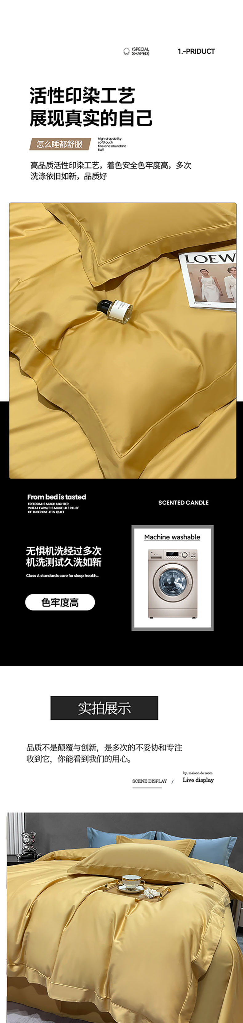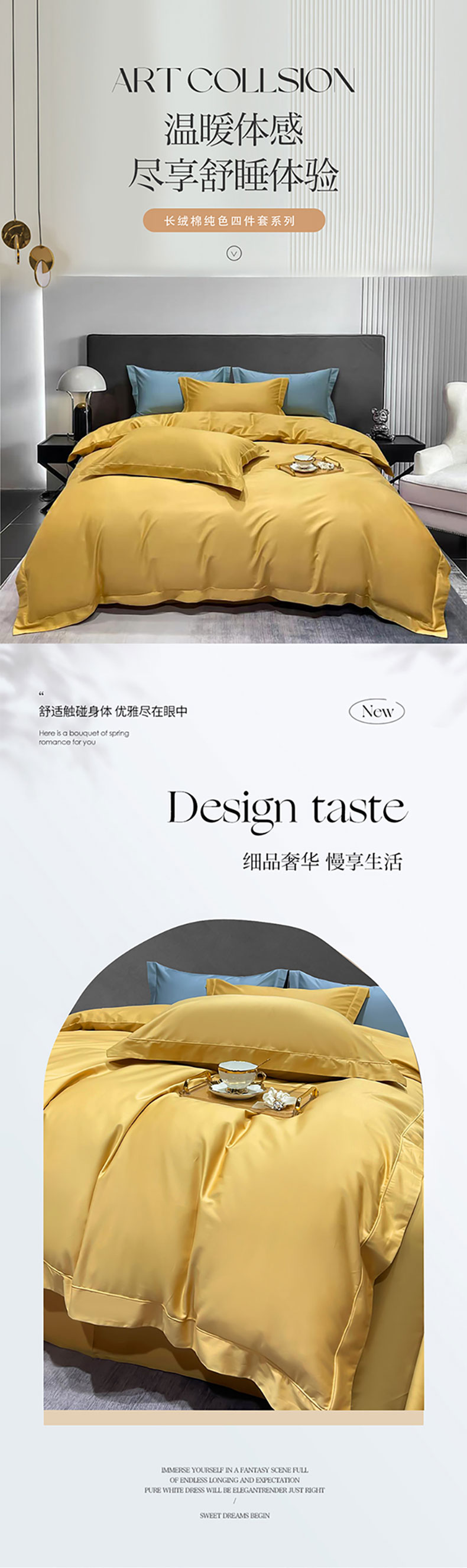 商品名称:洽想家 2025新款100支新疆长绒棉纯色埋绳款四件套 拾光-秋月黄