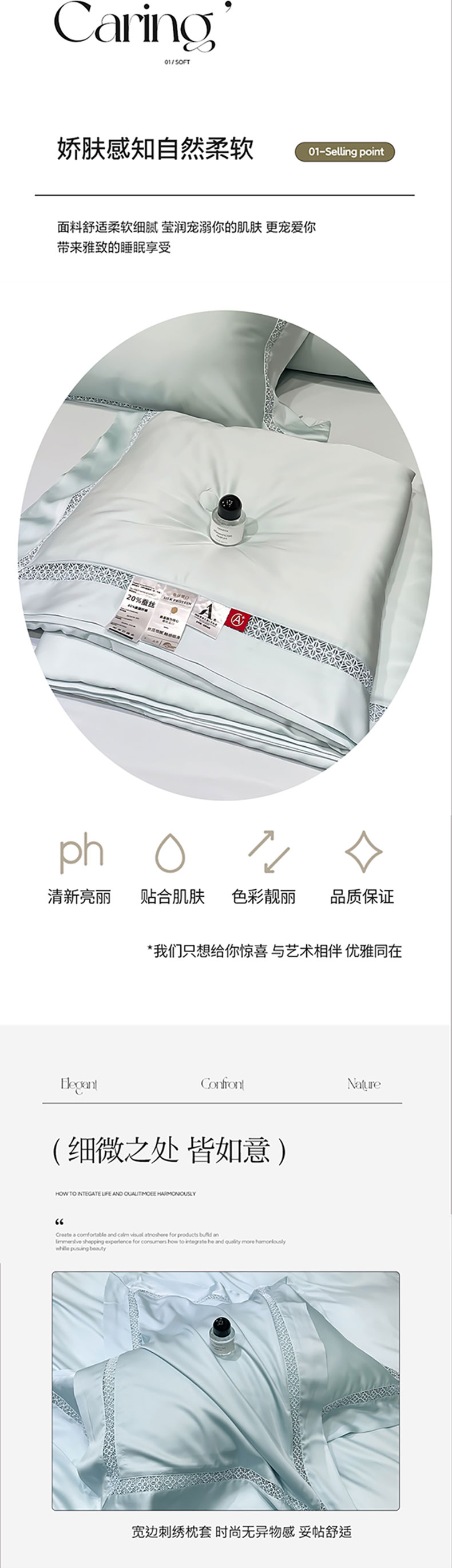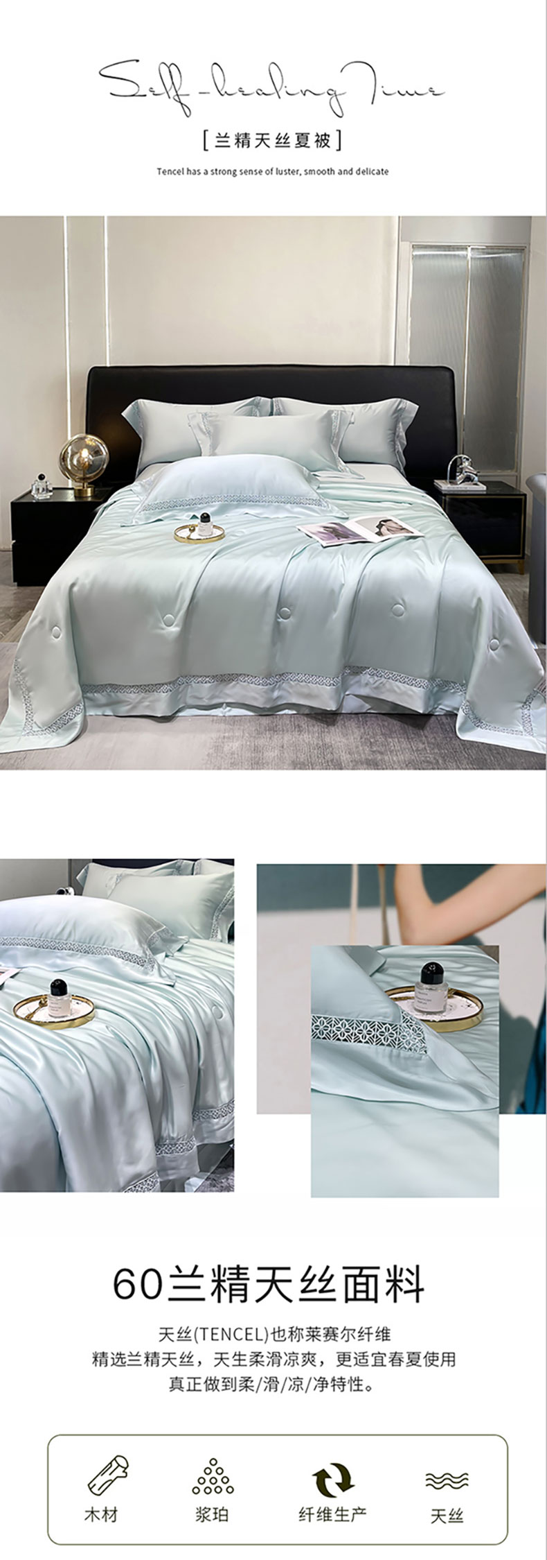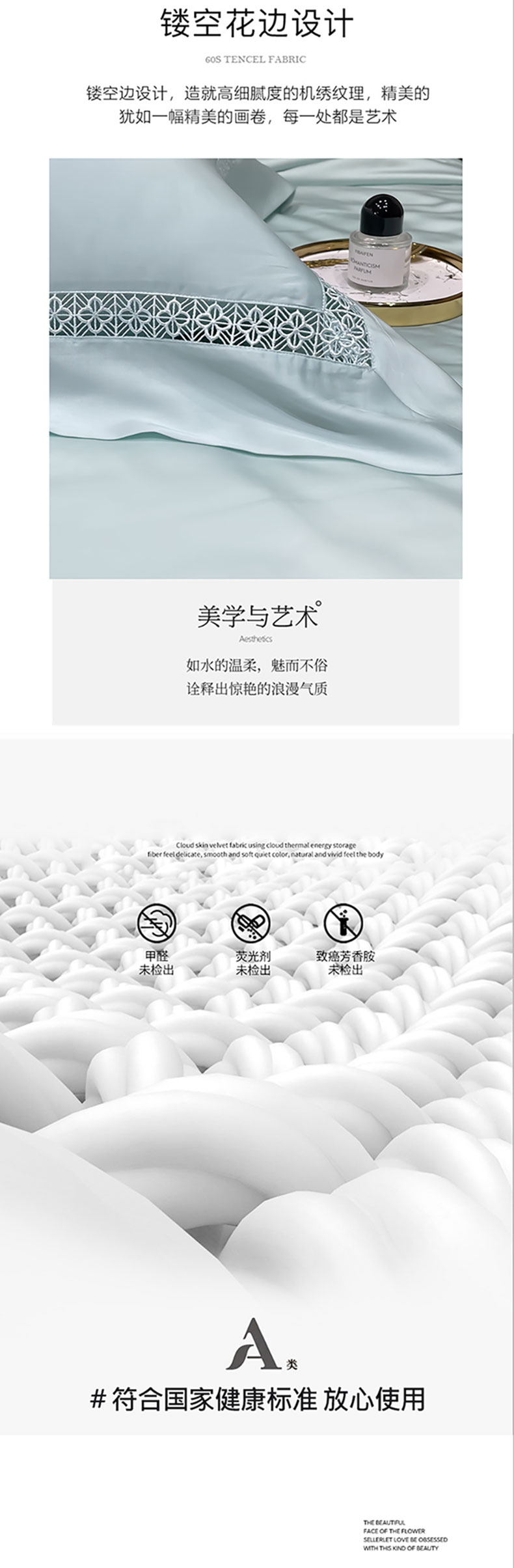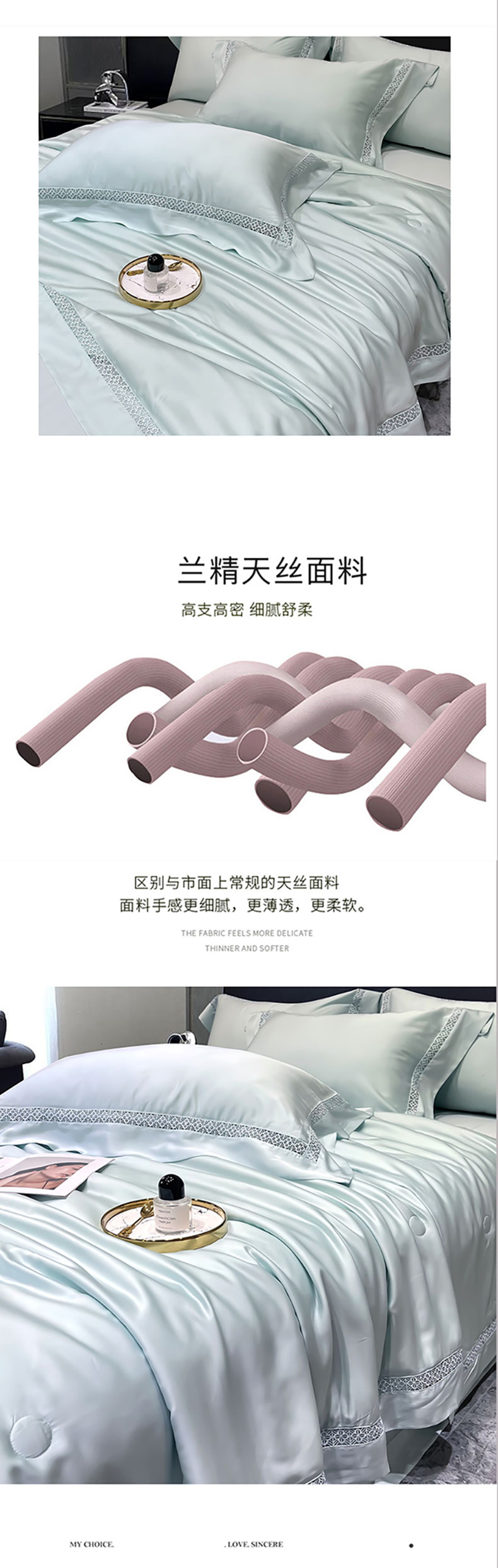 商品名称:洽想家 2025新款80支天丝镂空瑾系列夏被四件套 瑾-玛瑙绿