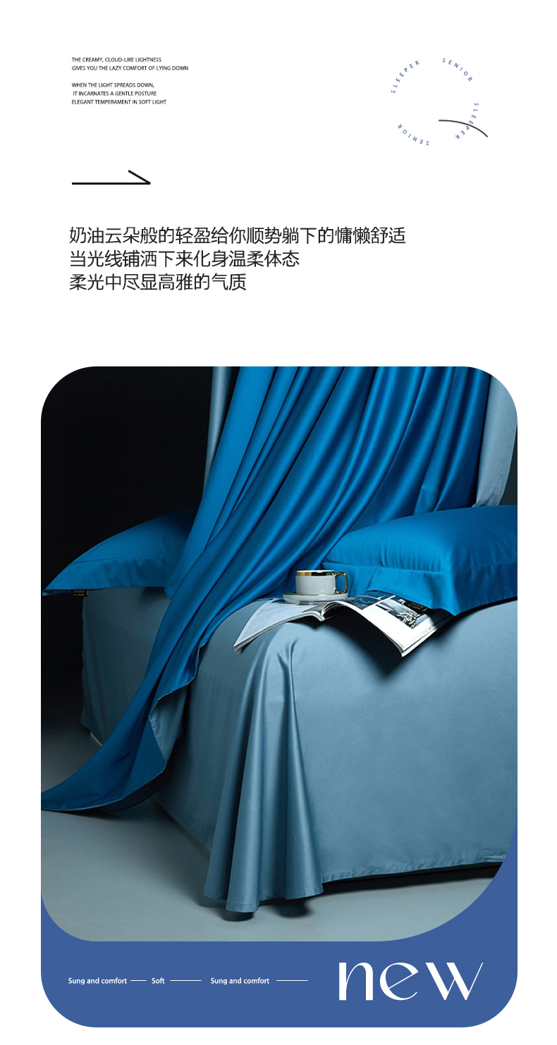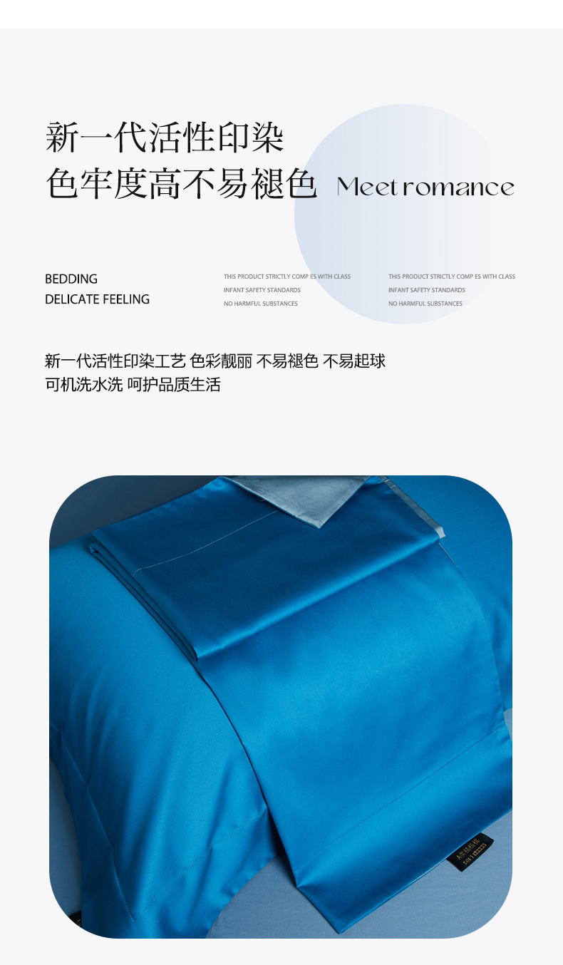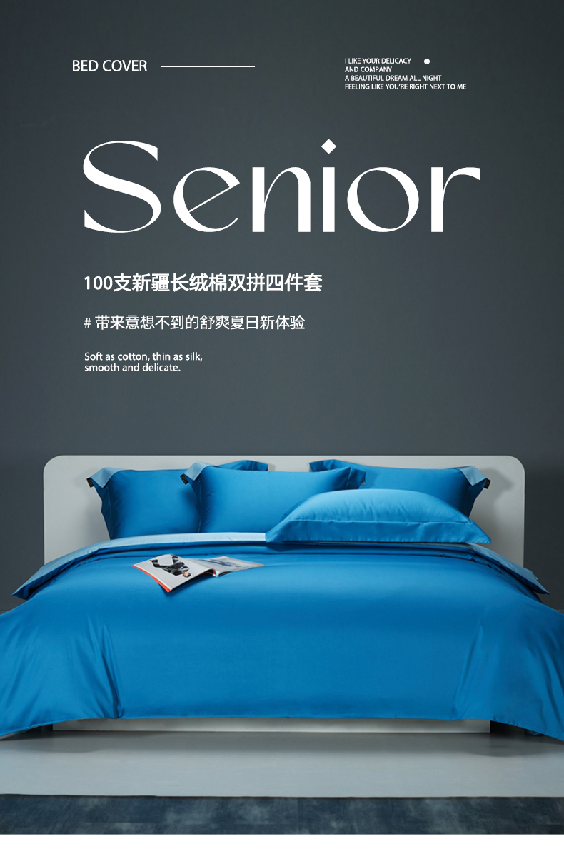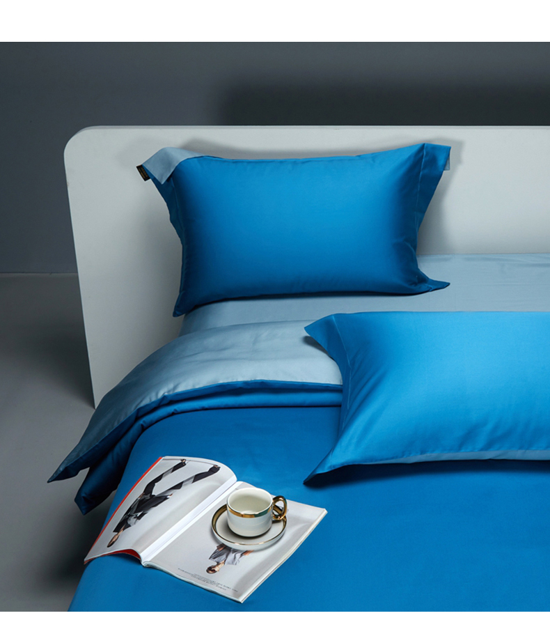 当前位置: 91家纺网 > 商品网购 > 床品套件 > 四件套 > 长绒棉四件套 > 洽想家 2025新款100支新疆长绒棉纯色双拼四件套 元气蓝+茗翠兰-