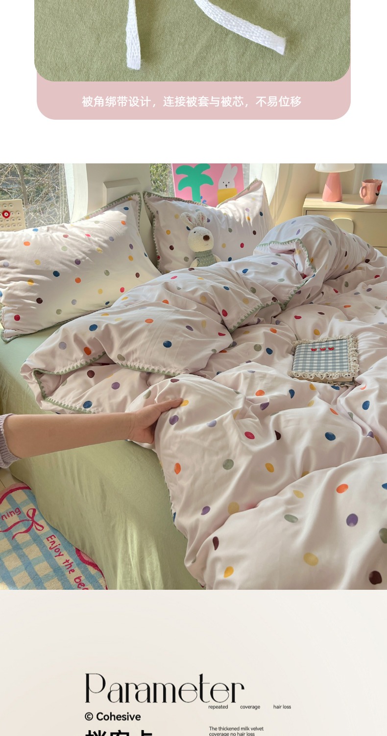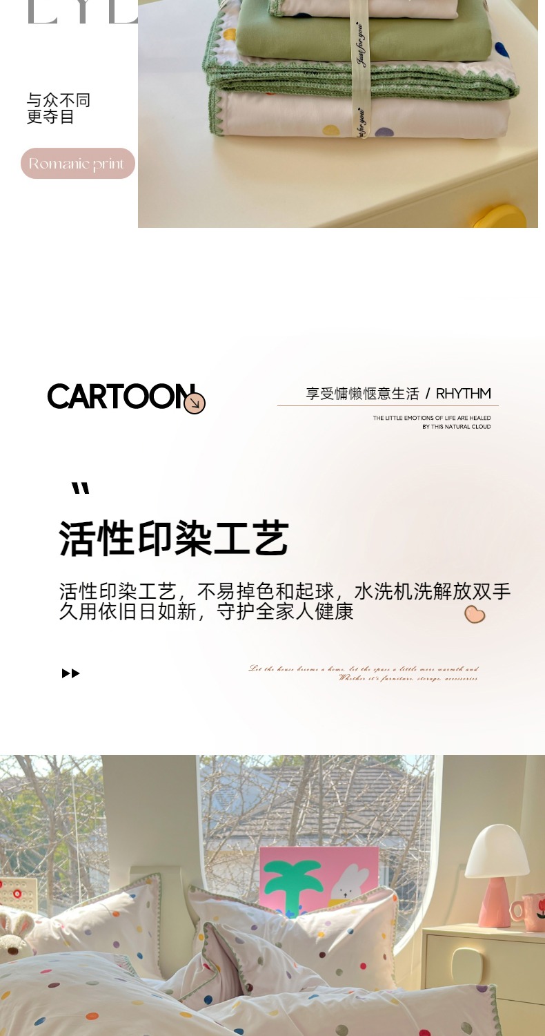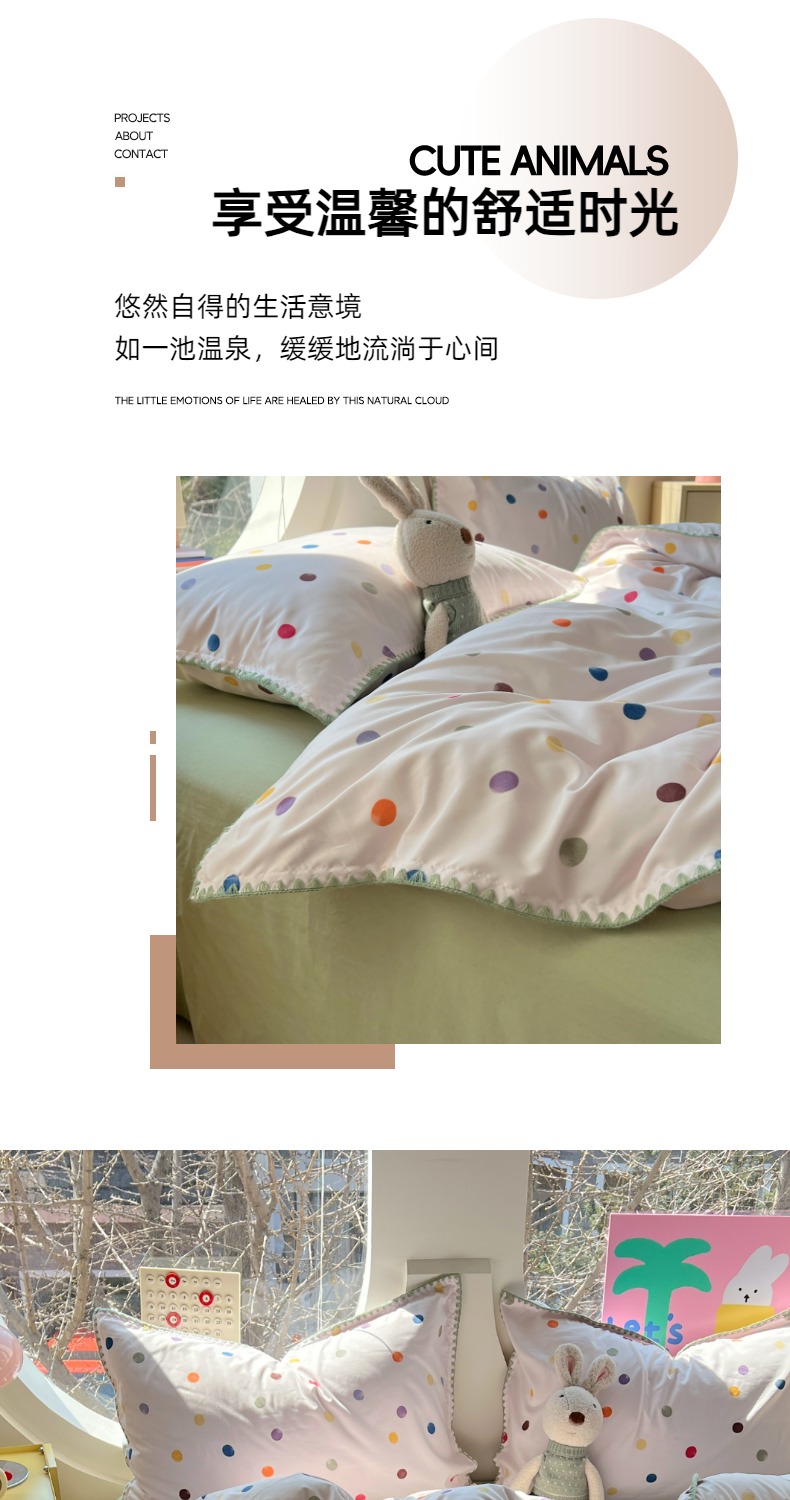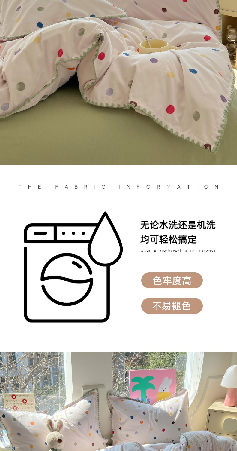 当前位置: 91家纺网 > 商品网购 > 床品套件 > 四件套 > 其它四件套 > 思诺羽床笠 2025新款亲肤棉贝壳花边四件套 贝壳边-彩色波点