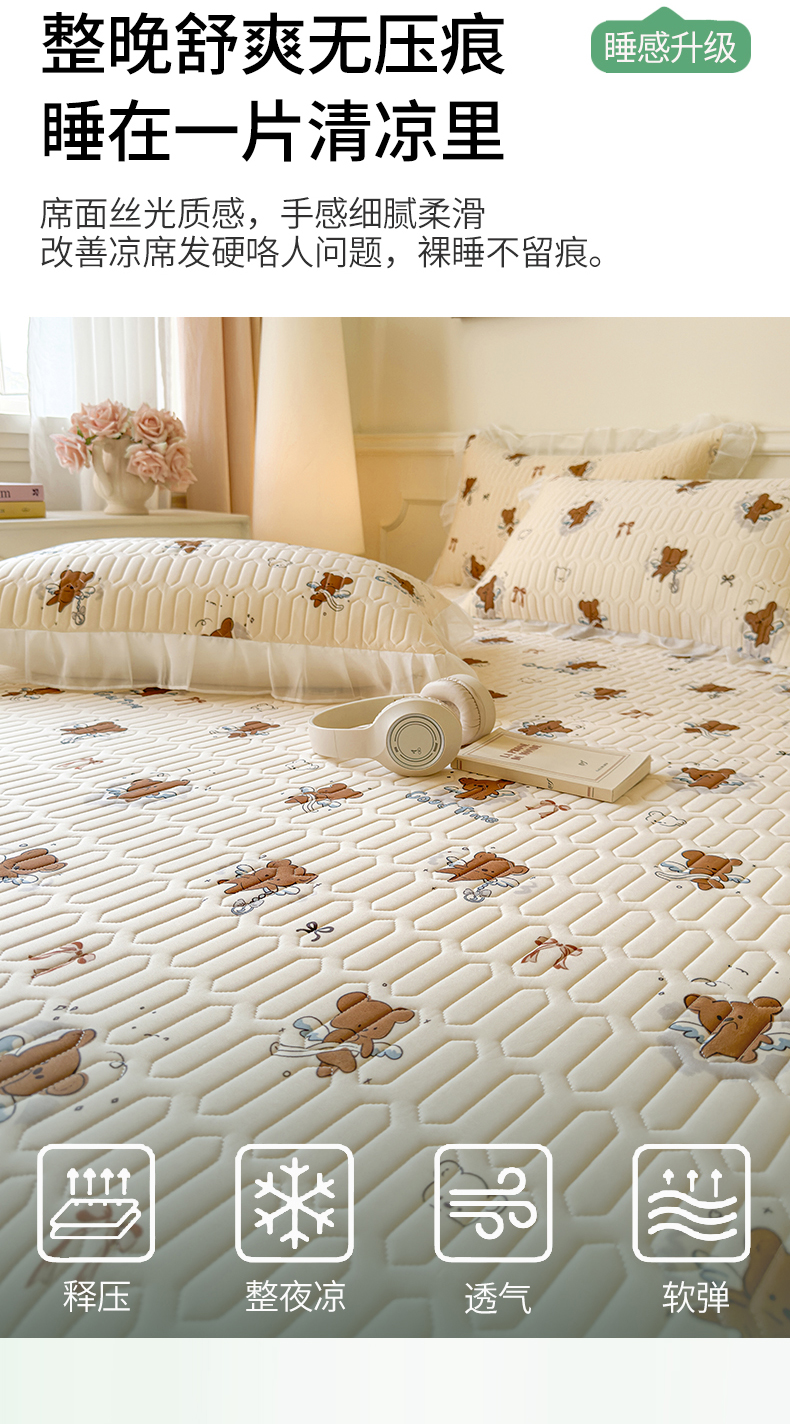 当前位置: 91家纺网 > 商品网购 > 床上用品 > 凉席 > 乳胶凉席 > 网红馆(ck家纺) 2025春夏新款印花凉感丝乳胶床裙凉席空调席夏被空调被 嘟嘟熊 茶