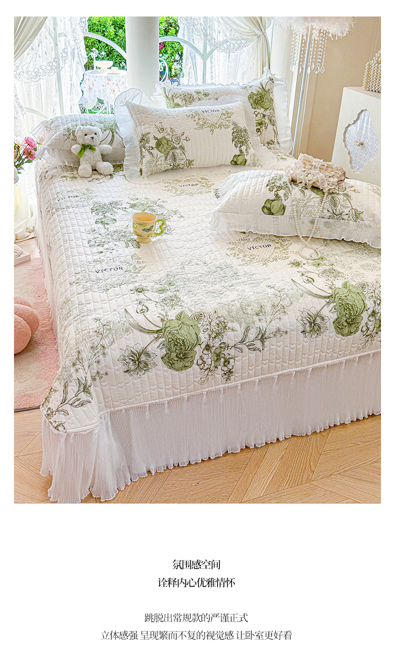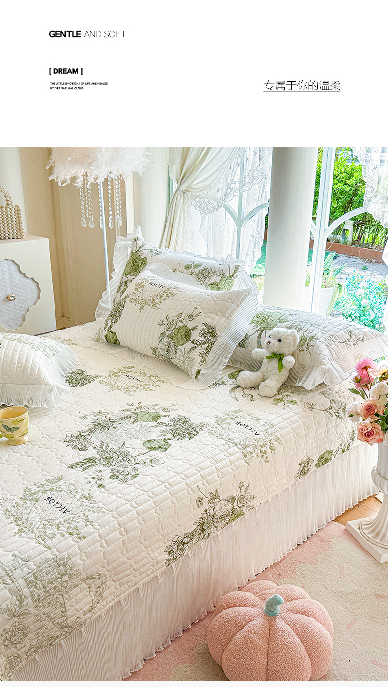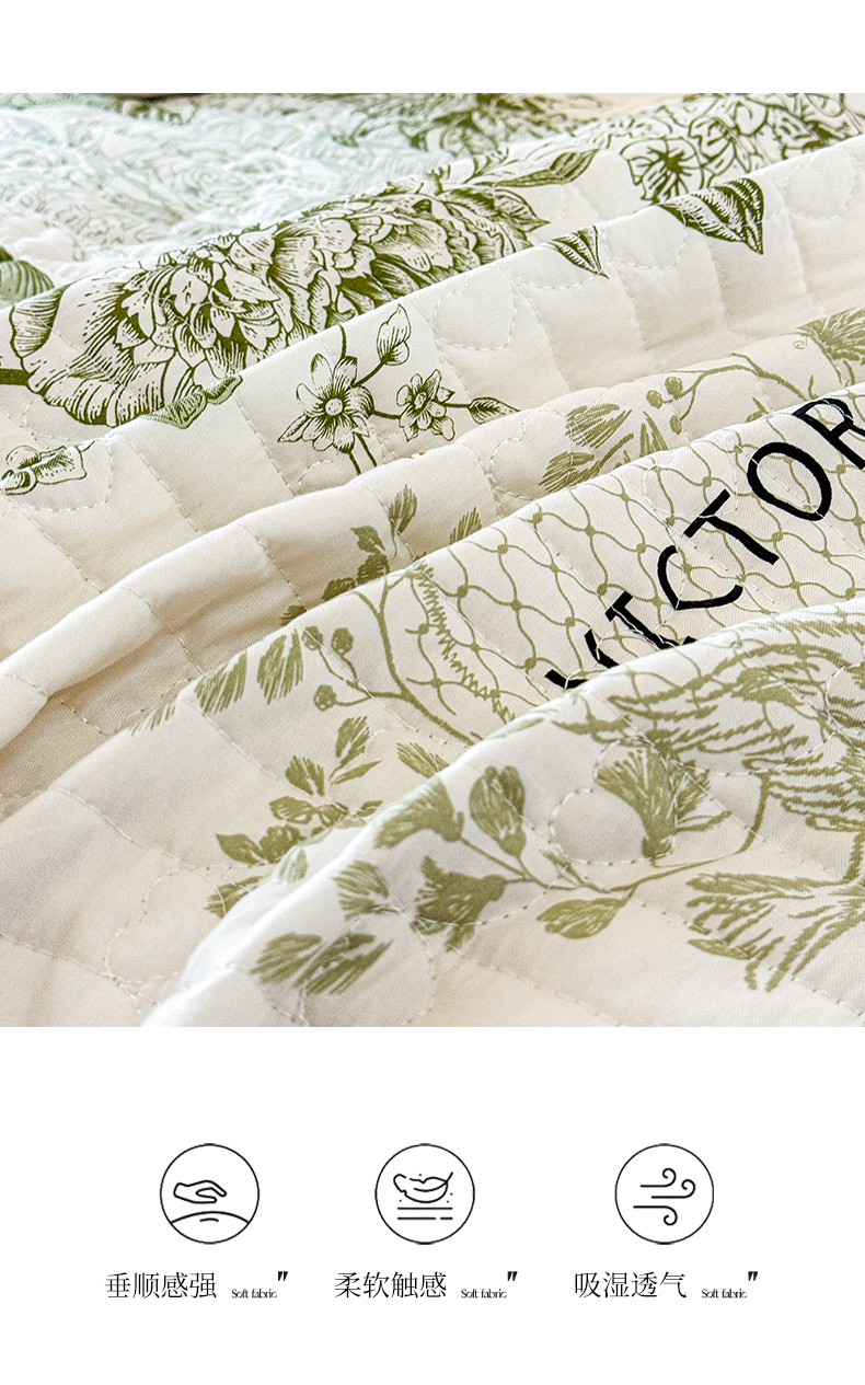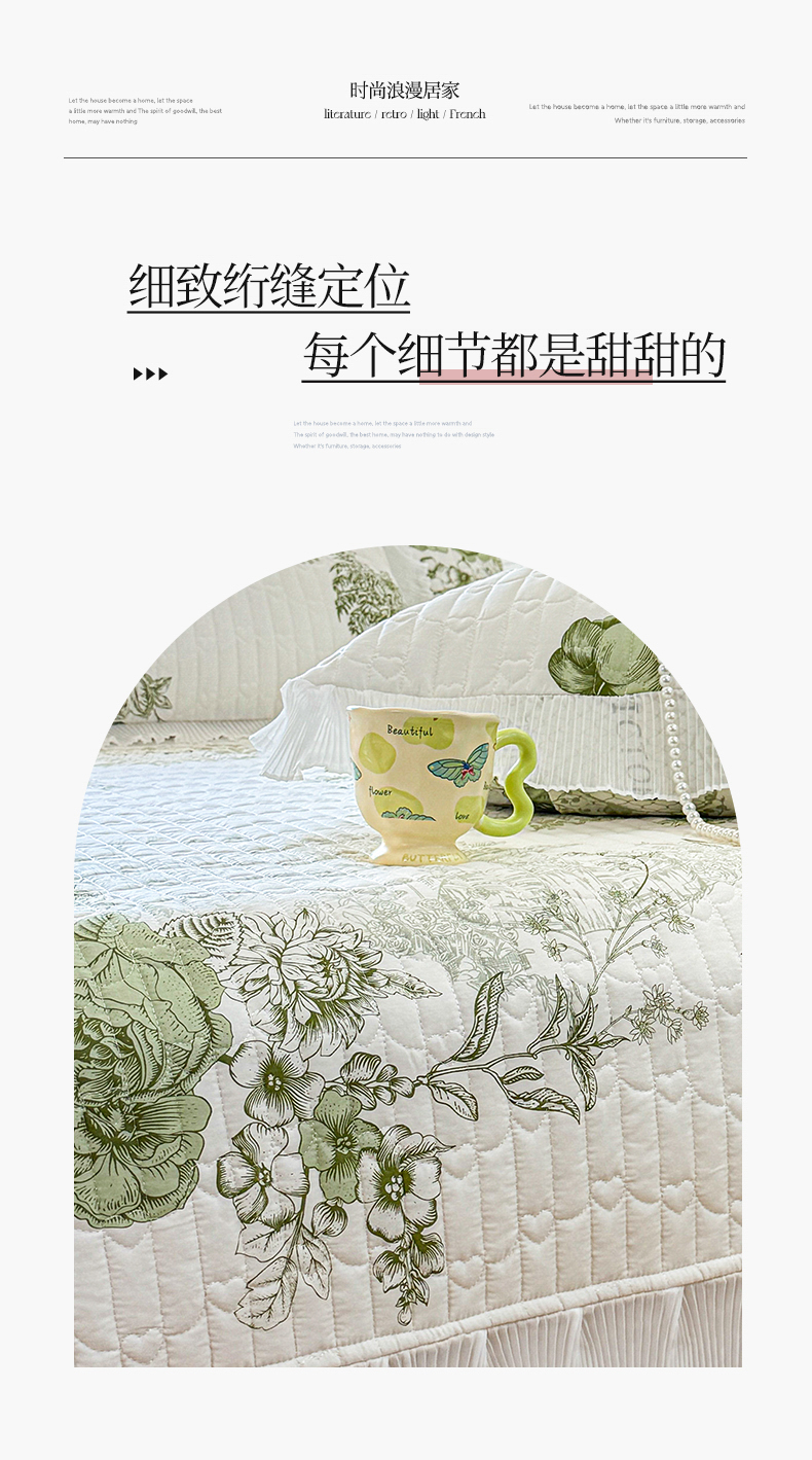商品名称:虹星家纺 2025新款斜纹全棉纯棉印花床盖-清甜 清甜-时光笔墨