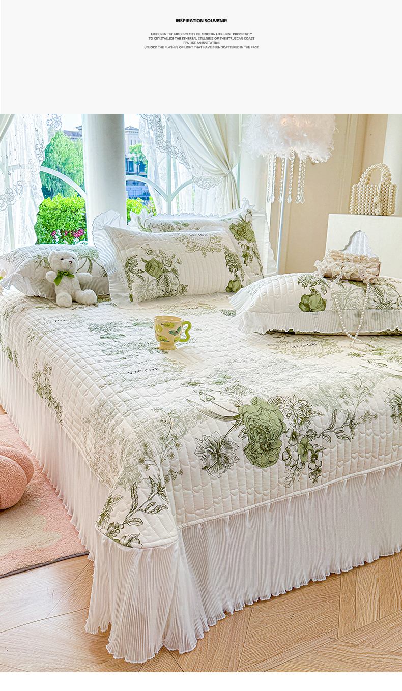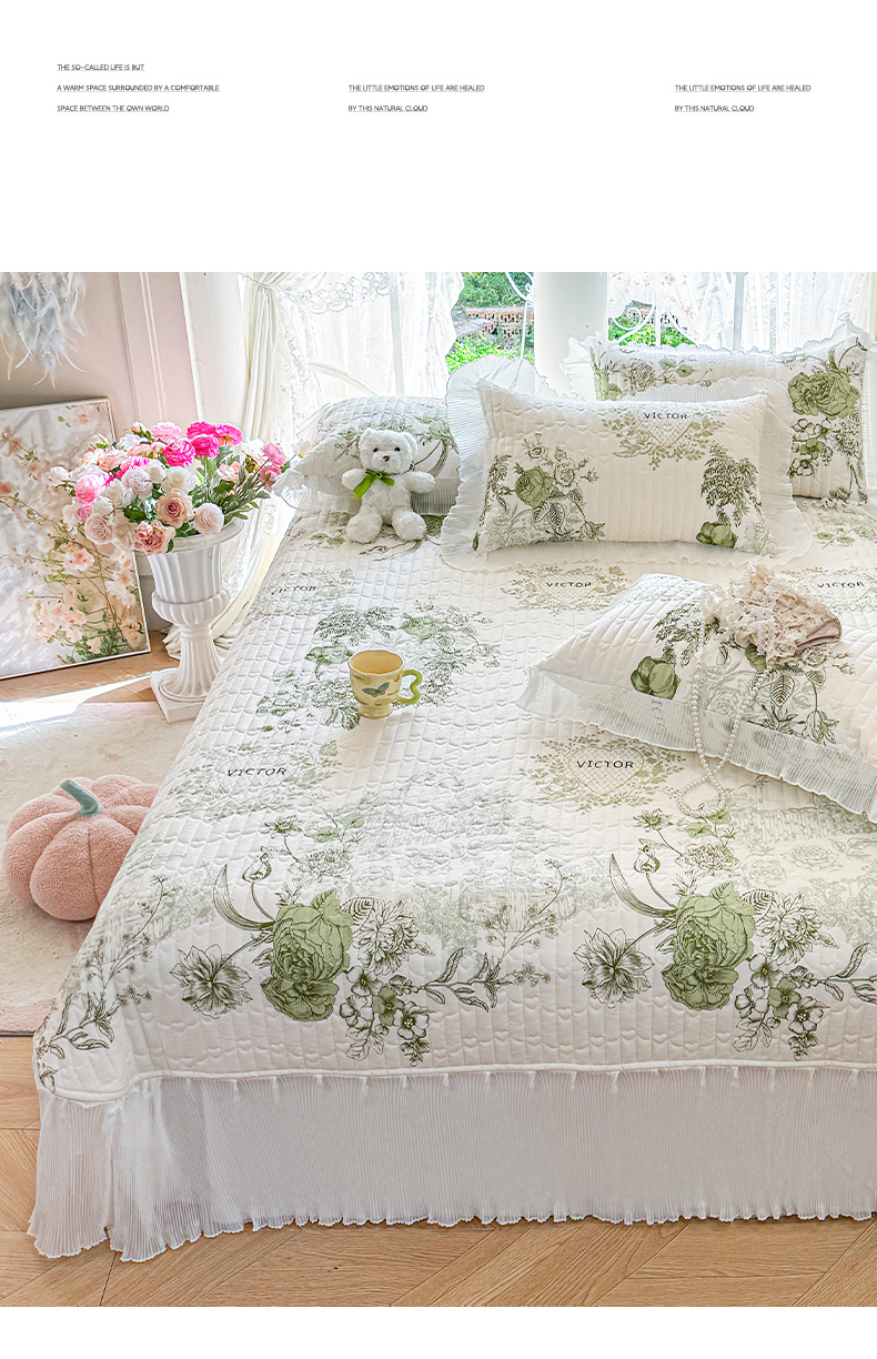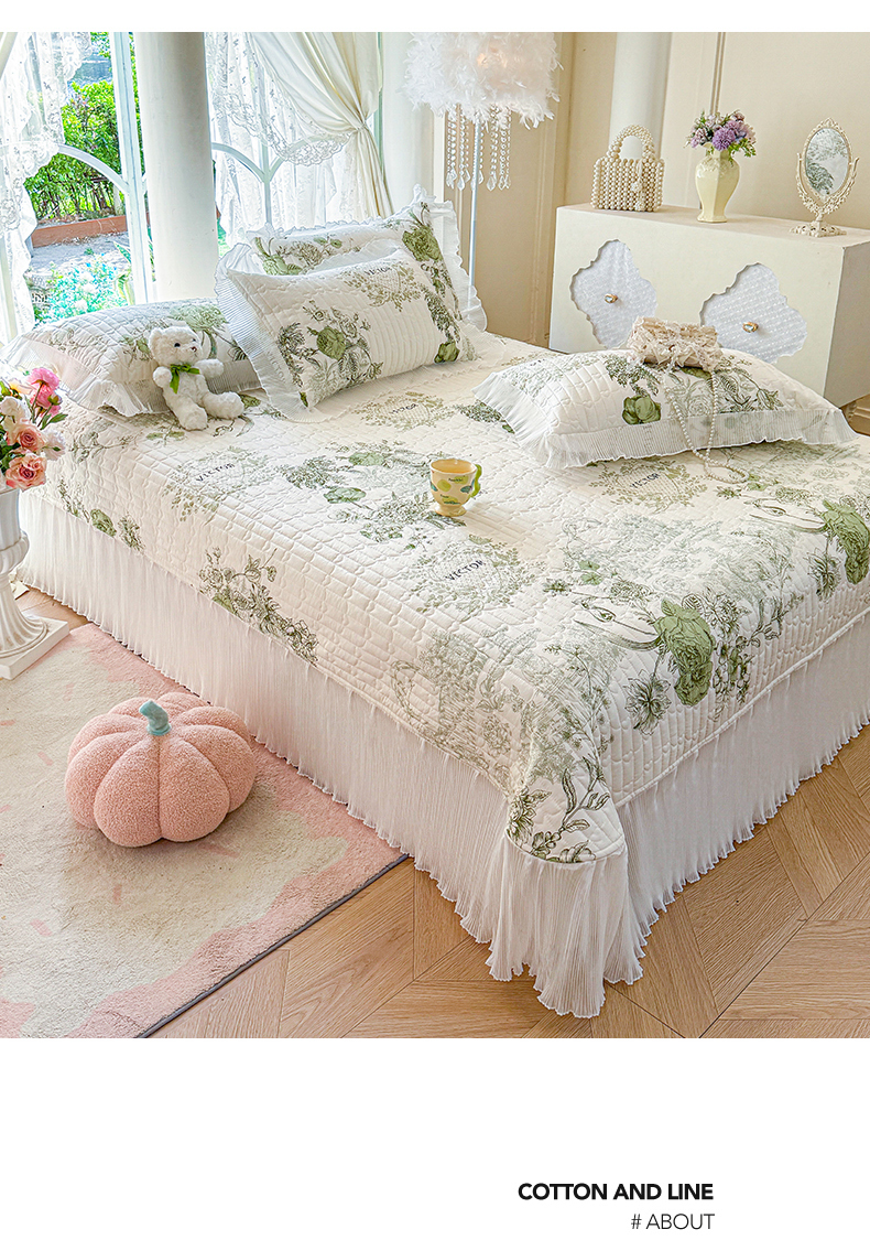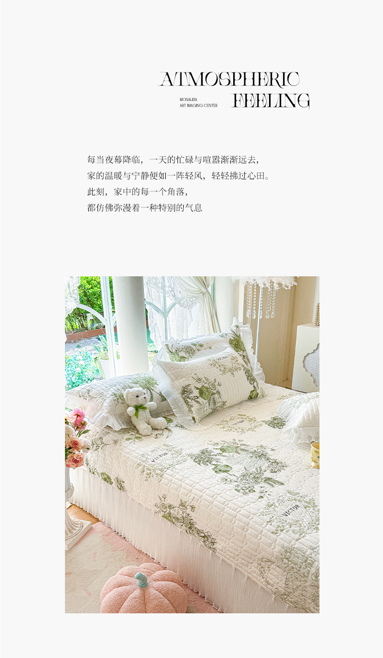 商品名称:虹星家纺 2025新款斜纹全棉纯棉印花床盖-清甜 清甜-时光笔墨