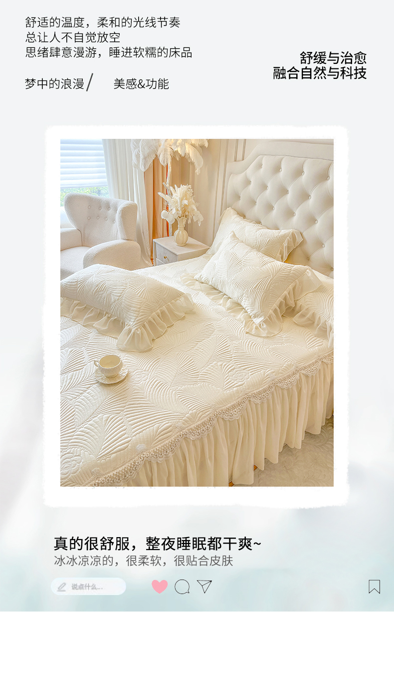 商品名称:网红馆(ck家纺) 2025新款床笠款床裙豆豆席凉席席子-花叶海 花叶海-米色