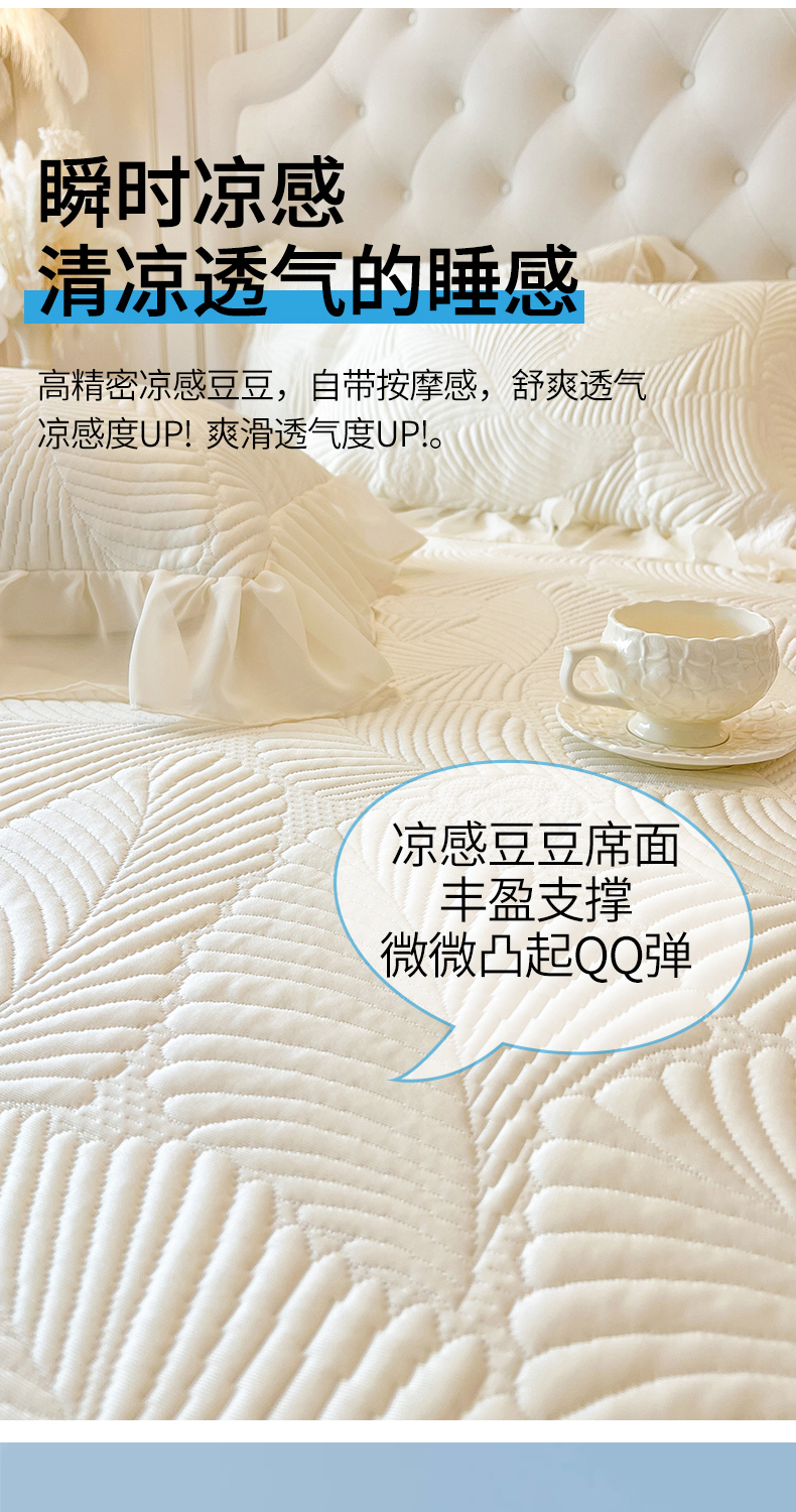 网红馆(ck家纺) 2025新款床笠款床裙豆豆席凉席席子-花叶海 花叶海-米色