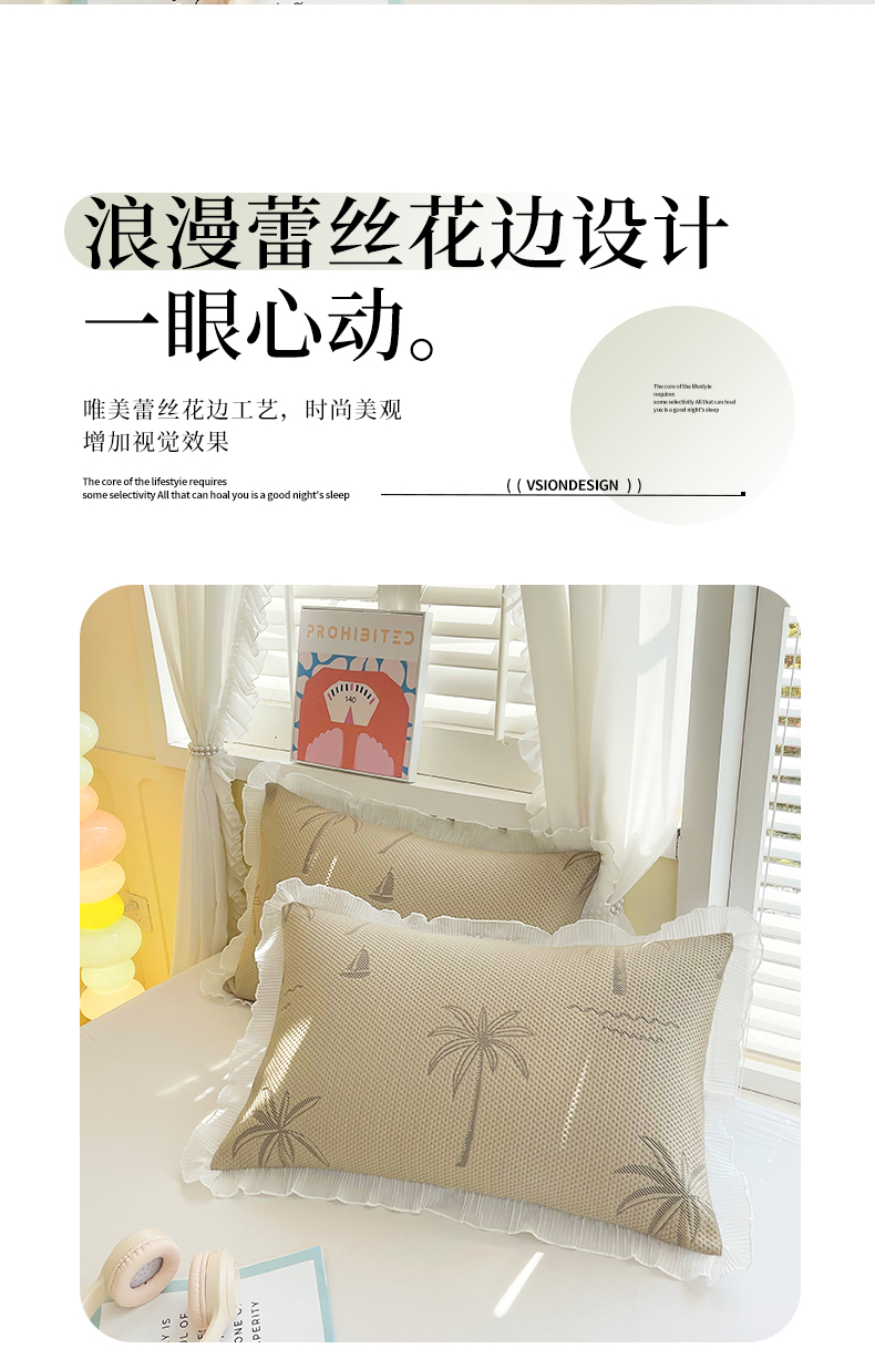 商品名称:芯宜佳 2025年新款冰豆豆花边单人枕套 一帆风顺-咖